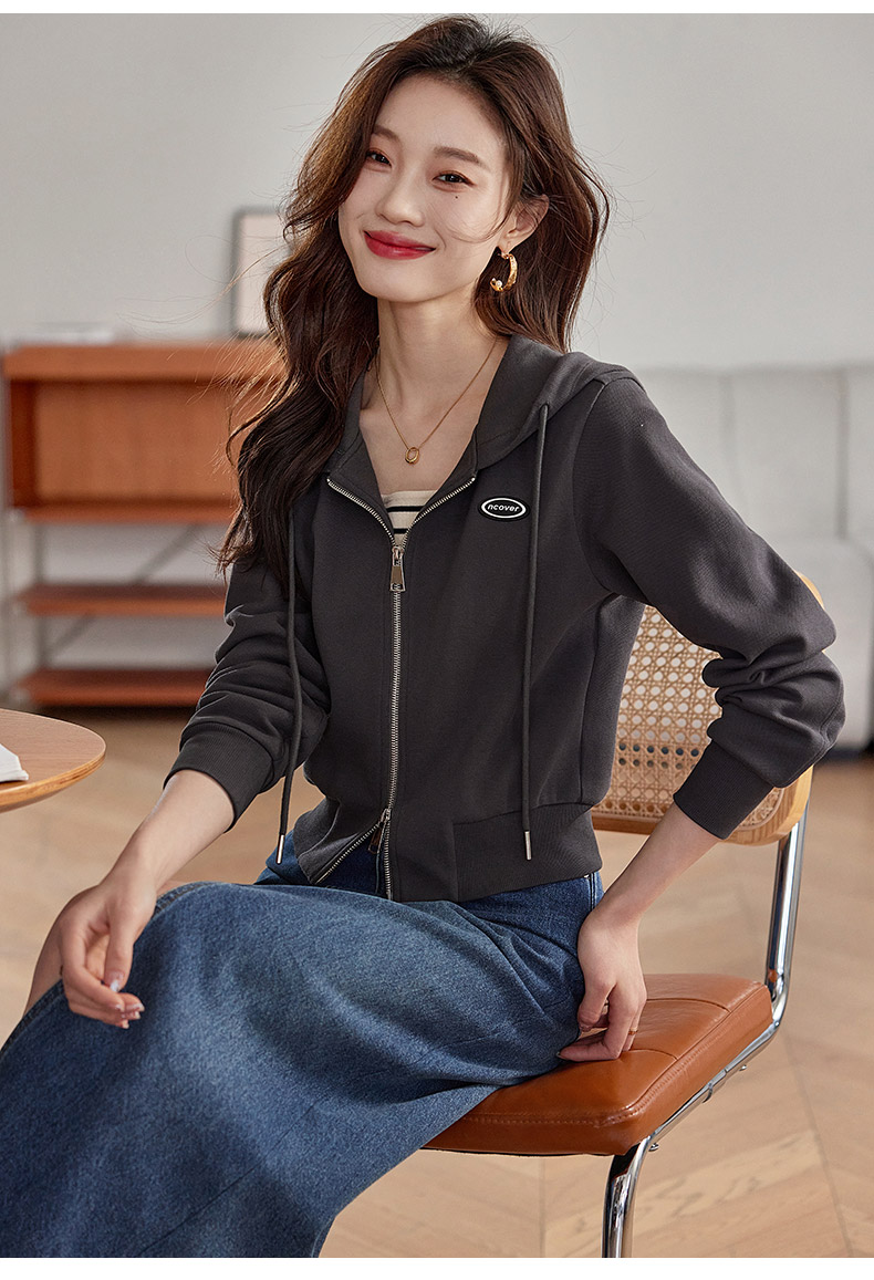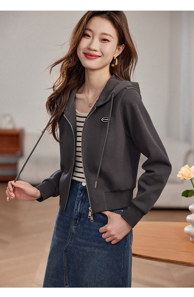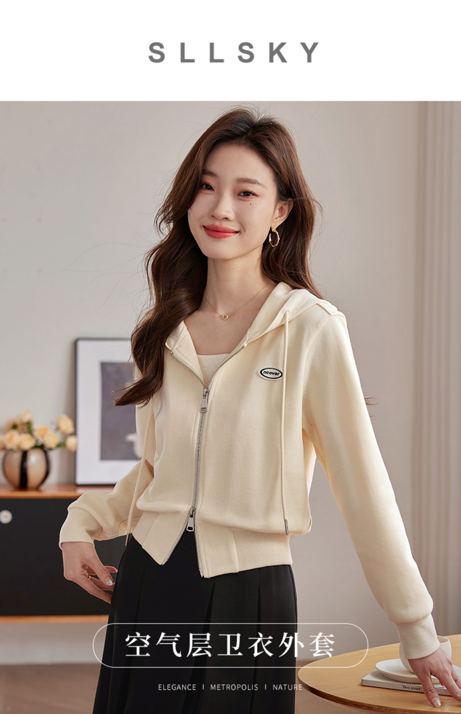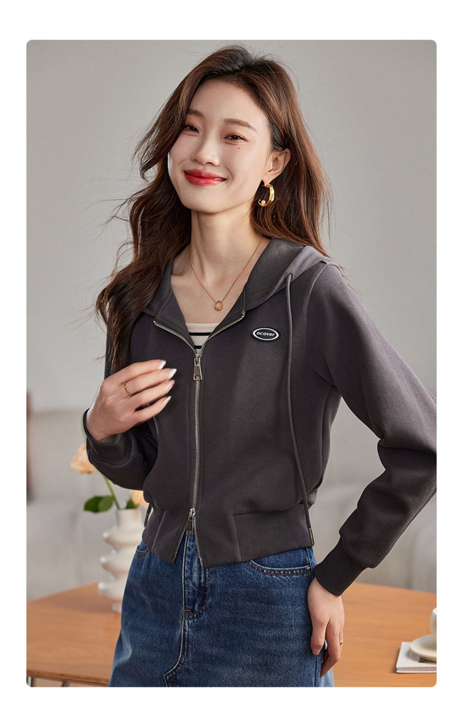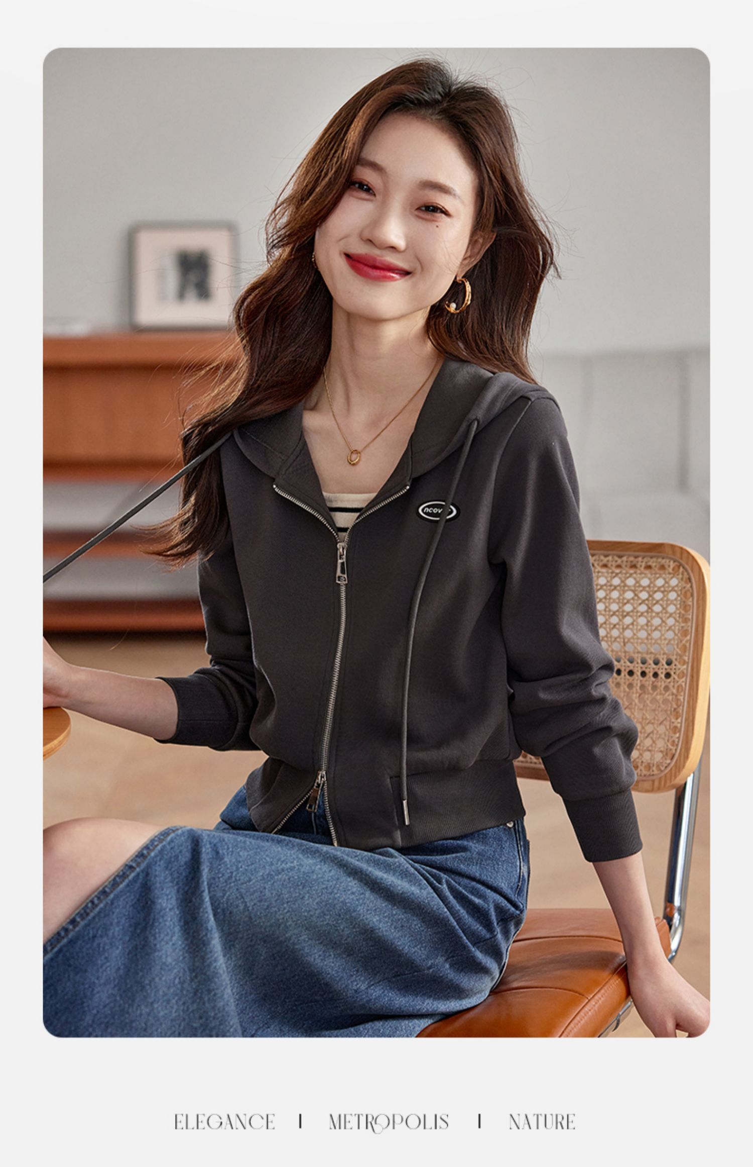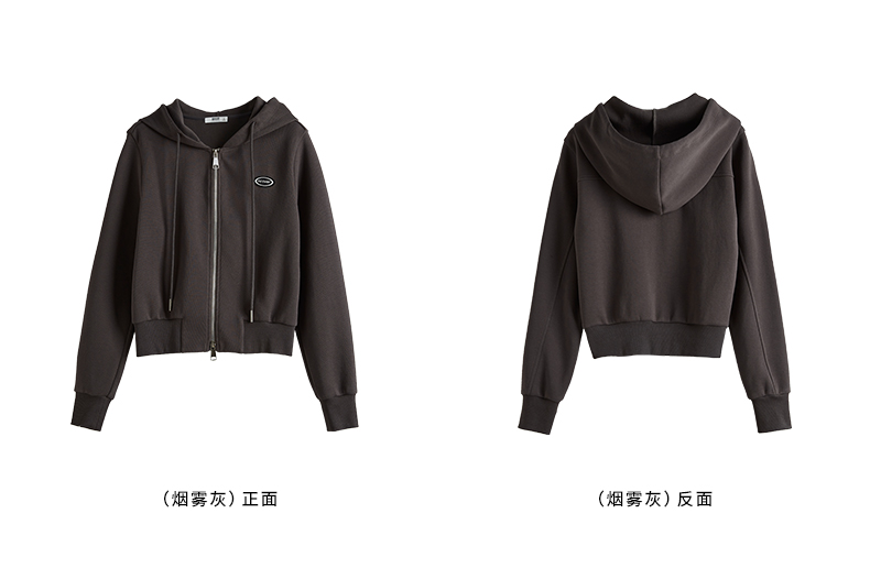 【年终特卖】熙世界连帽开衫卫衣2025秋新款通勤落肩袖小个子短款洋气上衣女