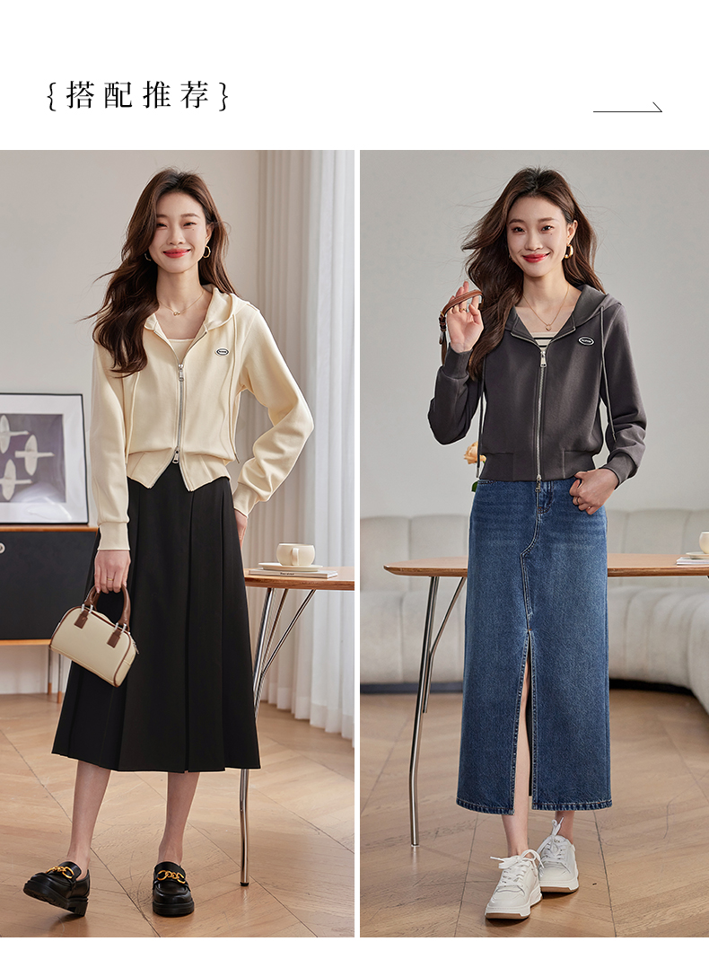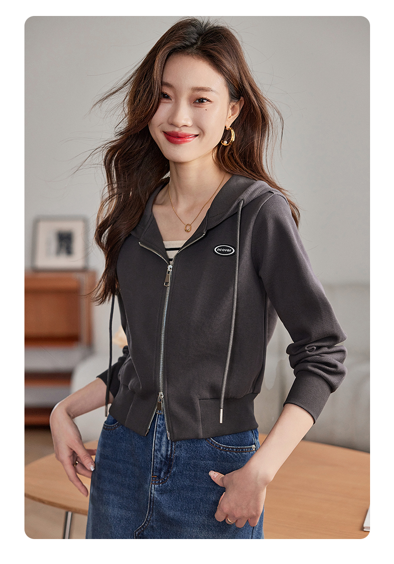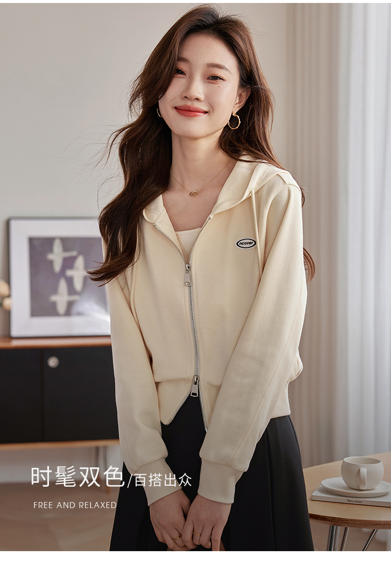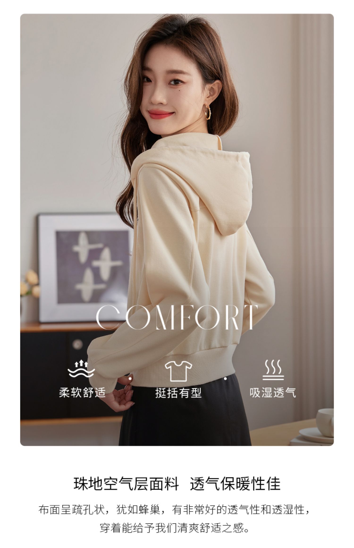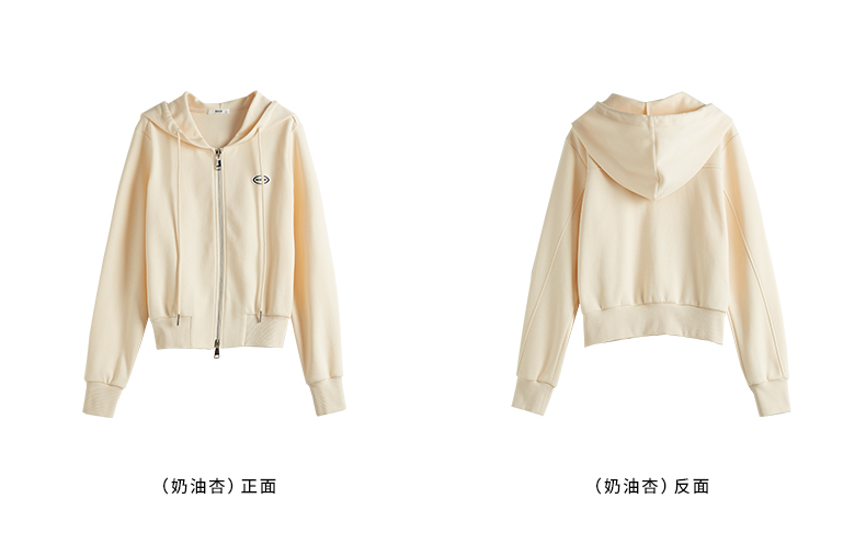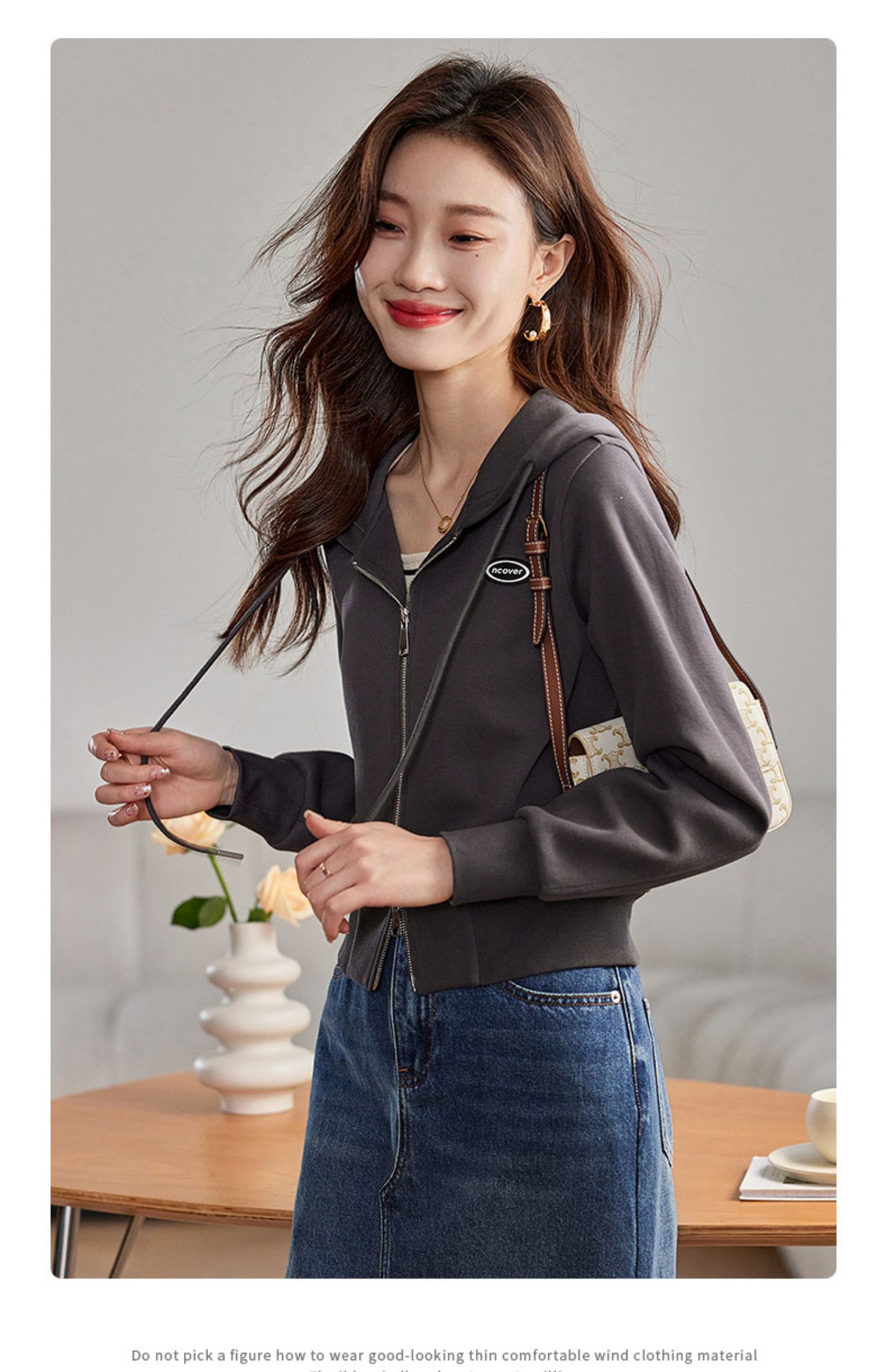 【年终特卖】熙世界连帽开衫卫衣2025秋新款通勤落肩袖小个子短款洋气上衣女