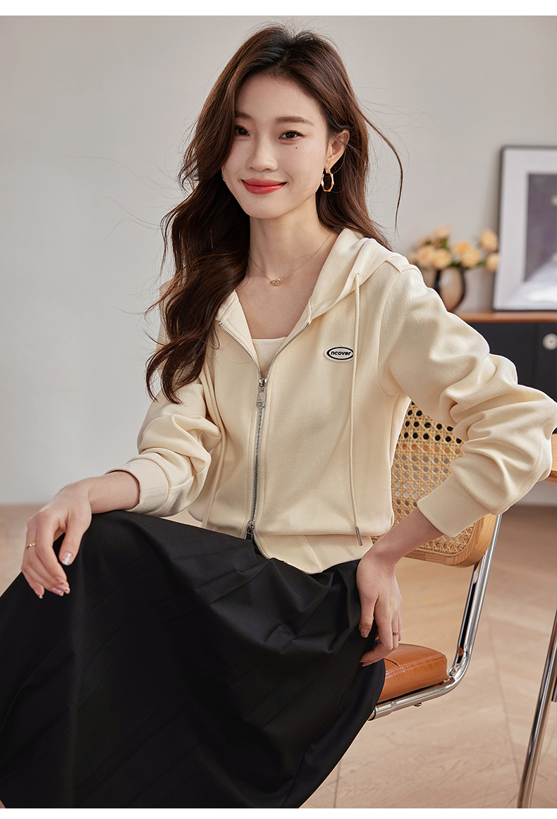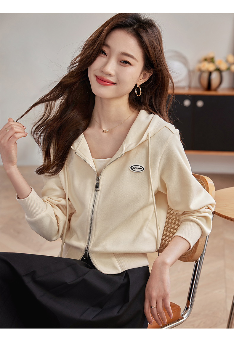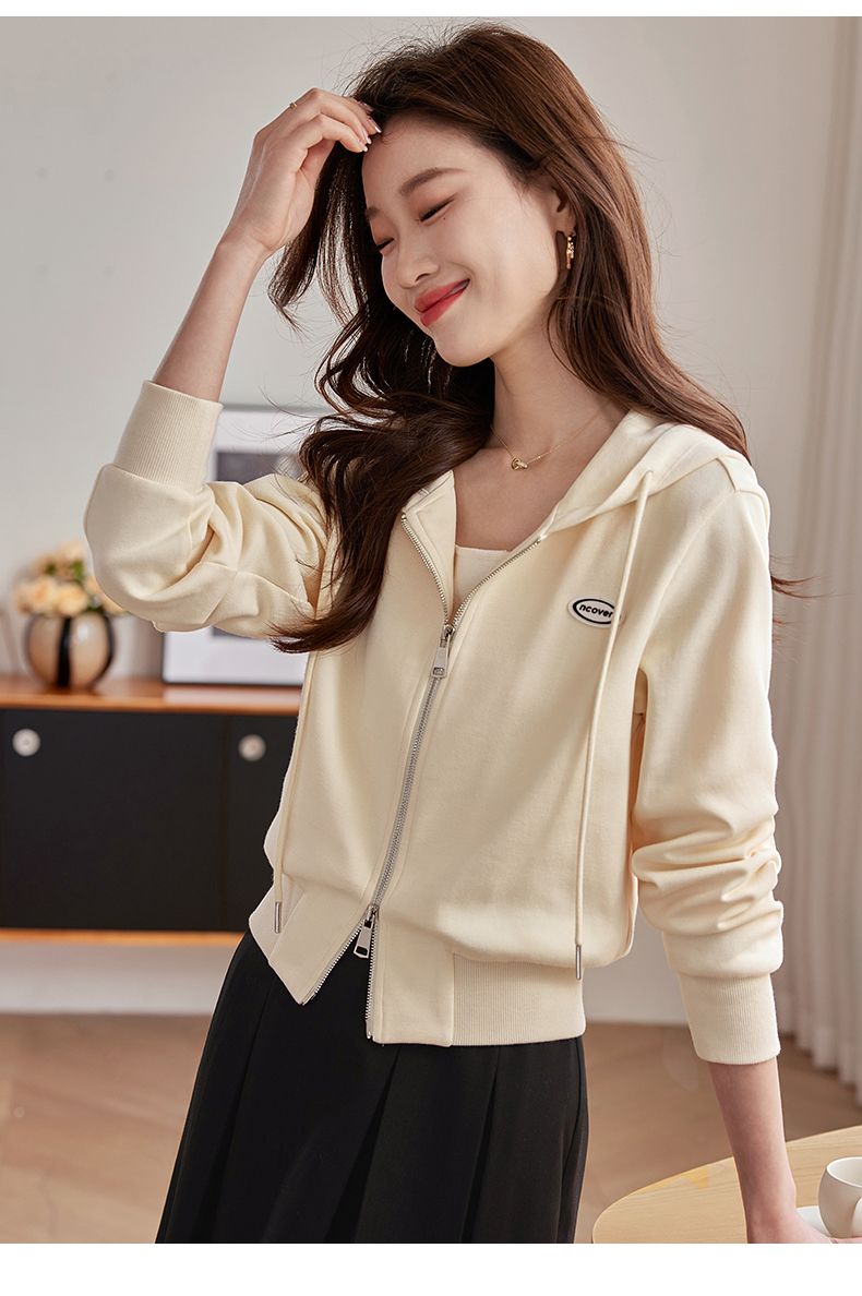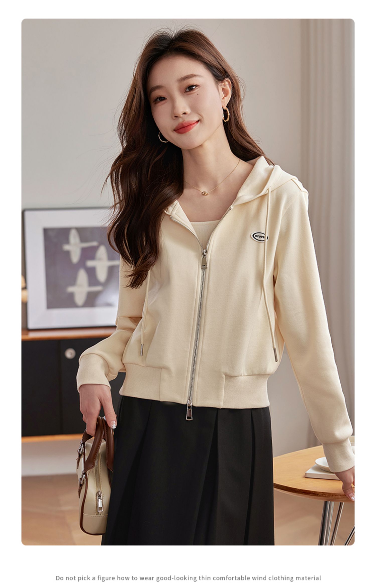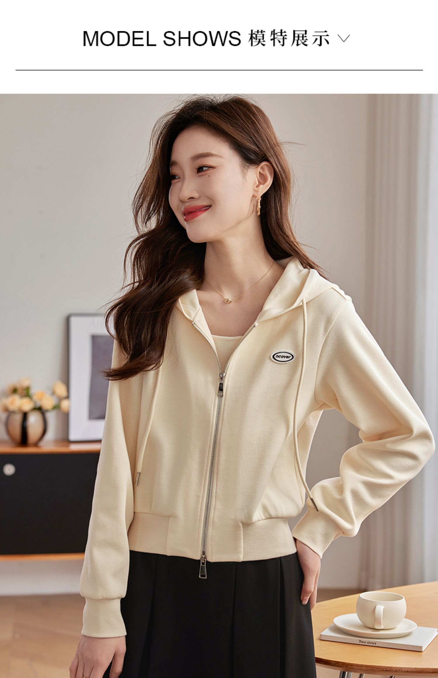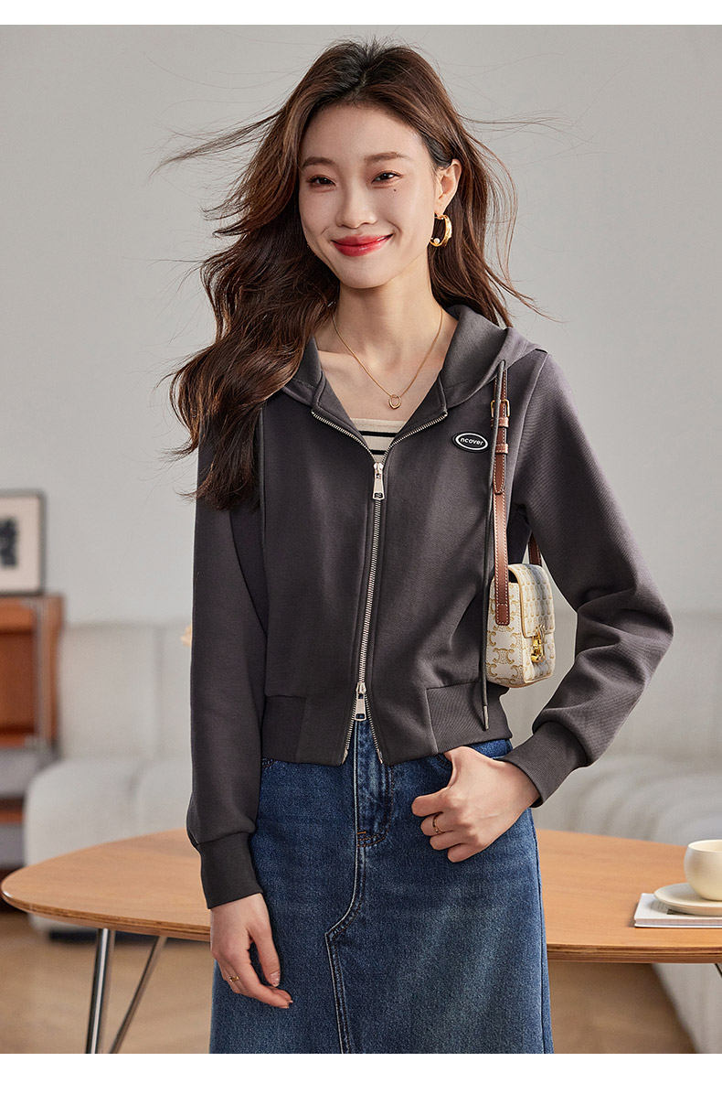 【年终特卖】熙世界连帽开衫卫衣2025秋新款通勤落肩袖小个子短款洋气上衣女