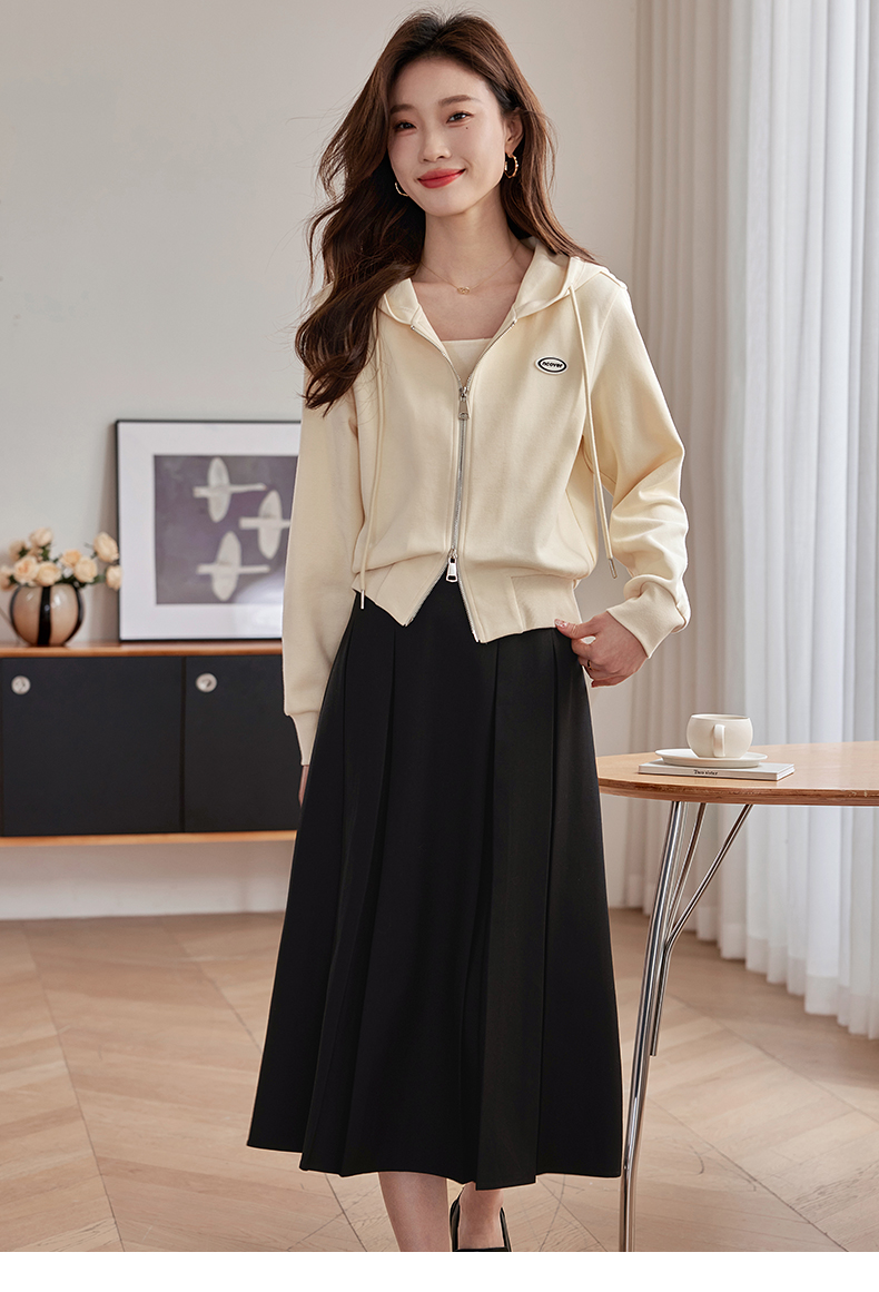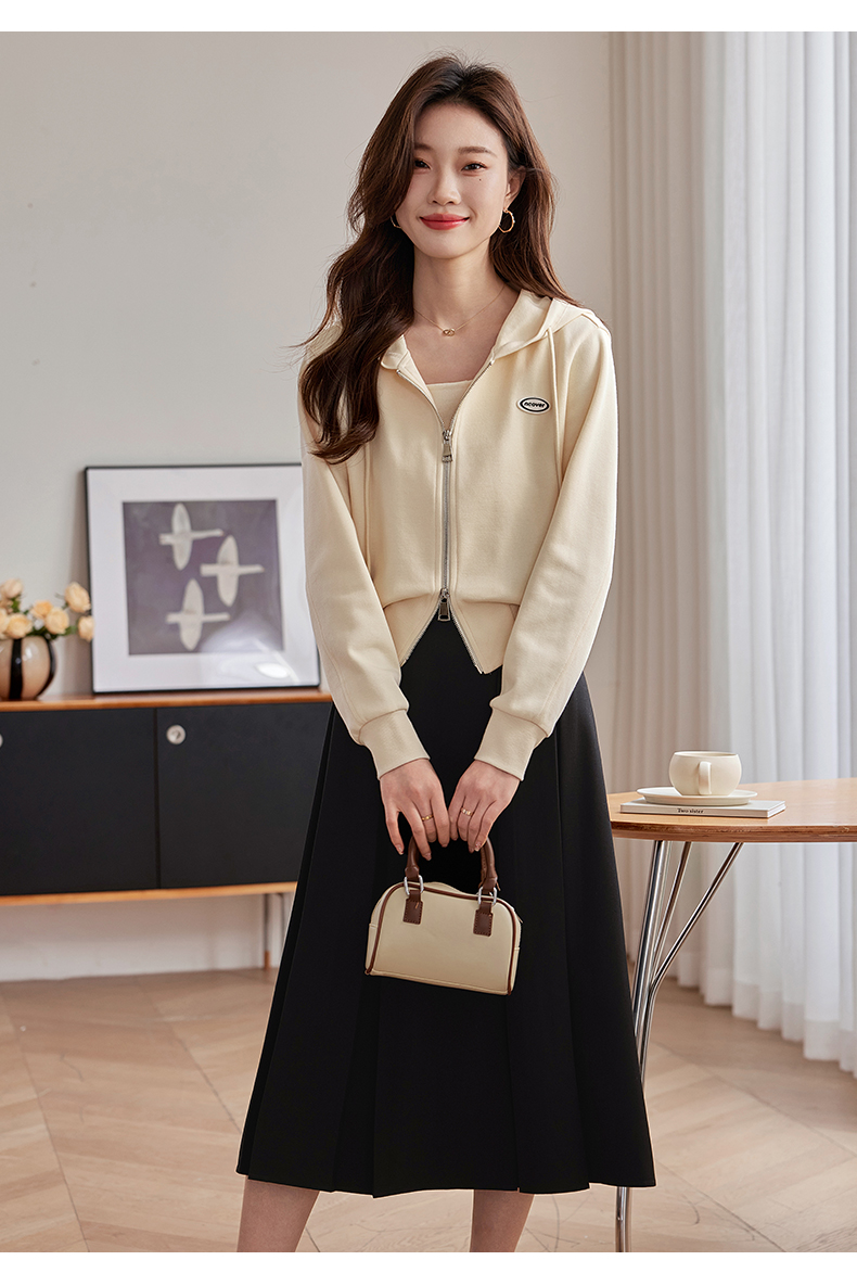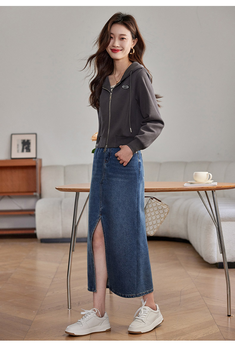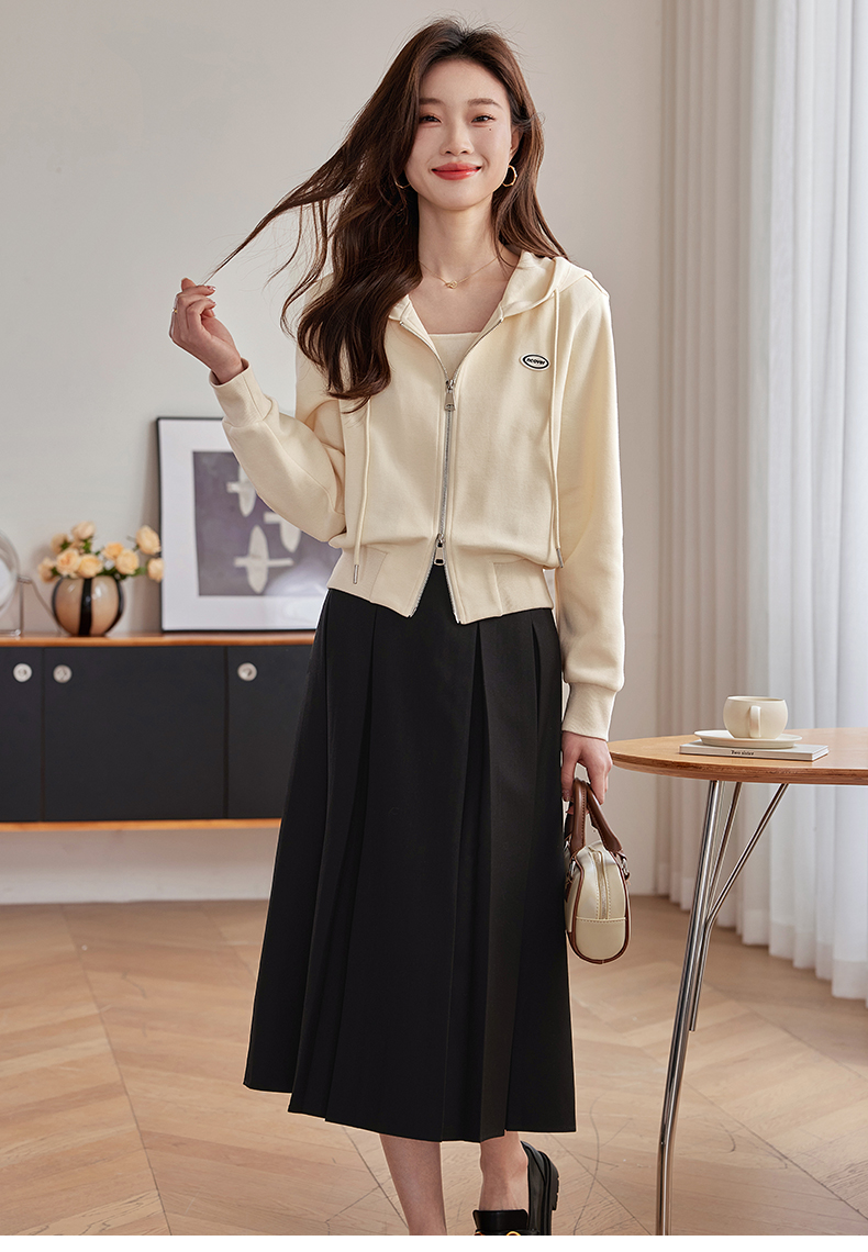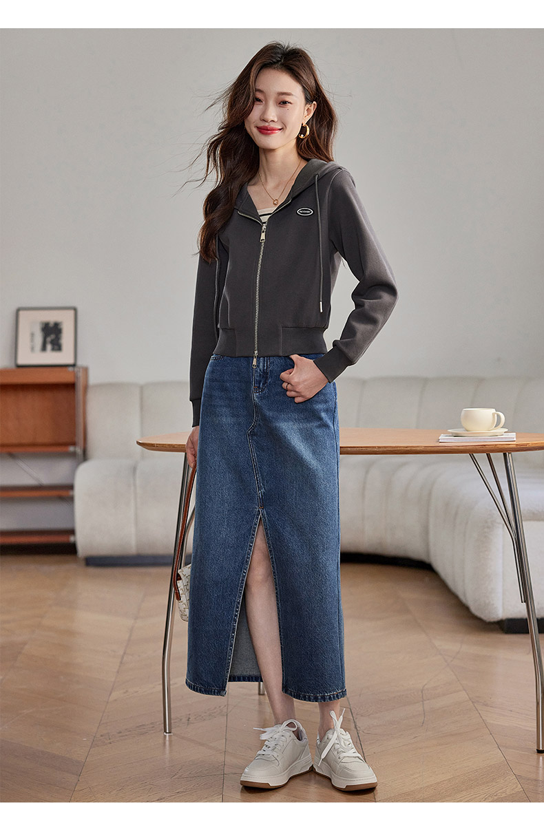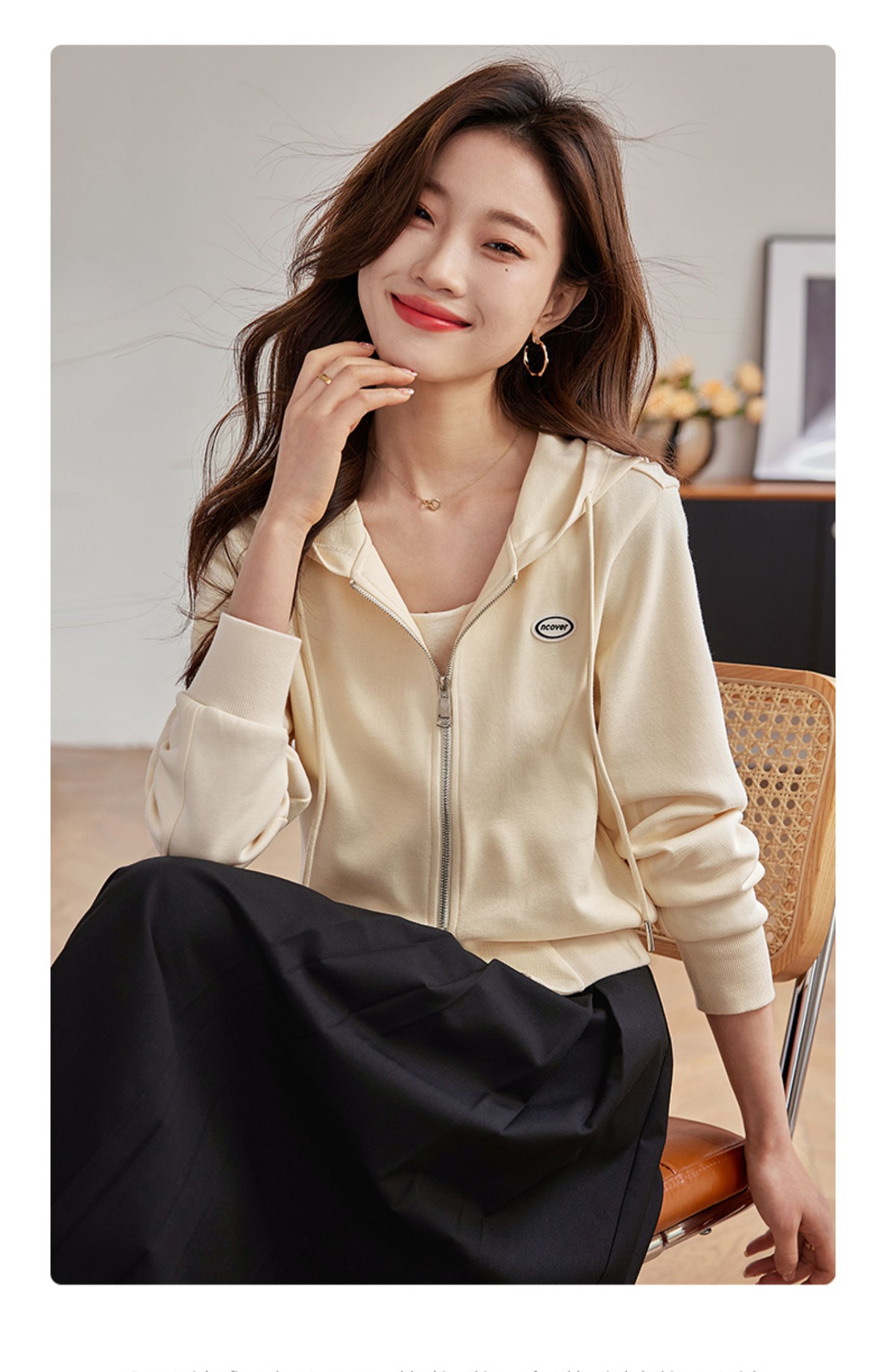 【年终特卖】熙世界连帽开衫卫衣2025秋新款通勤落肩袖小个子短款洋气上衣女
