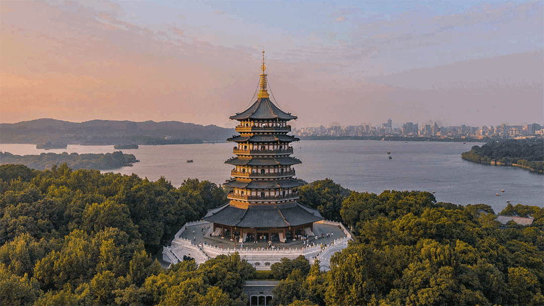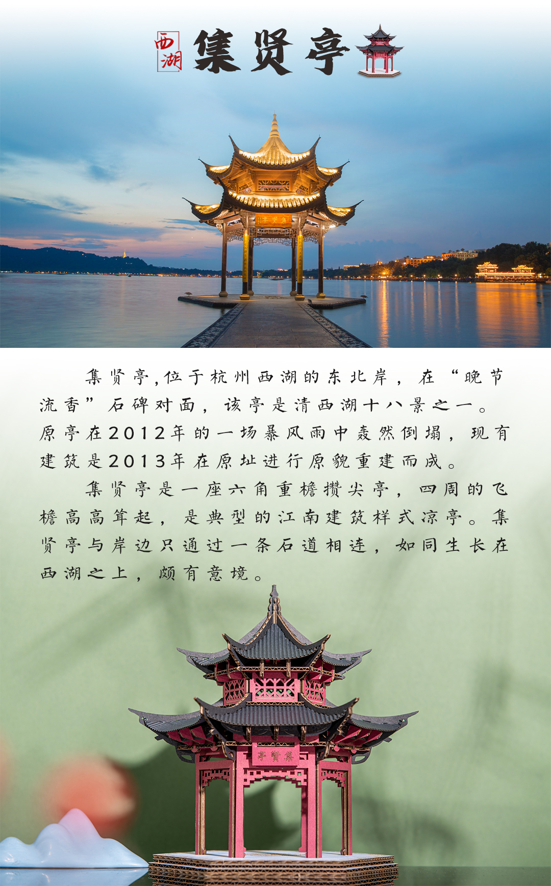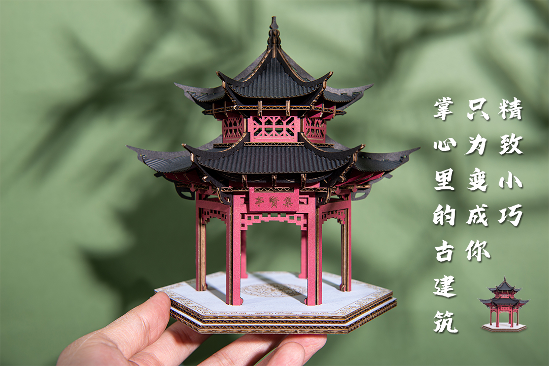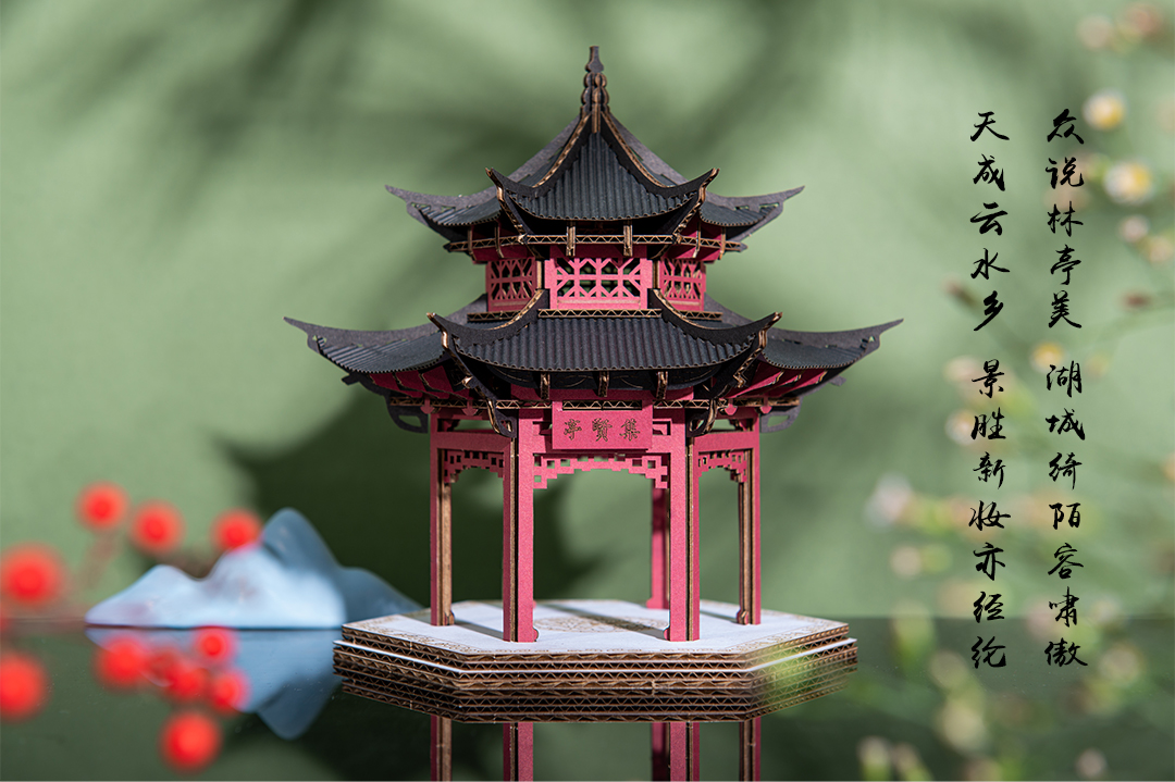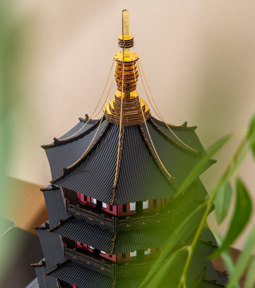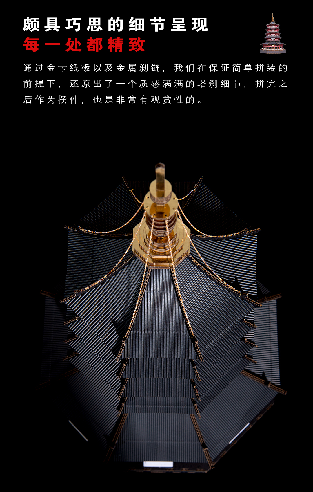 杭州西湖雷峰塔中国古建筑榫卯积木玩具古风拼装国潮纸玩模型礼物