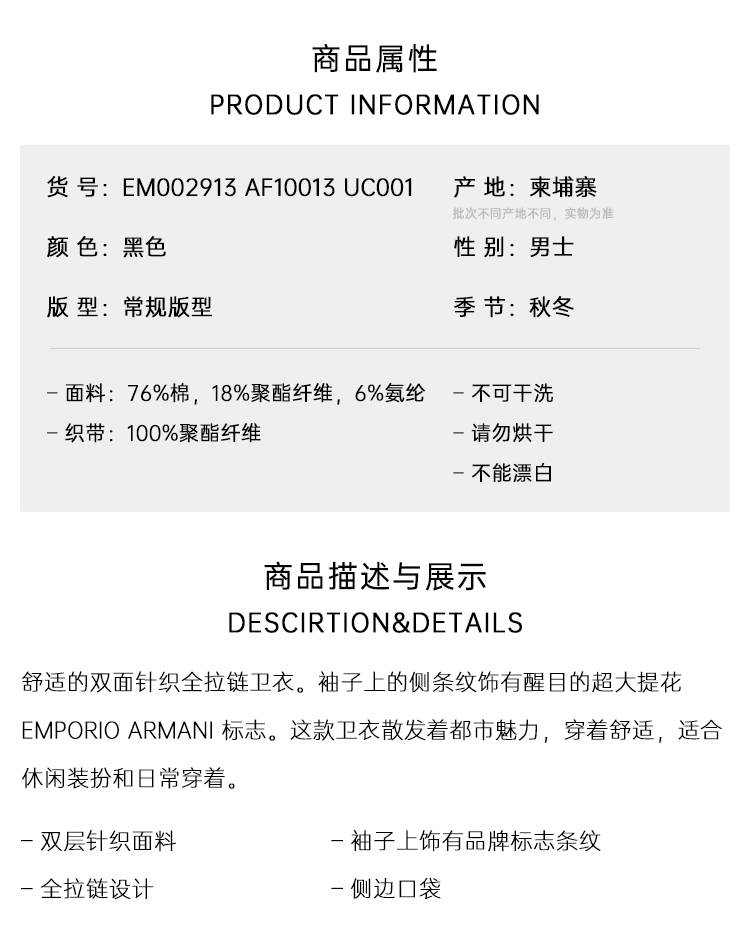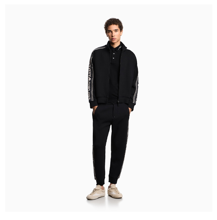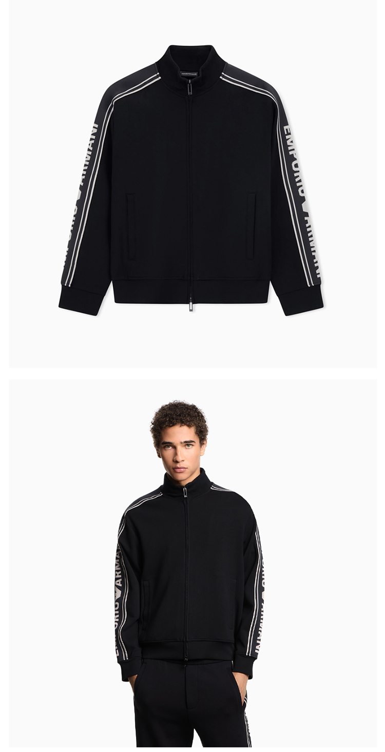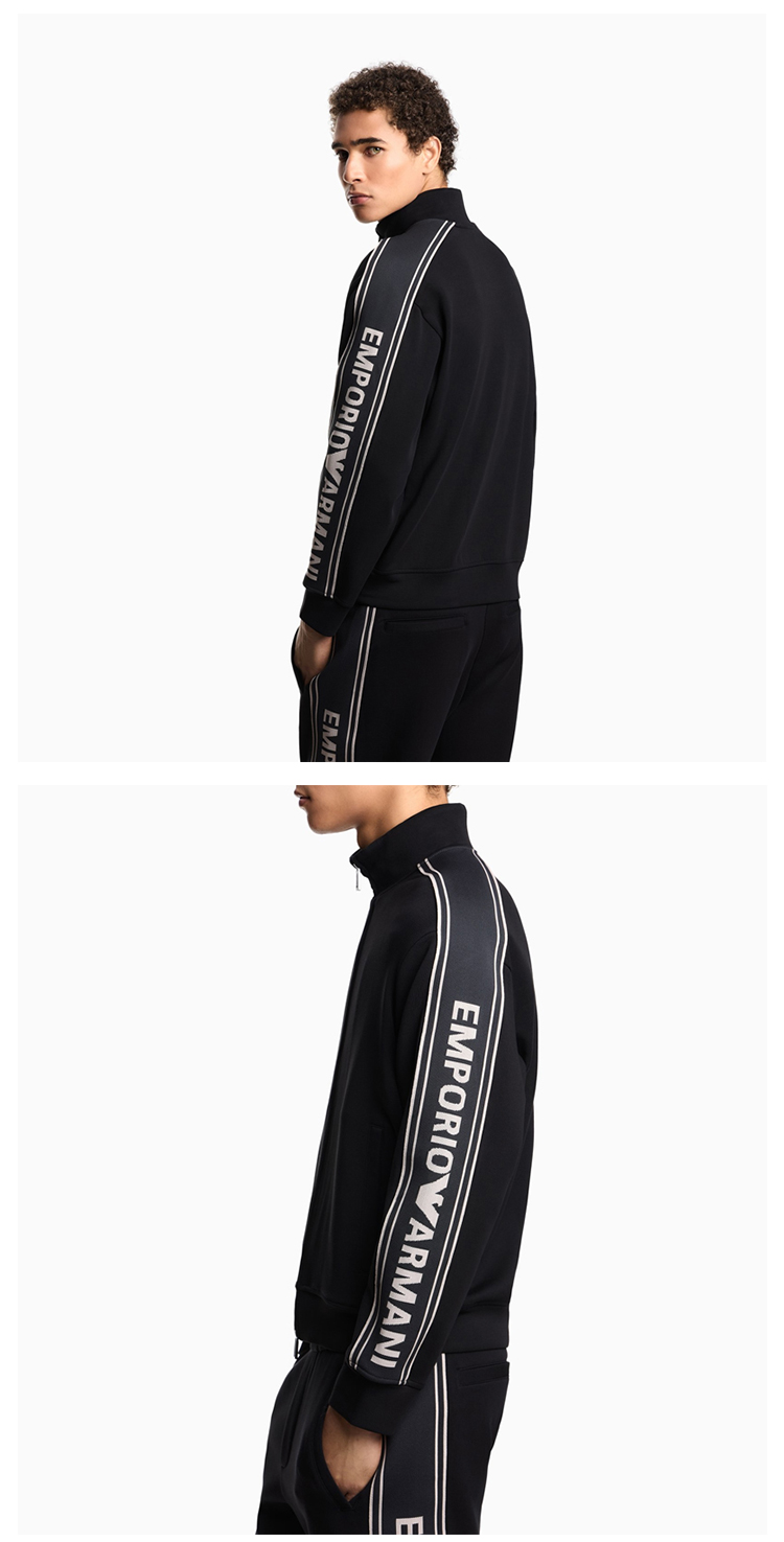 EMPORIO ARMANI 阿玛尼 男士徽标条纹 ASV 双面针织全拉链运动卫衣 黑色 EM002913 AF10013 UC001