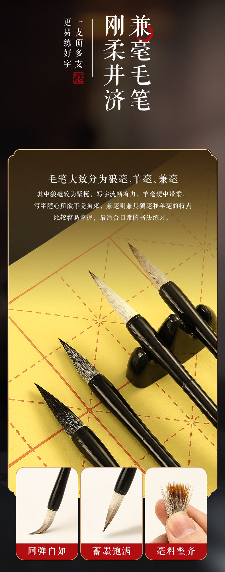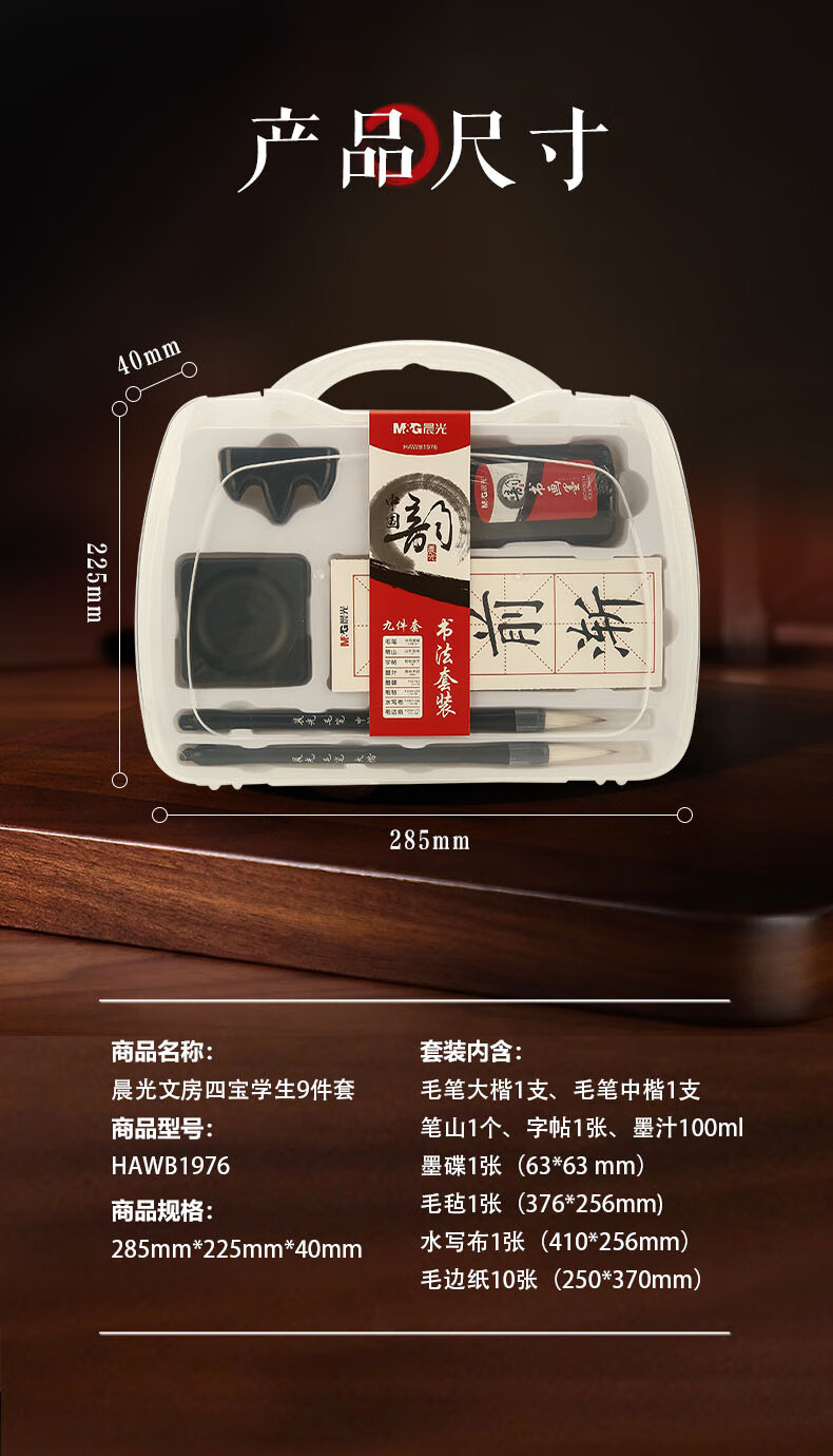 【班小二用户专享】晨光(M&G)文具文房四宝学生便携毛笔套装 成人初学者笔墨纸砚11件套