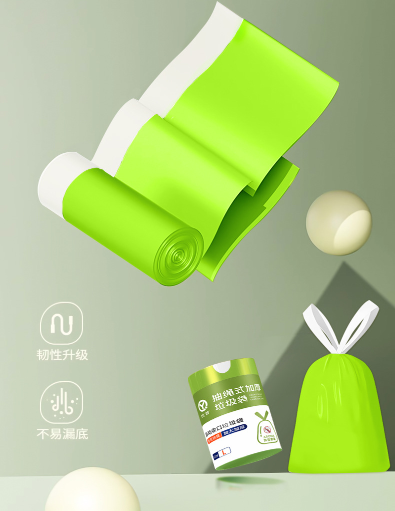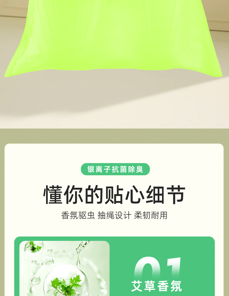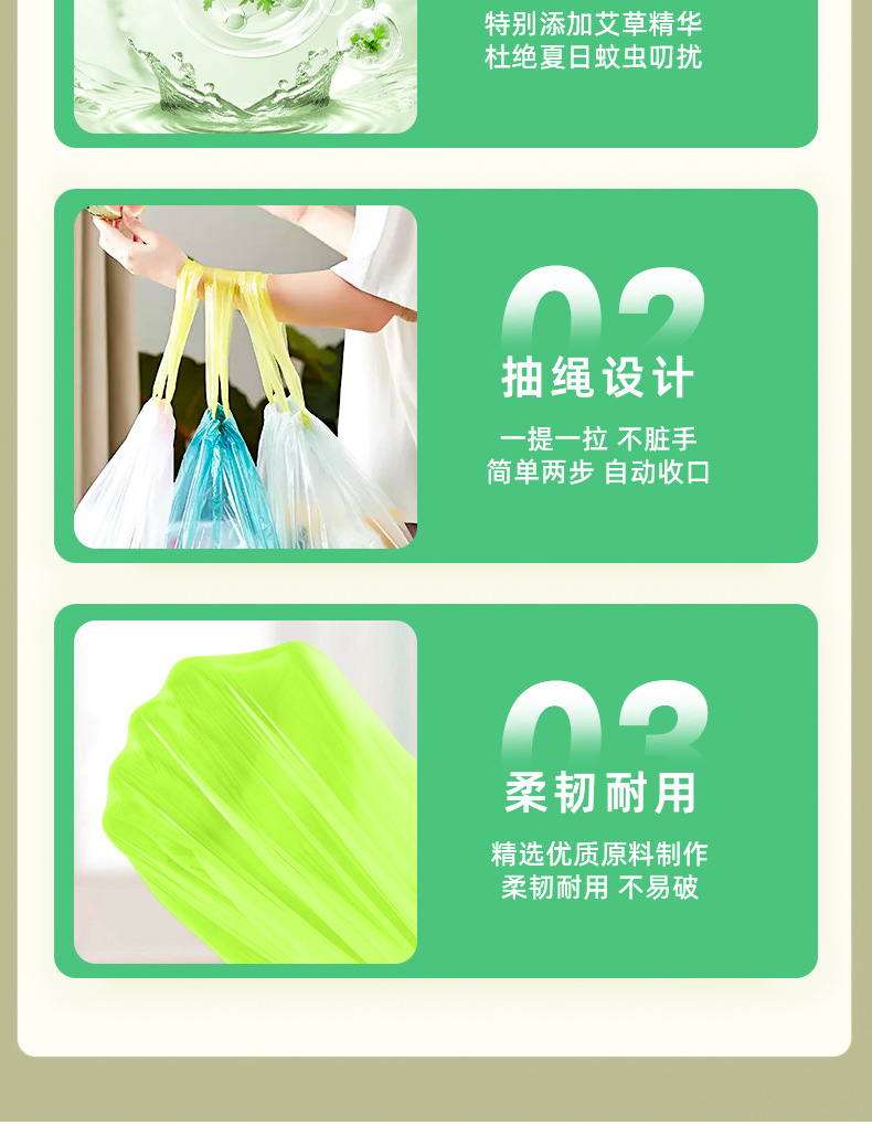 【抢购即赚】「100只大卷装!艾草驱蚊」垃圾袋居家日用手提式抽绳袋子 厨房用品加厚中大号免撕特厚清洁工具袋