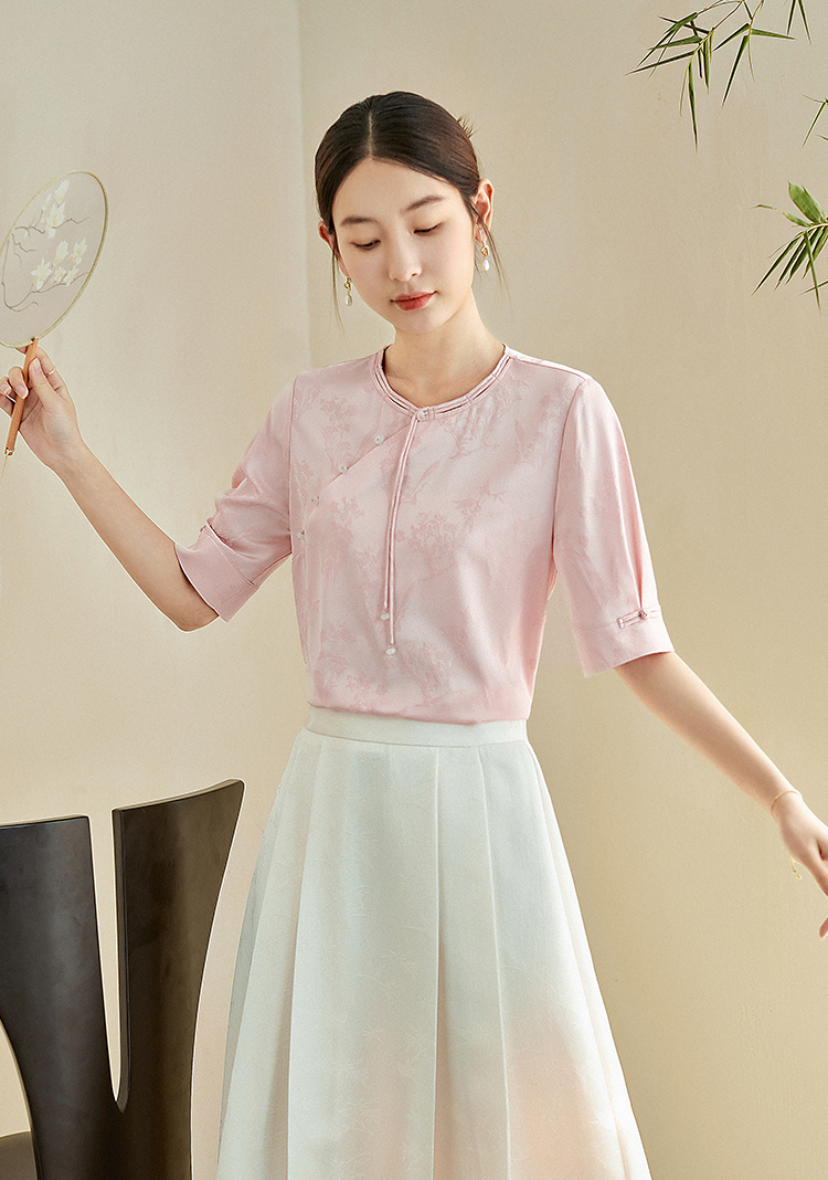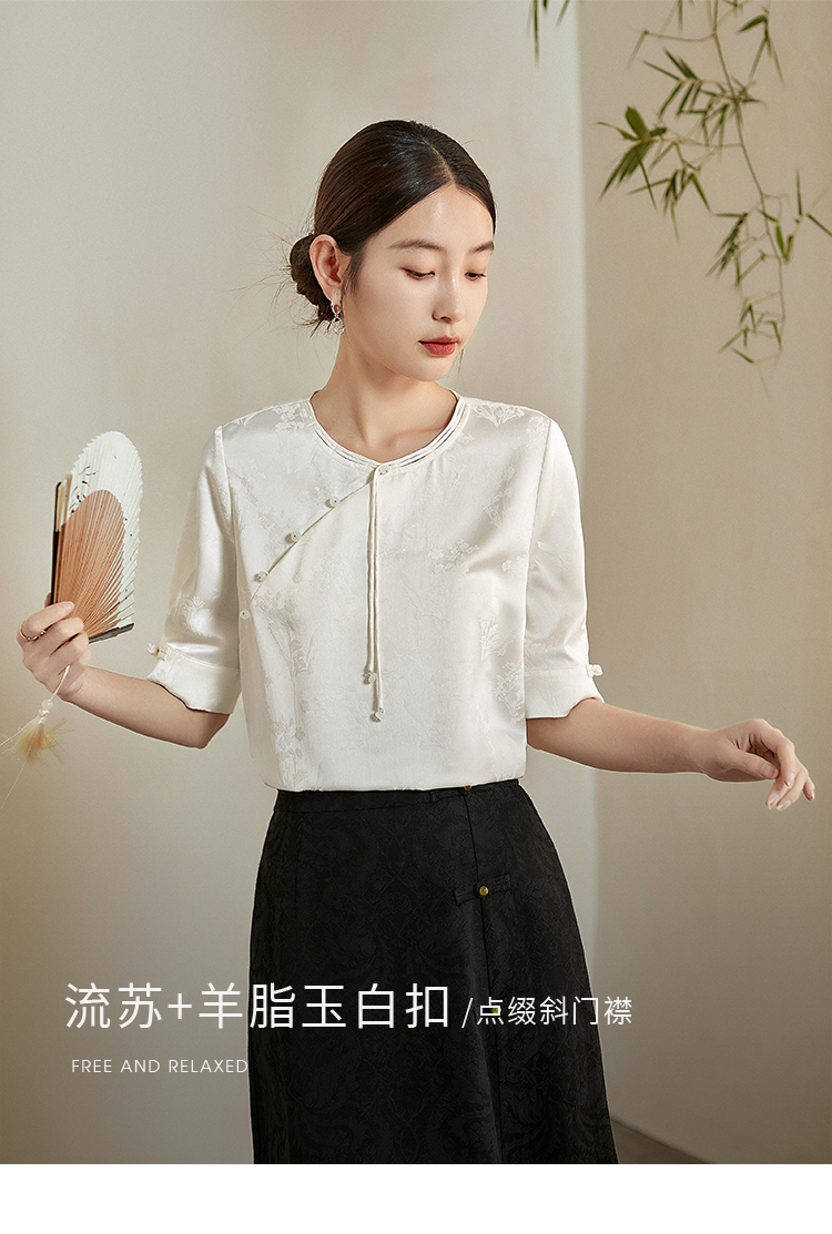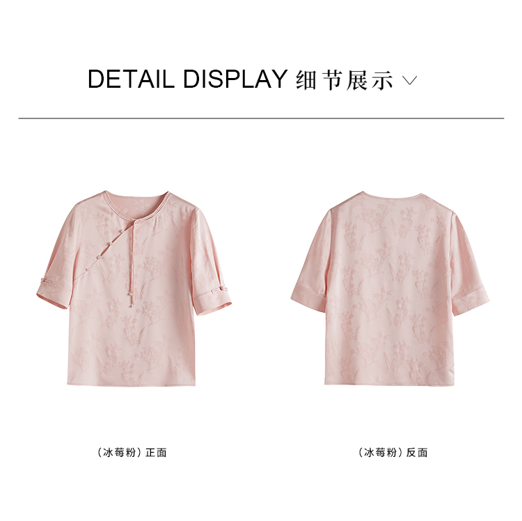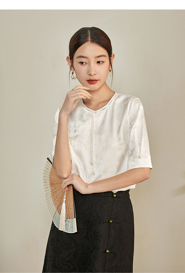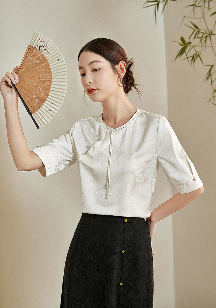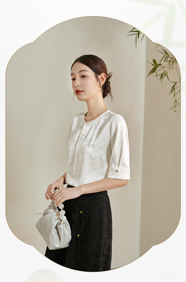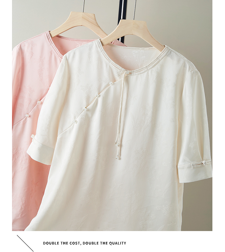 【专属特价】熙世界新中式暗纹提花衬衫半袖上衣女夏新款洋气复古国风短袖小衫