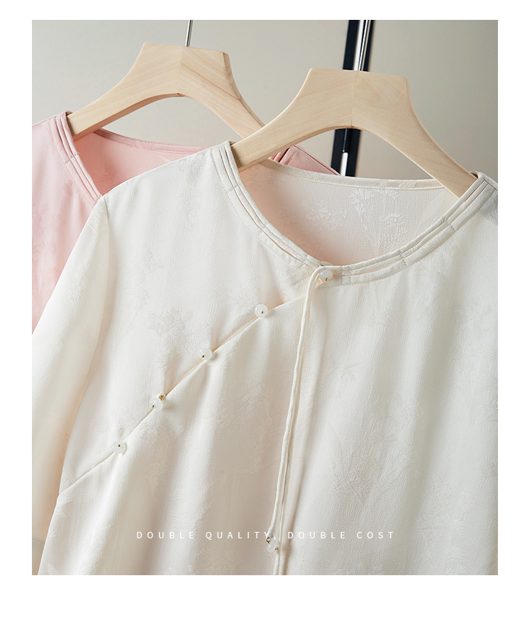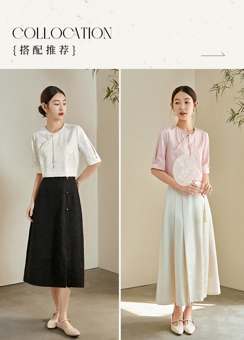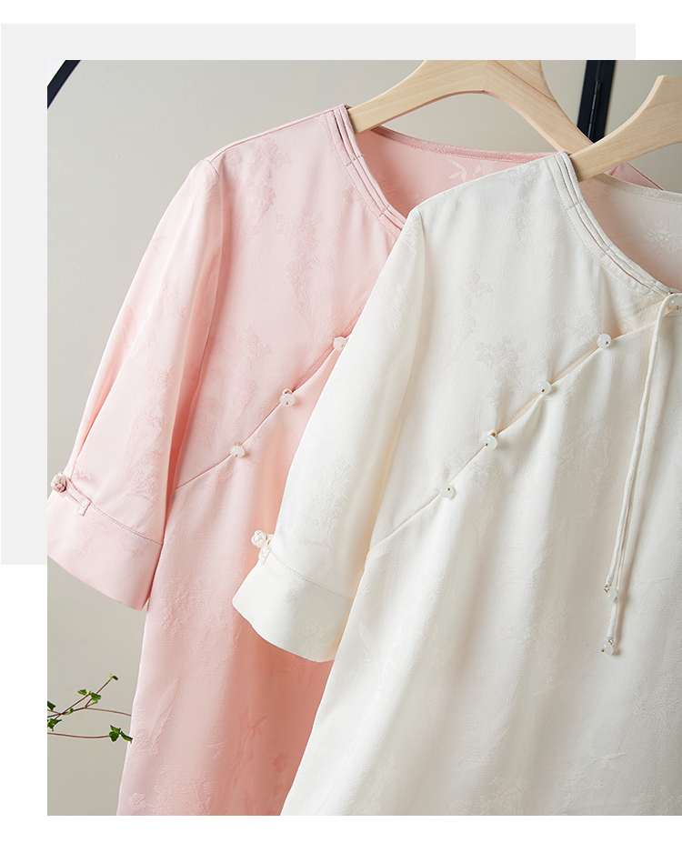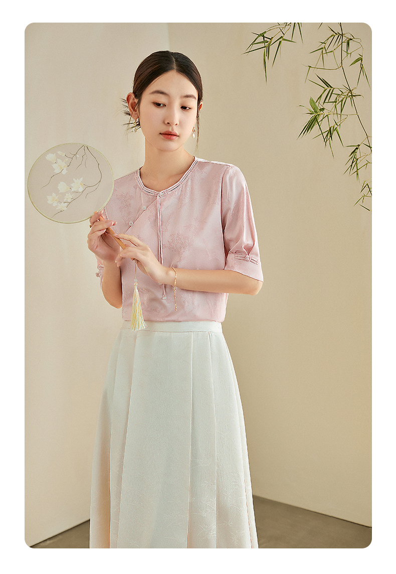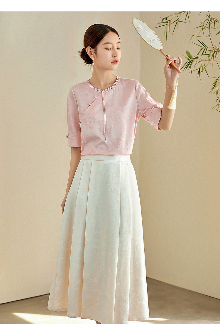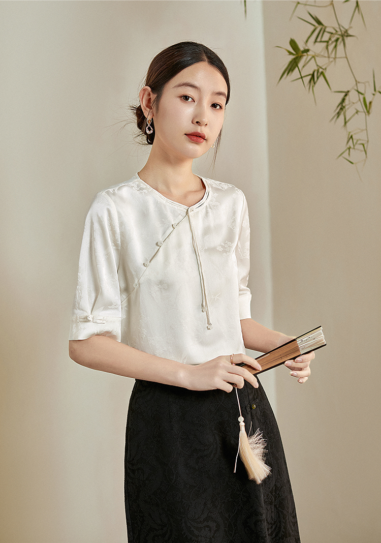 【专属特价】熙世界新中式暗纹提花衬衫半袖上衣女夏新款洋气复古国风短袖小衫