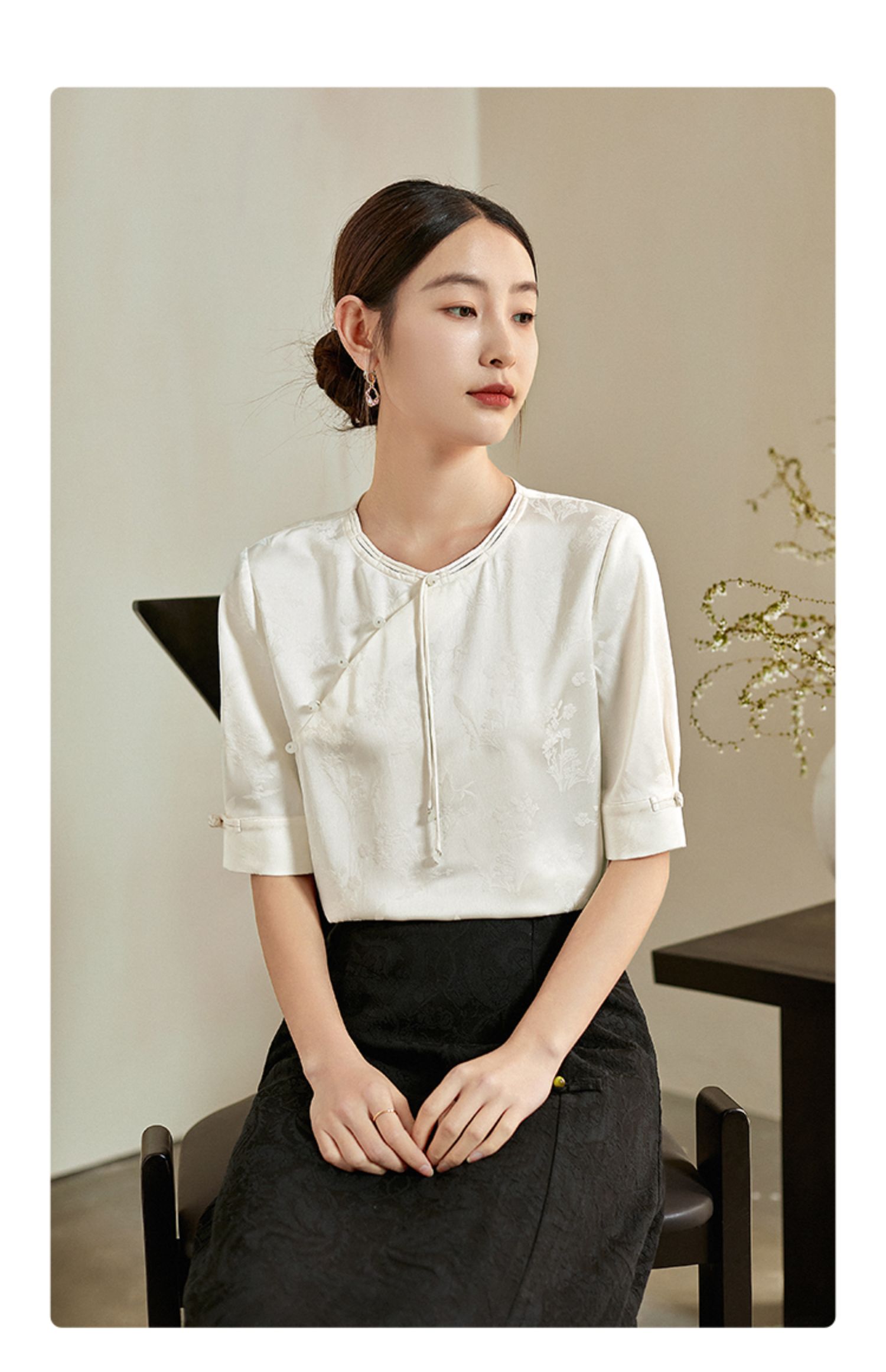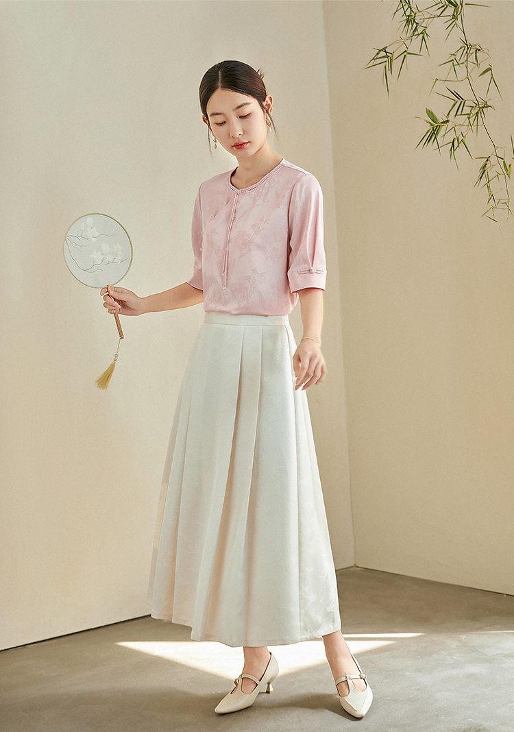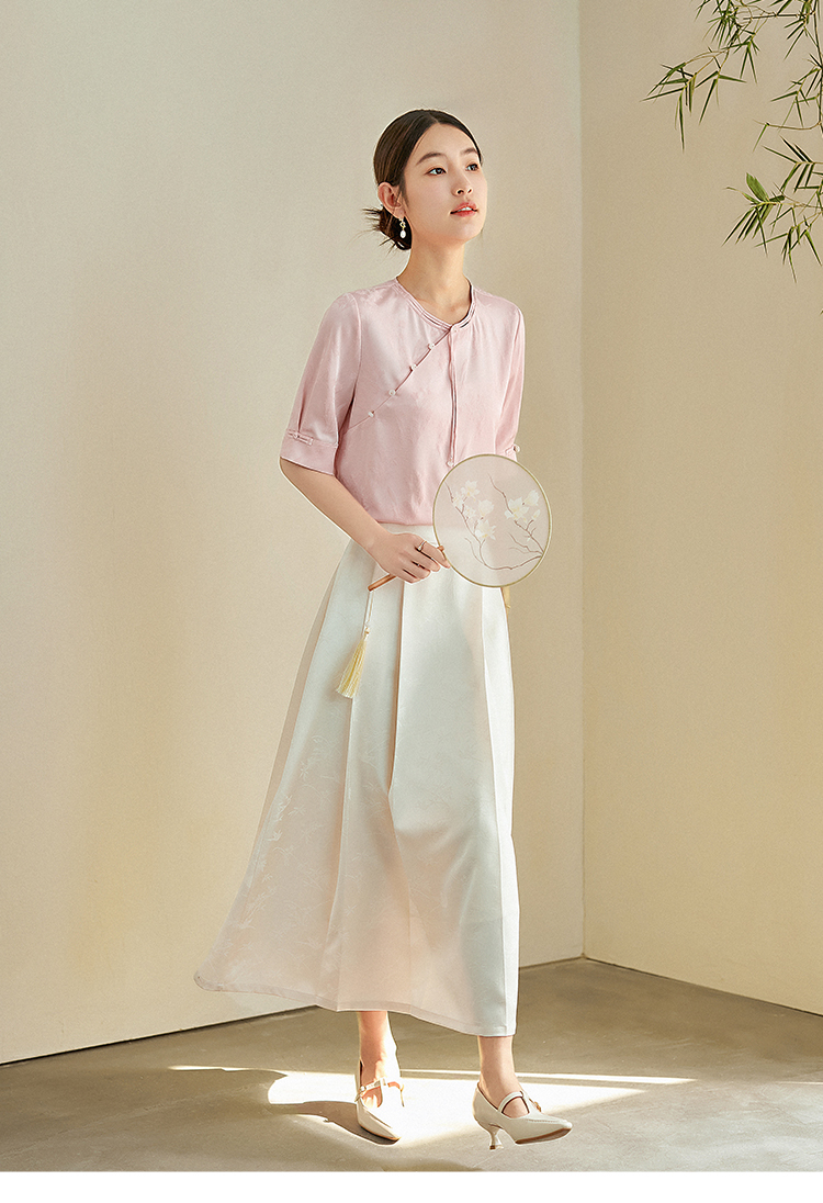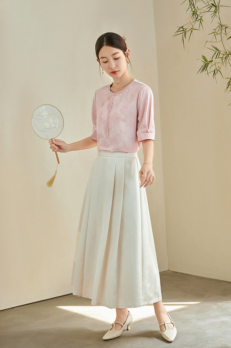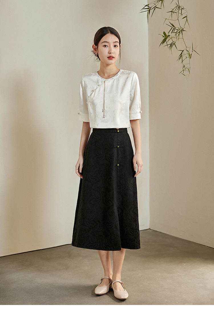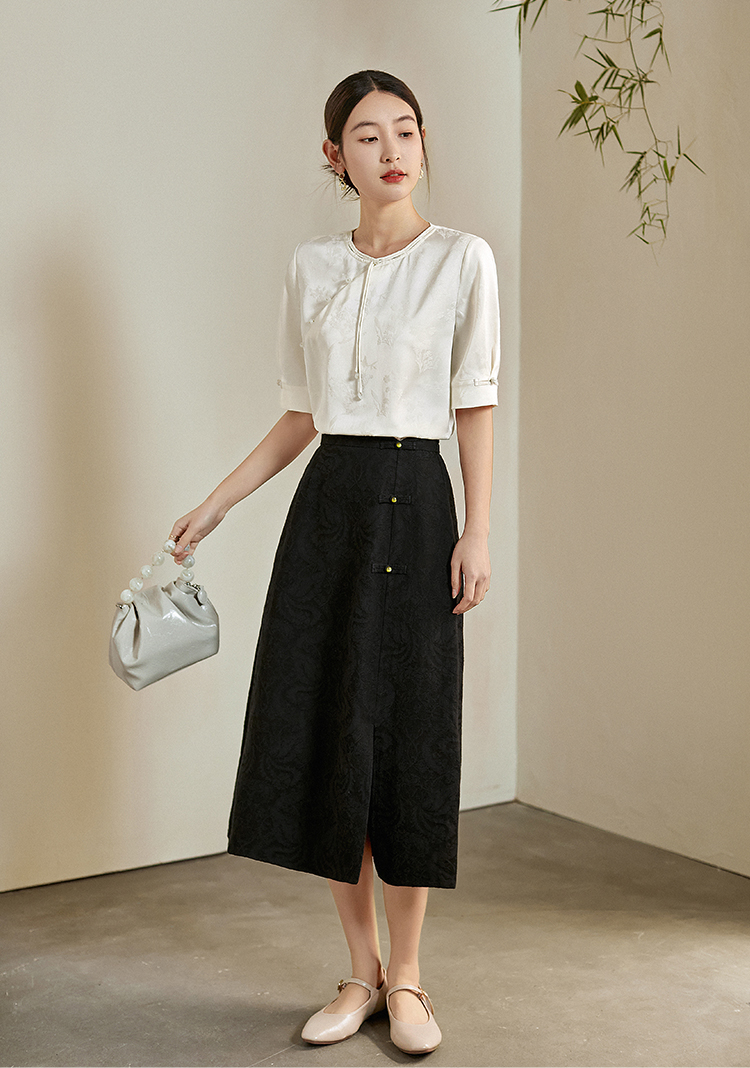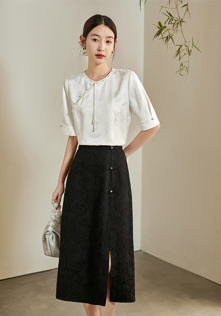 【专属特价】熙世界新中式暗纹提花衬衫半袖上衣女夏新款洋气复古国风短袖小衫
