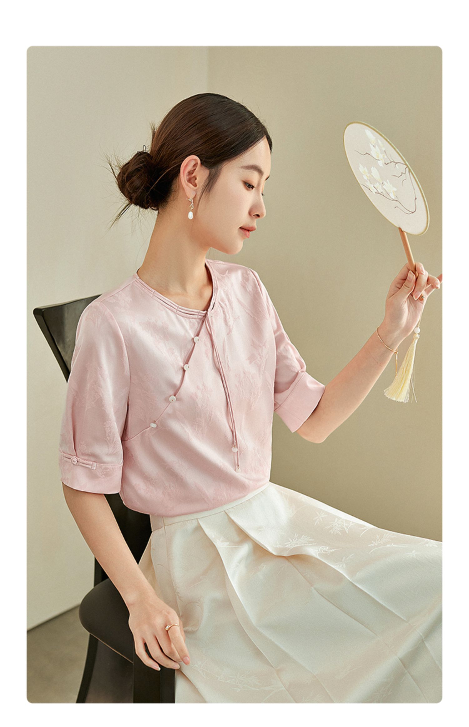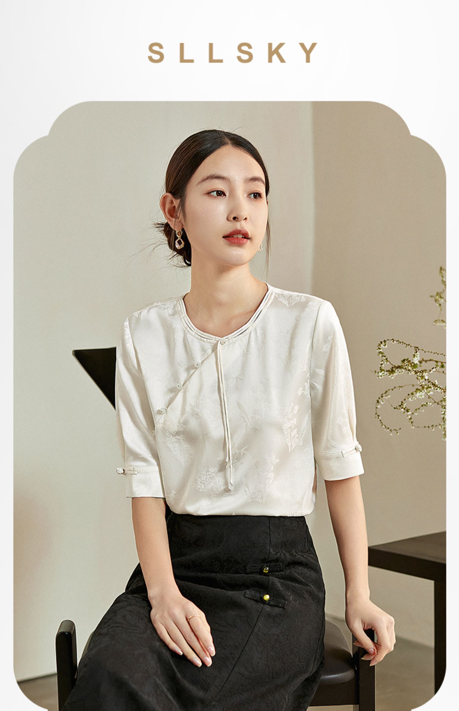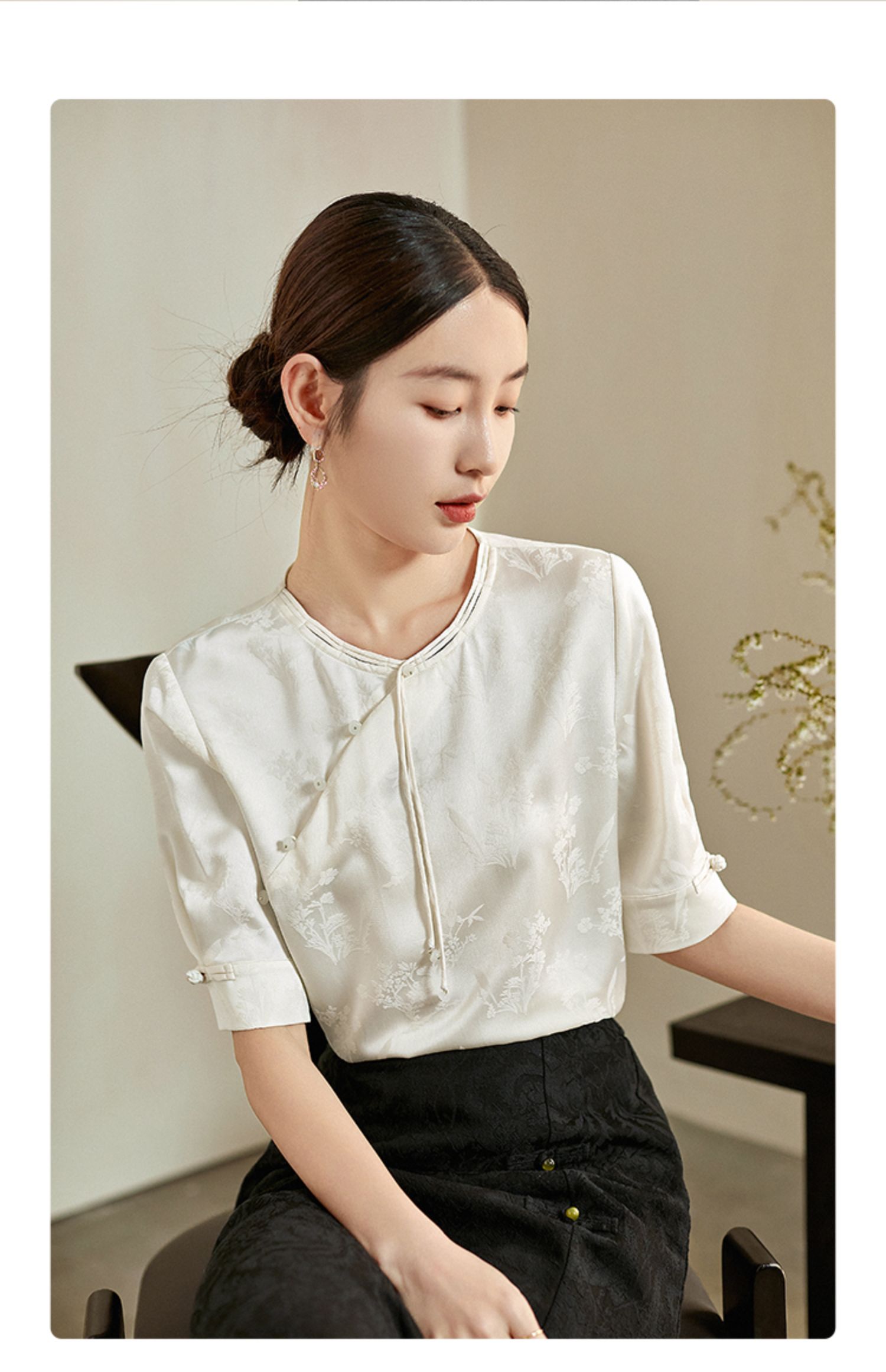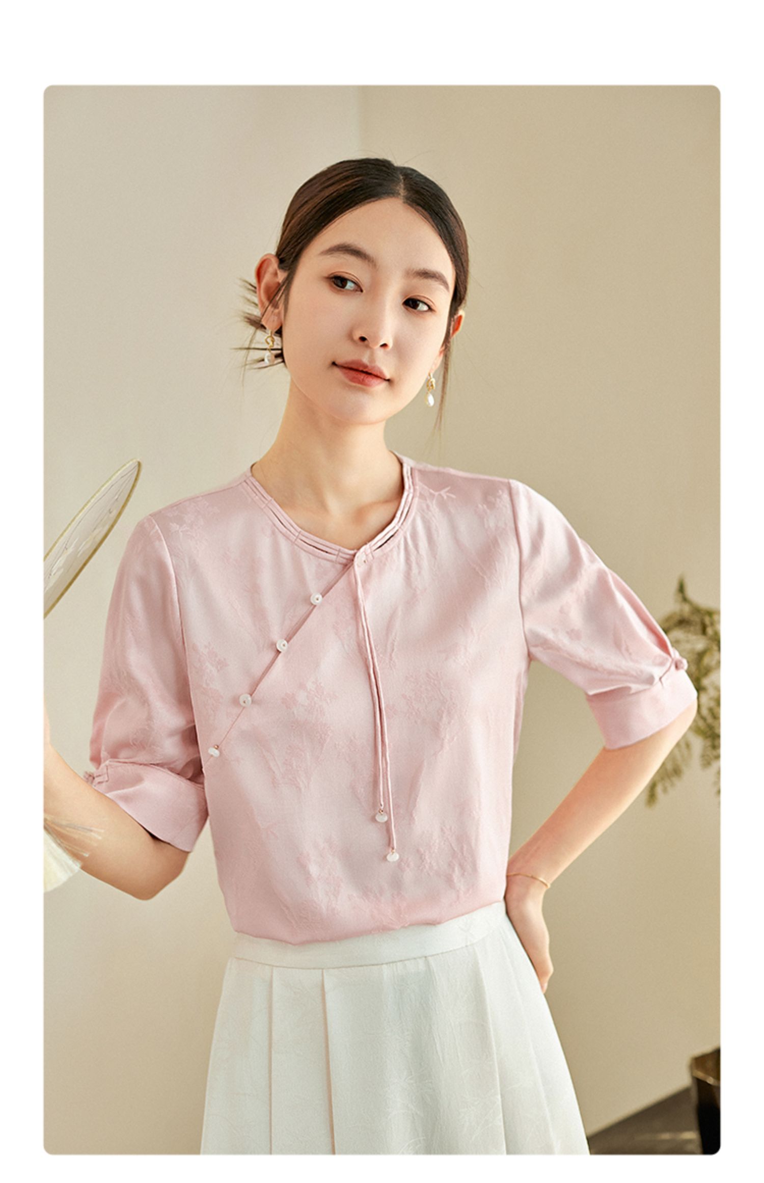 【专属特价】熙世界新中式暗纹提花衬衫半袖上衣女夏新款洋气复古国风短袖小衫