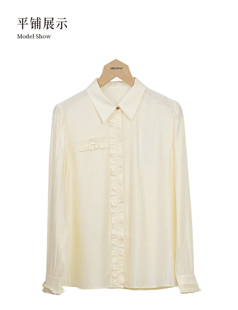 oldcolour休闲花边衬衫秋季新款宽松气质百搭纯色上衣女O32013213
