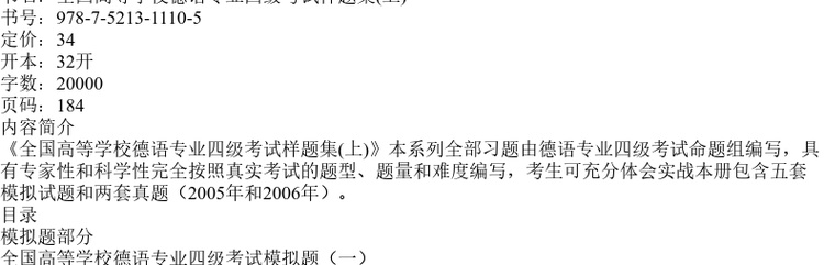 全国高等学校德语专业四级考试样题集(上) 全国德语专四考试用书