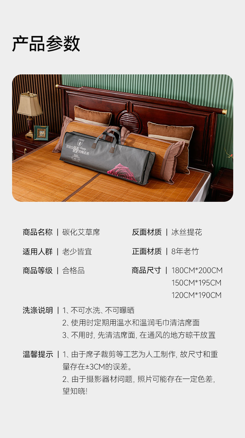 洁丽雅竹席夏季草席冰丝席双面两用折叠家用竹凉席宿舍空调凉席子