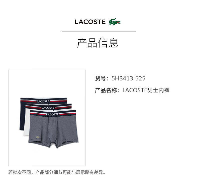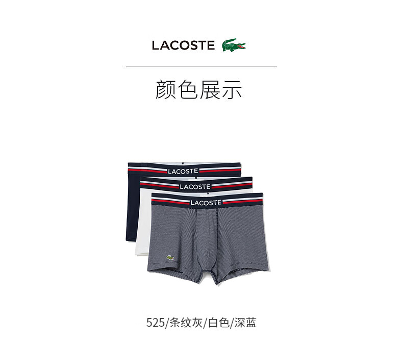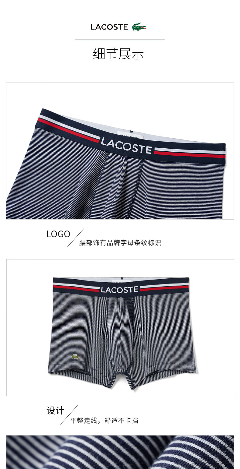 Lacoste法国鳄鱼男装新款时尚舒适3条装平角内裤5H3413-10