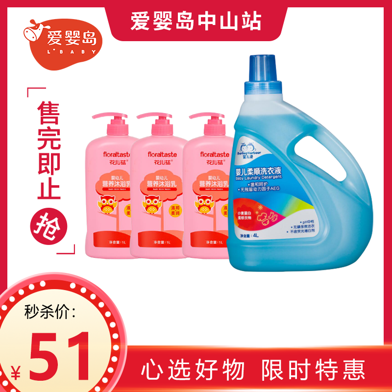 五一专场-3瓶花儿滋1升沐浴乳+1瓶蜜儿港4升洗衣液