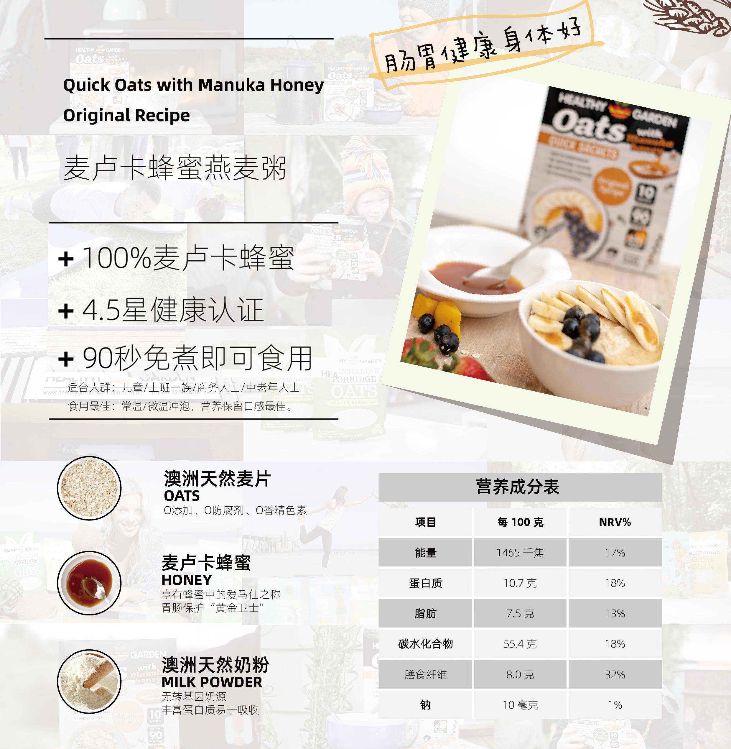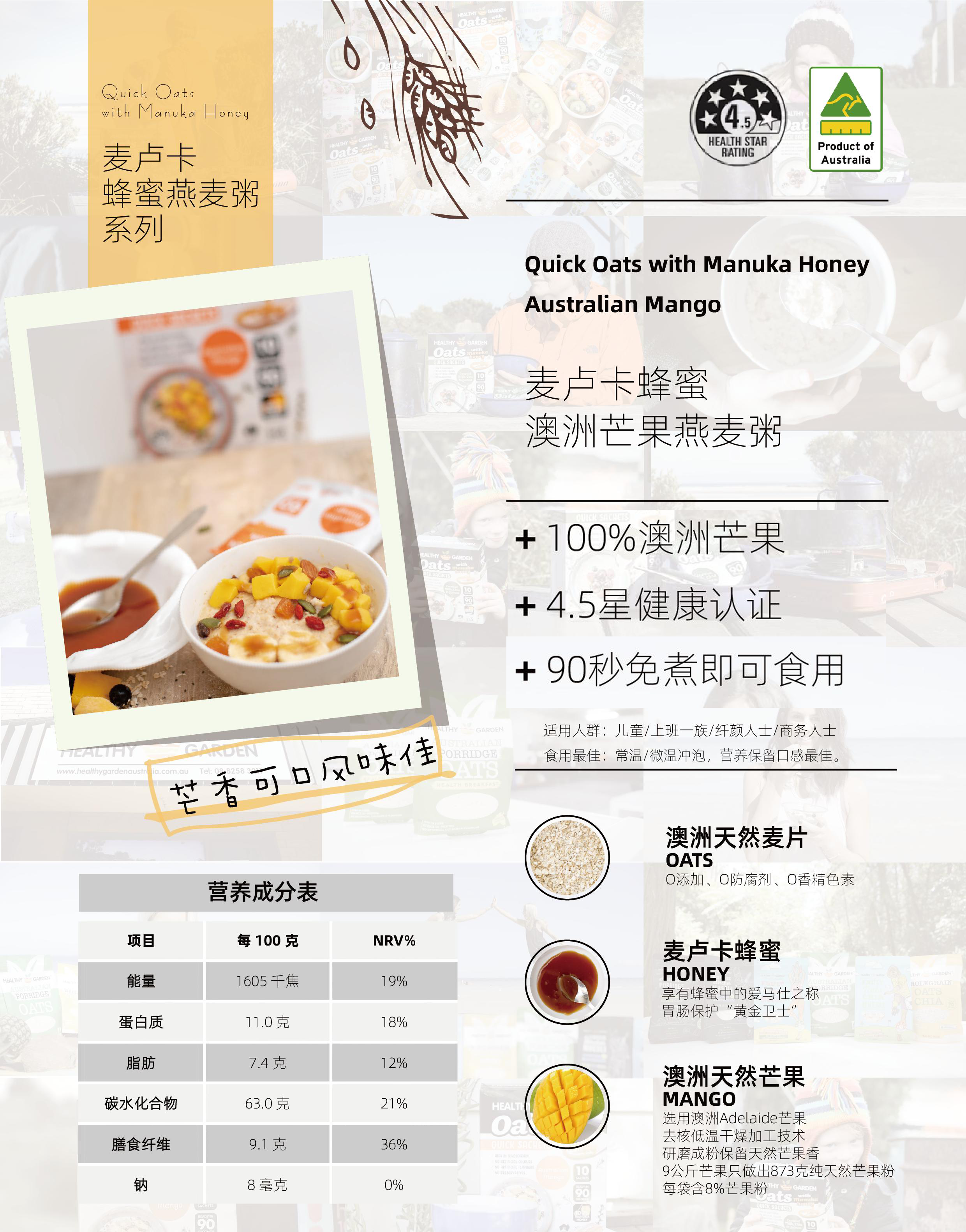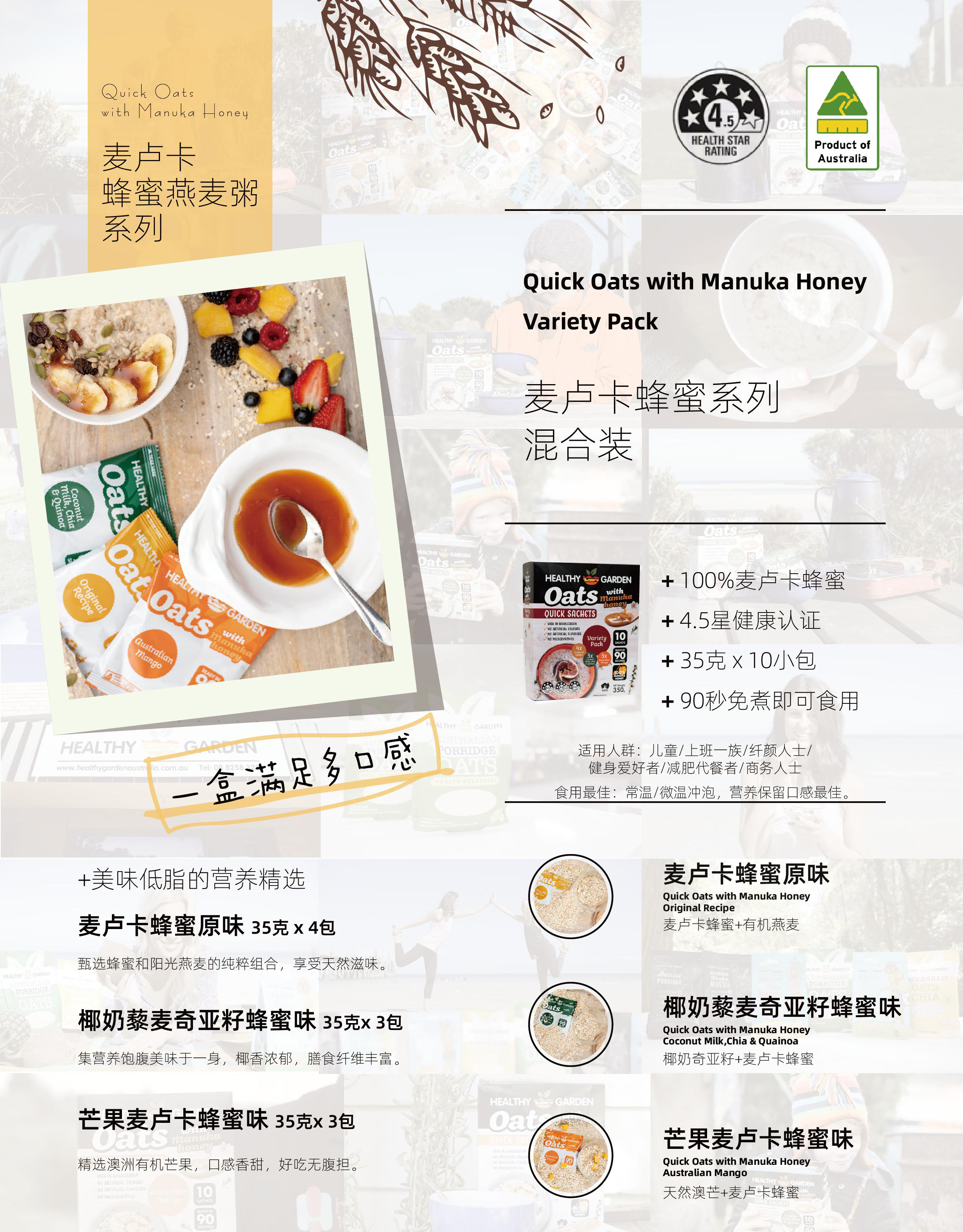 澳洲豪斯佳敦麦卢卡燕麦片(三种口味)350g
