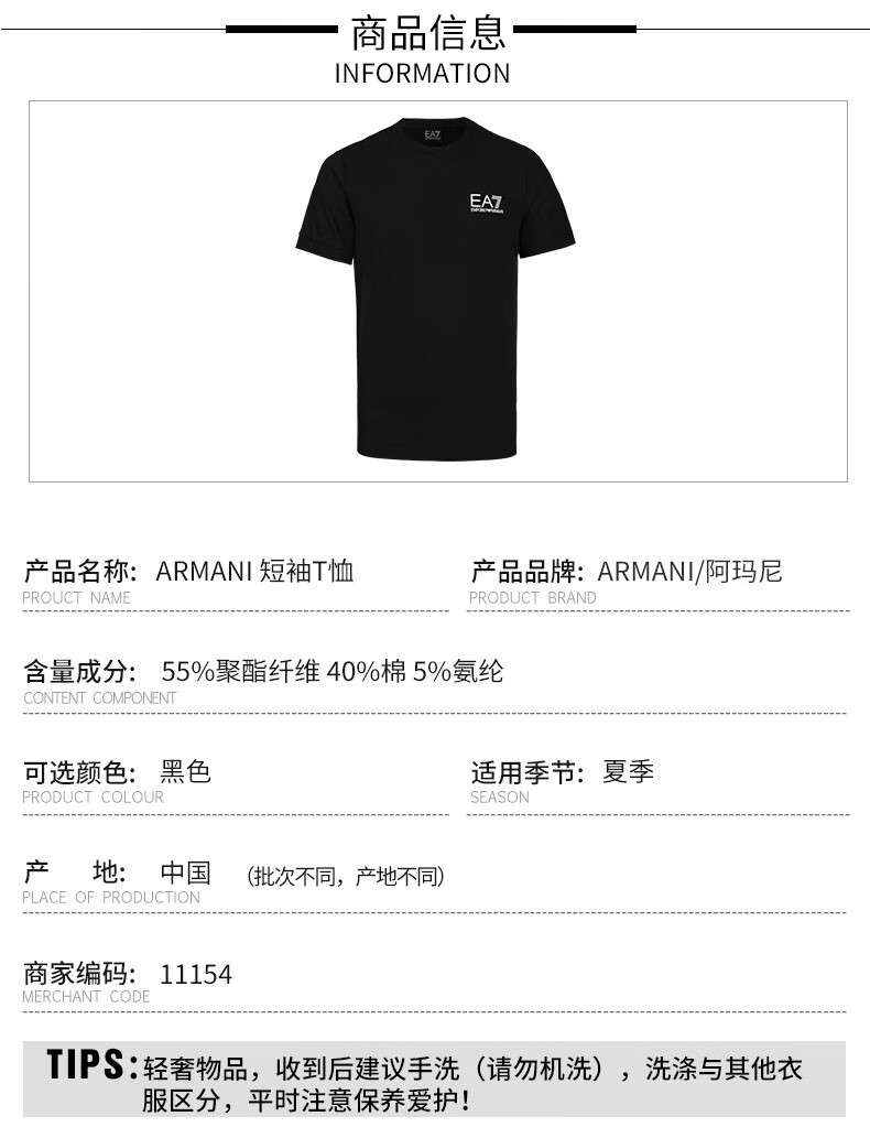 阿玛尼(ARMANI)男士休闲时尚百搭T恤11154