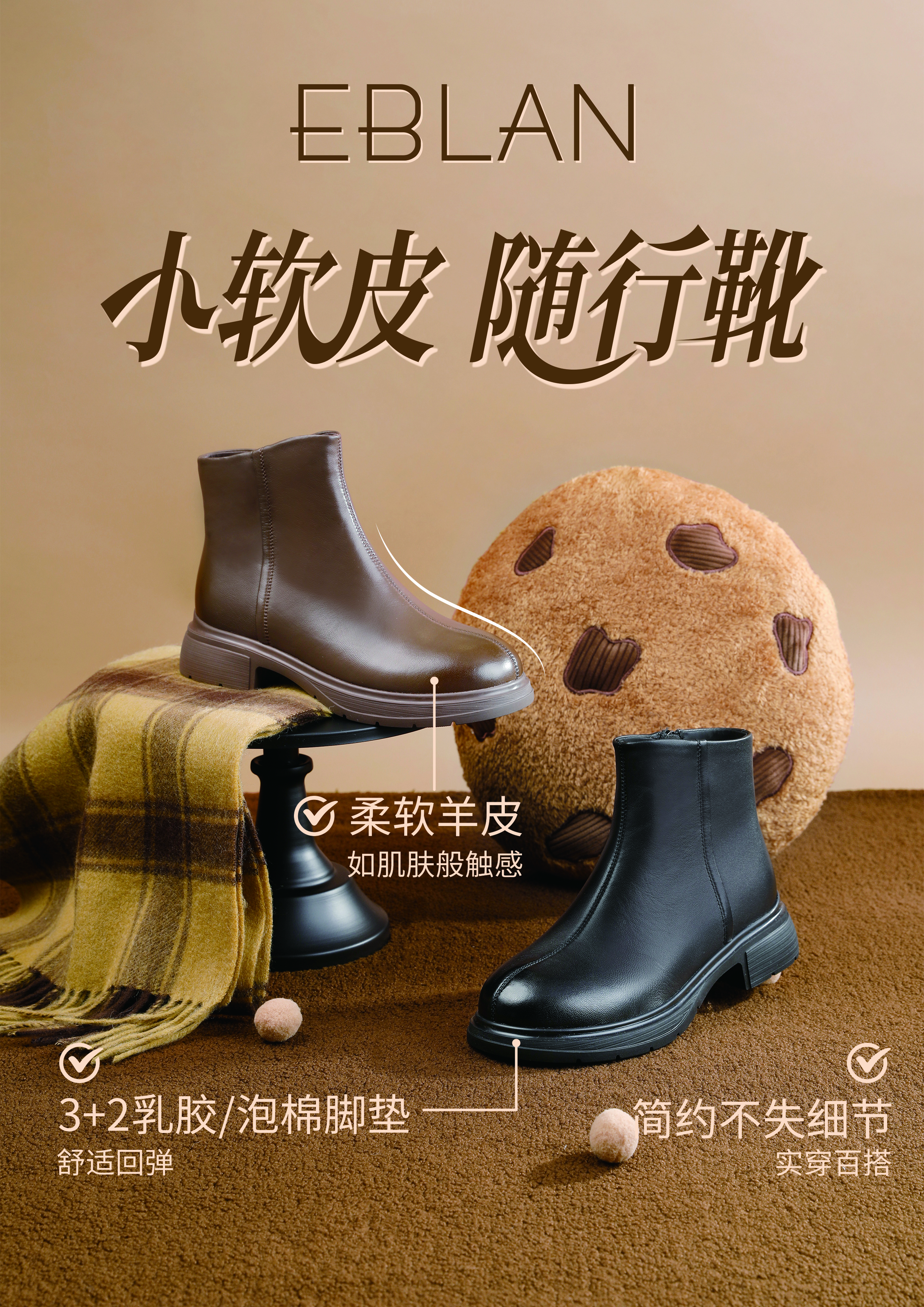 伊伴冬季超柔软简约基础百搭踝靴女时尚休闲鞋B25573513