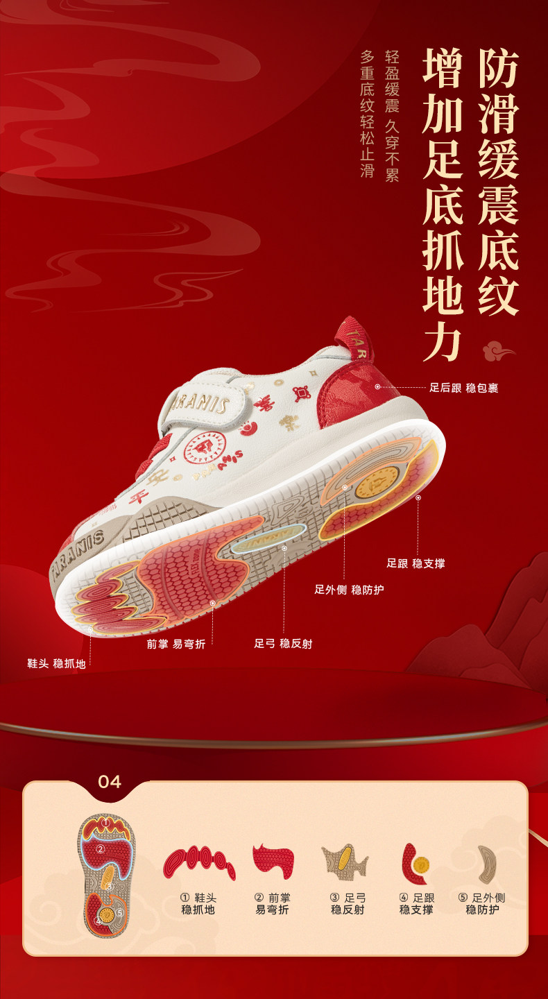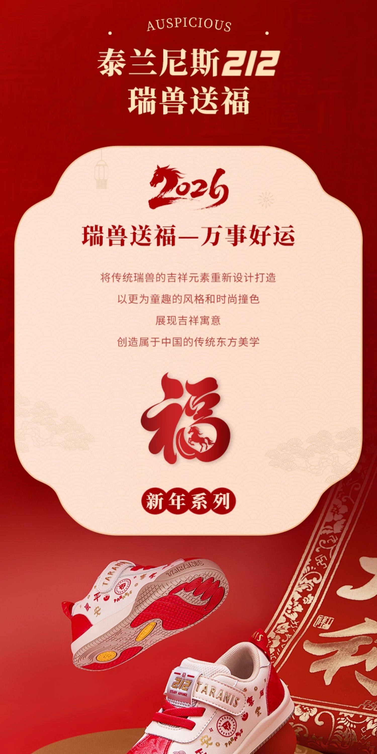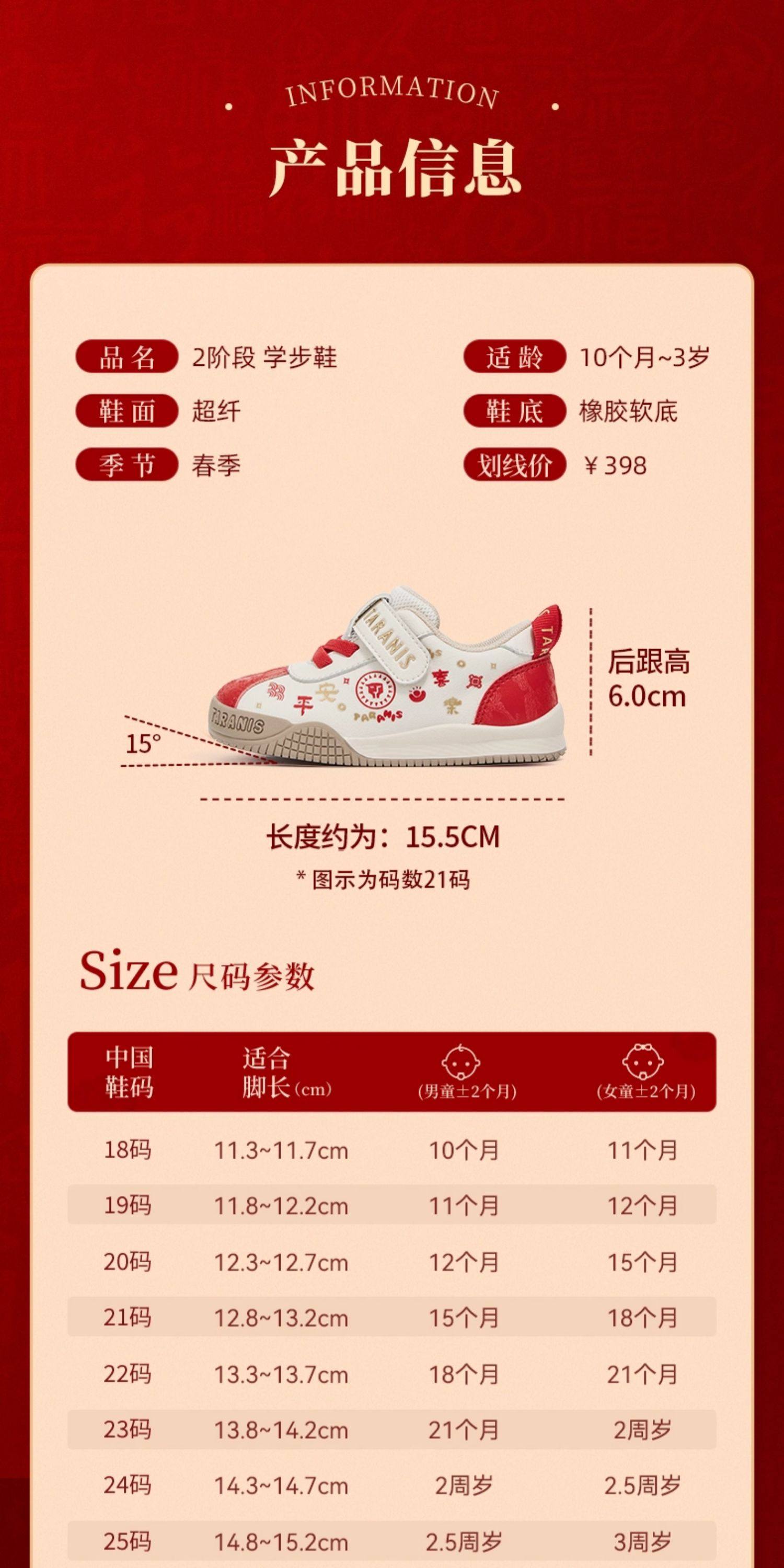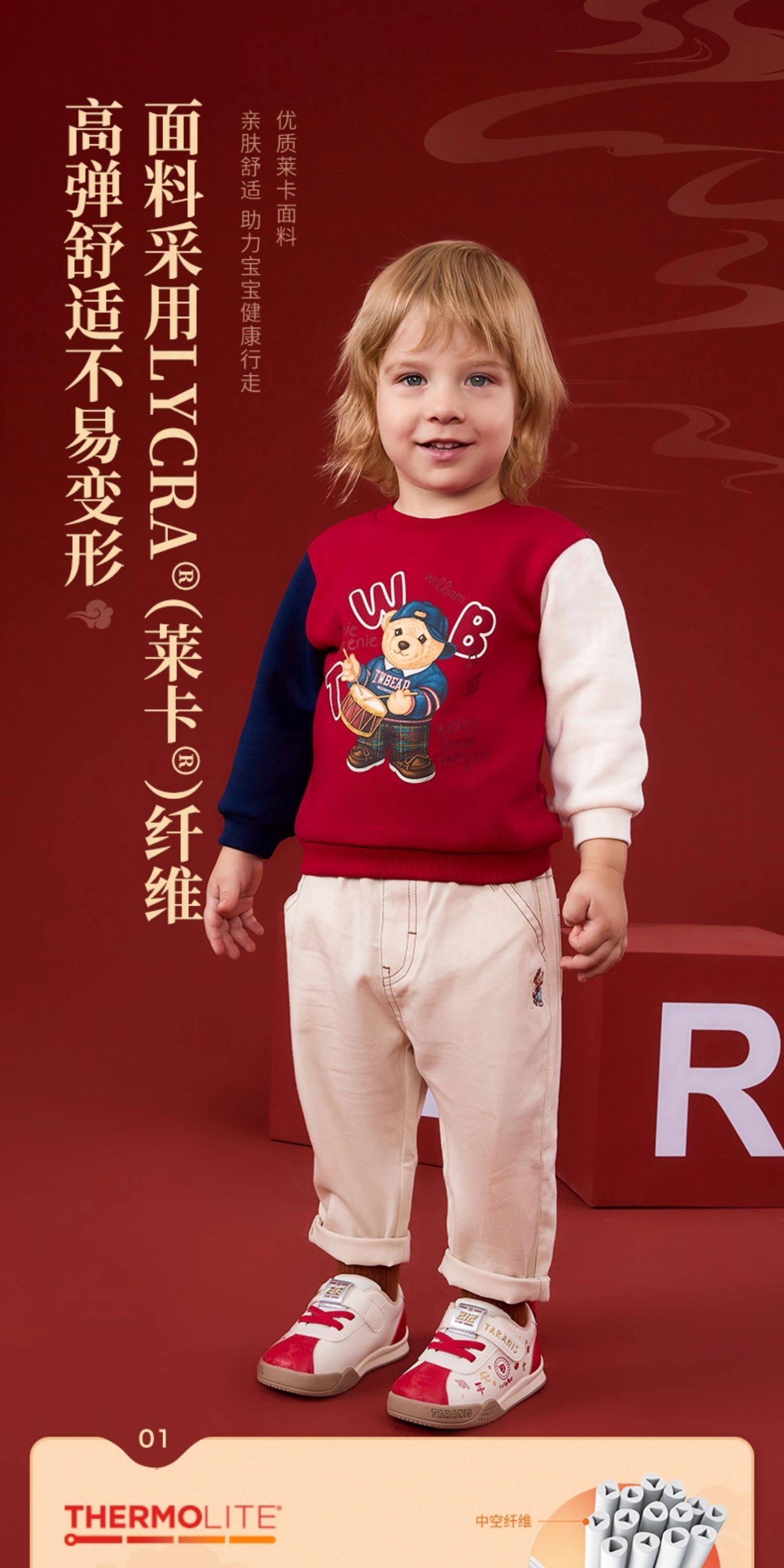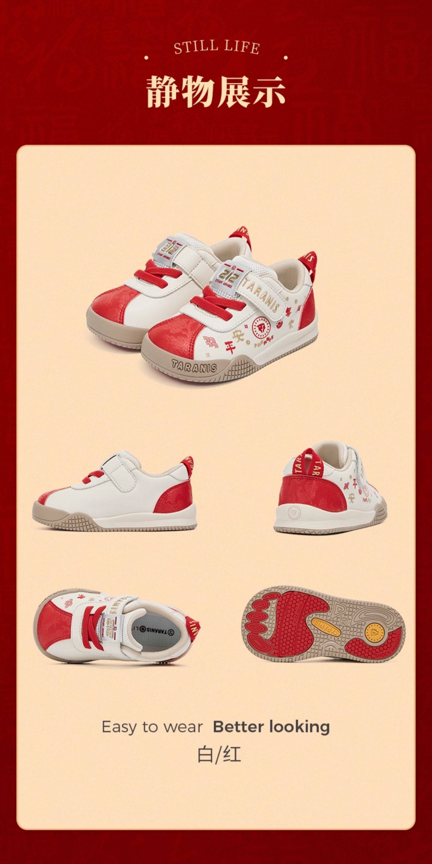 泰兰尼斯学步鞋男宝宝春季新款童鞋新年限定款防滑软底女童面包鞋T01T6A8550