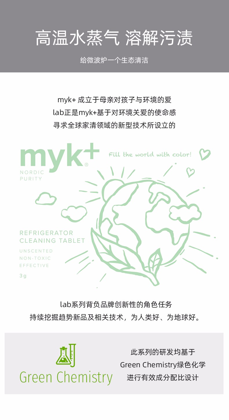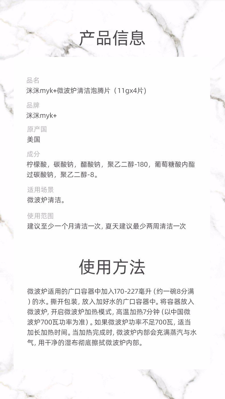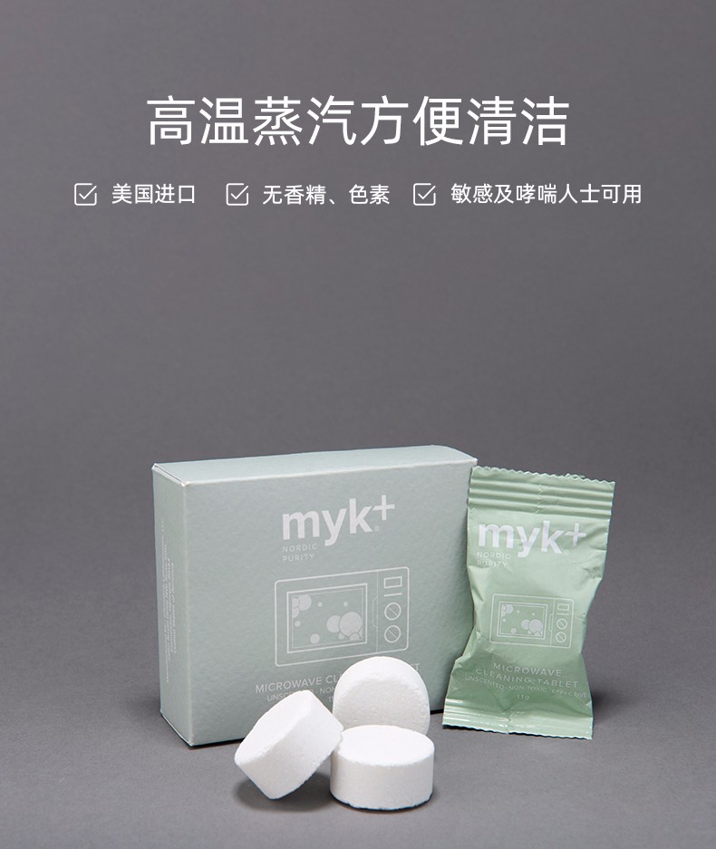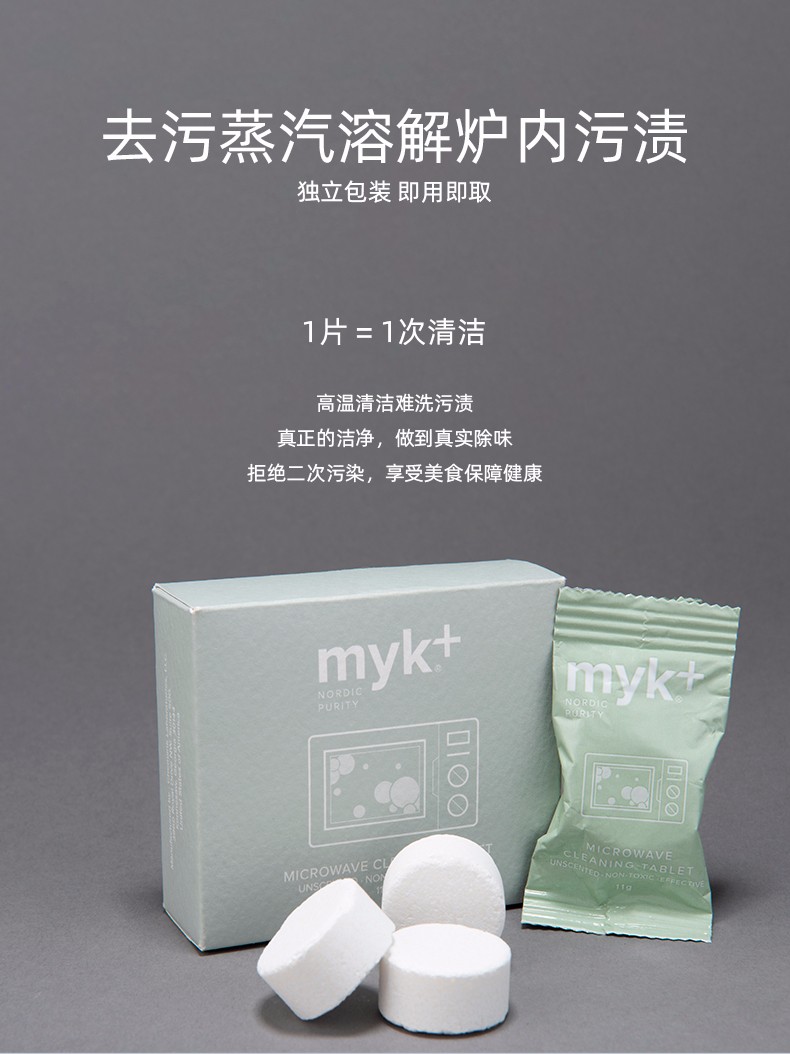 洣洣myk+进口微波炉清洁剂泡腾片专用去油污高温蒸汽去异味神器清洗剂 11gx4【洣洣】
