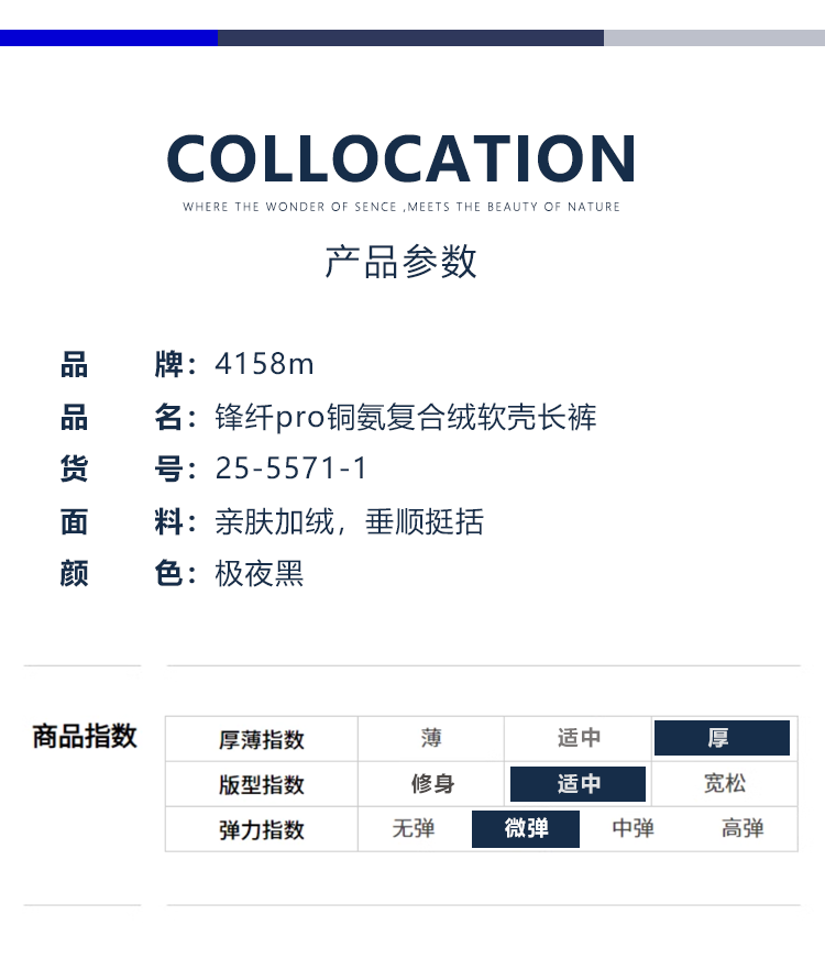 4158m 政企精英 专属定制 锋纤pro铜氨复合绒软壳长裤秋冬加绒裤