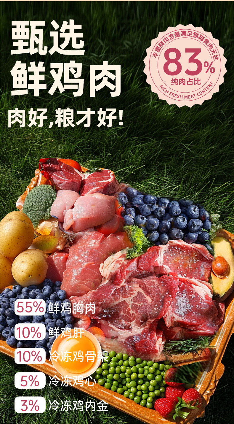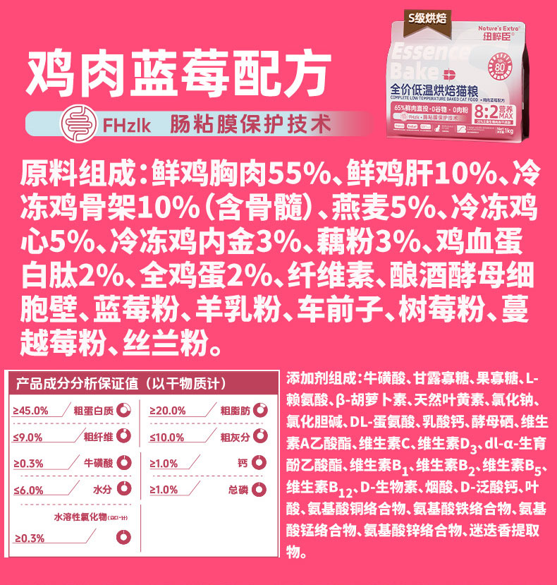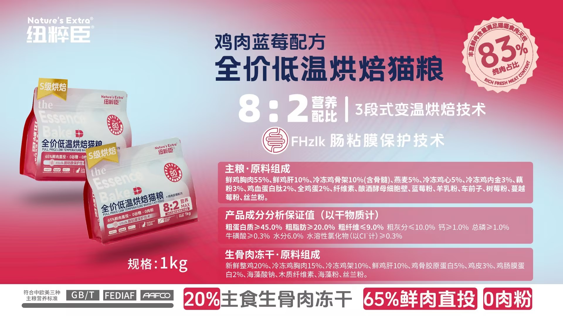 纽粹臣猫粮\狗粮 鸡肉蓝莓配方烘焙主食级冻干双拼粮1kg