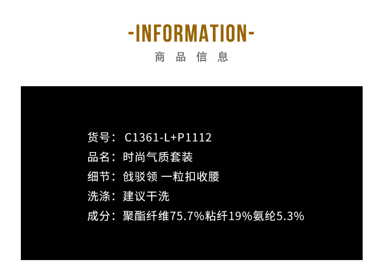 IWY/时尚女总裁套装英伦风高端职业装商务时尚西装气质正装干练工作服C1361-L+P1112