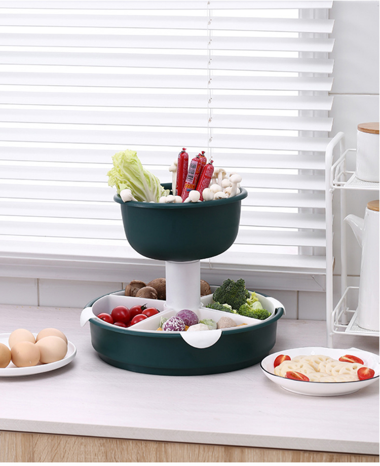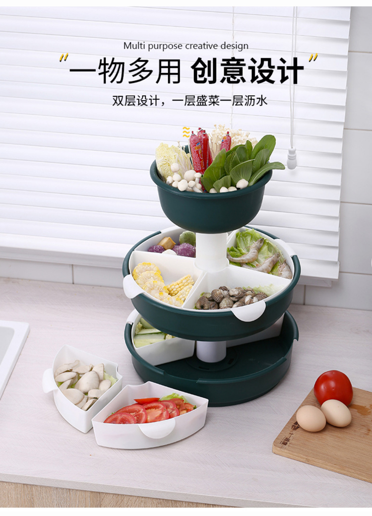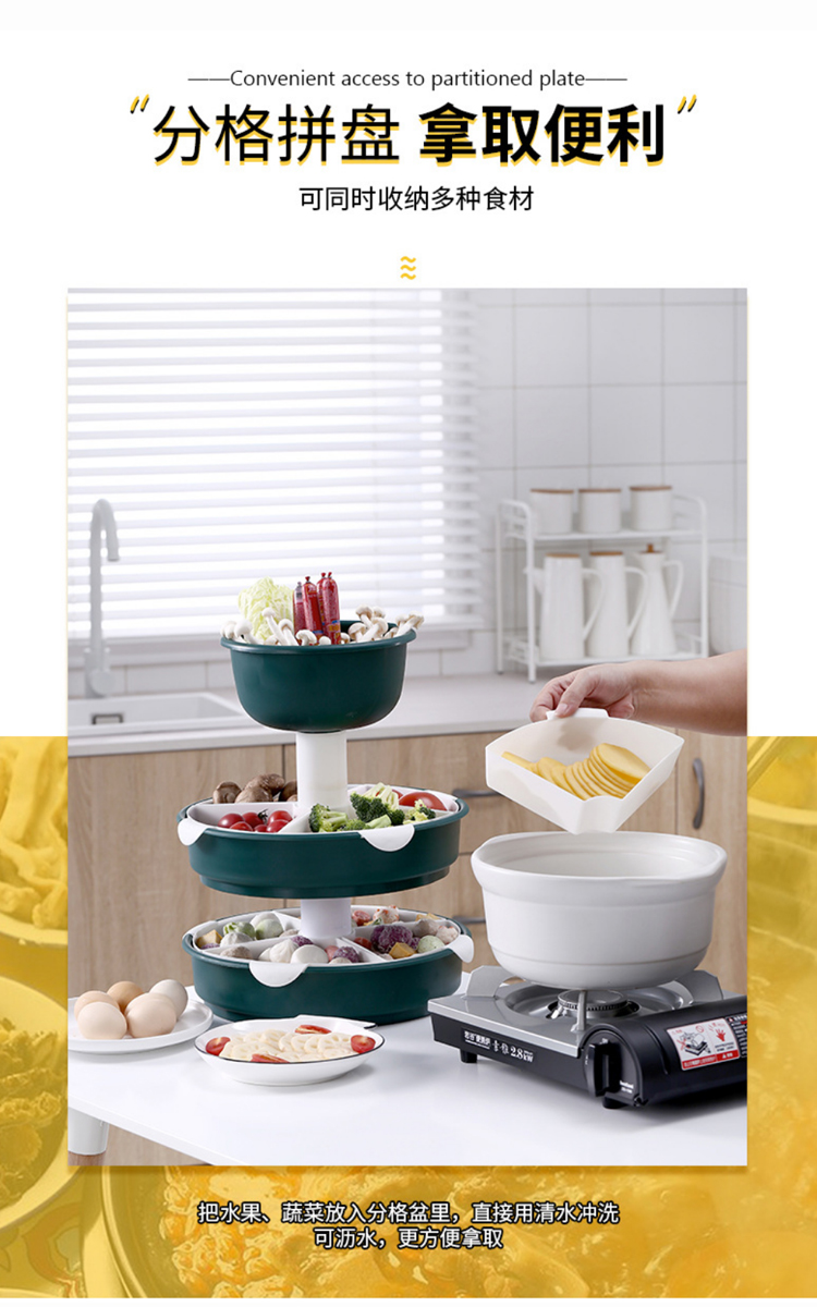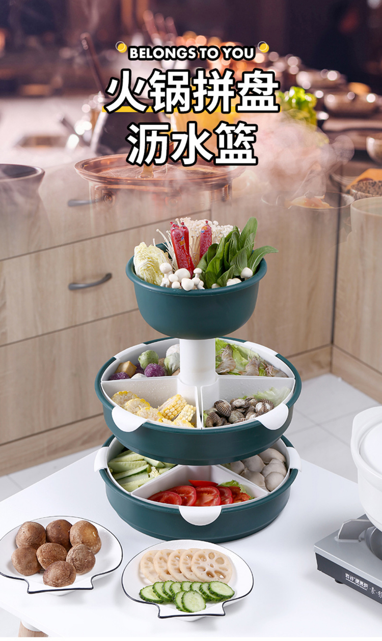 【旋转火锅九宫格】厨房菜盘蔬菜水果拼盘 家用塑料洗菜盆沥水篮水果盘餐具套装
