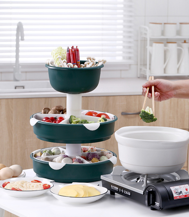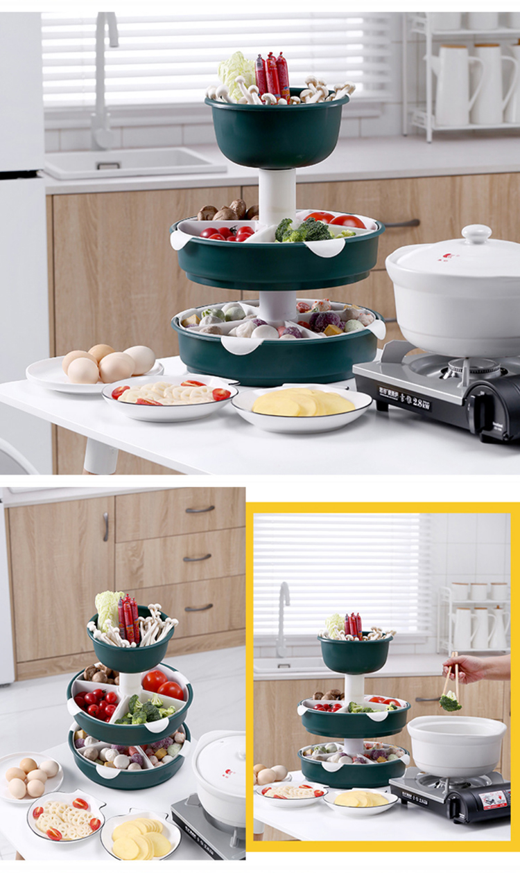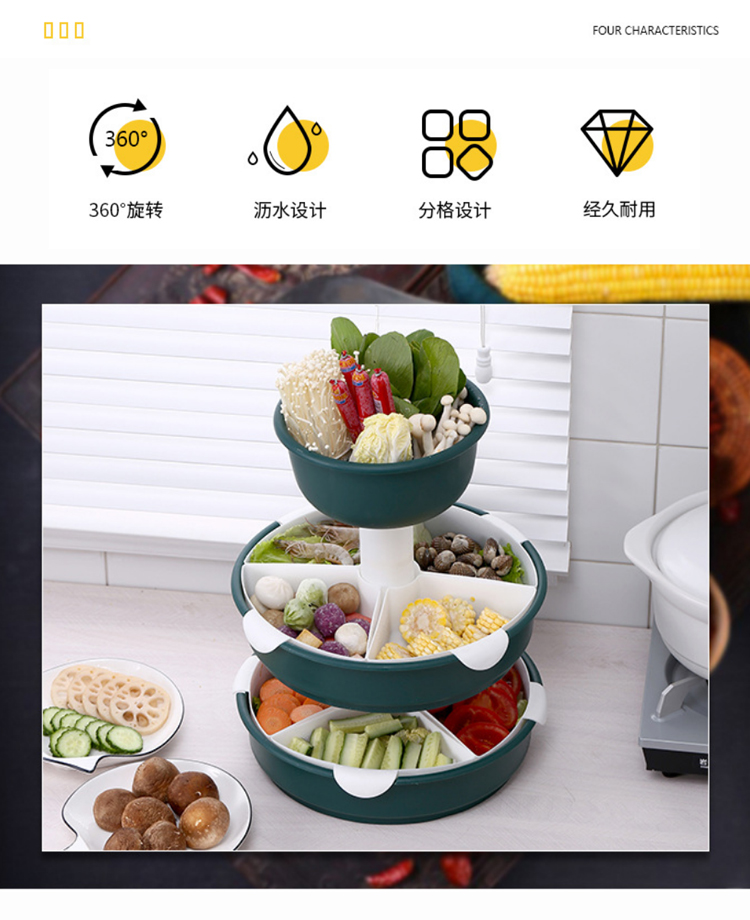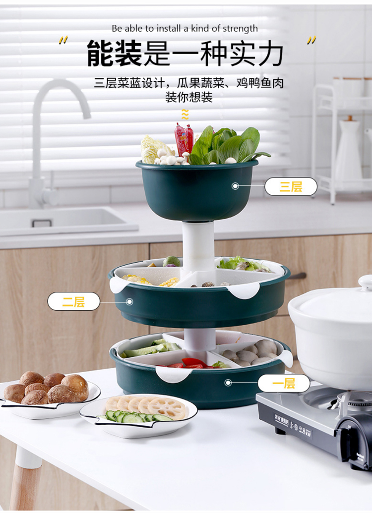 【旋转火锅九宫格】厨房菜盘蔬菜水果拼盘 家用塑料洗菜盆沥水篮水果盘餐具套装