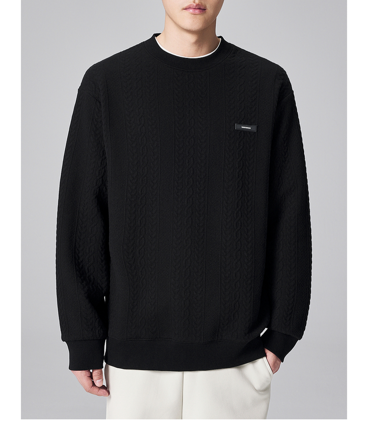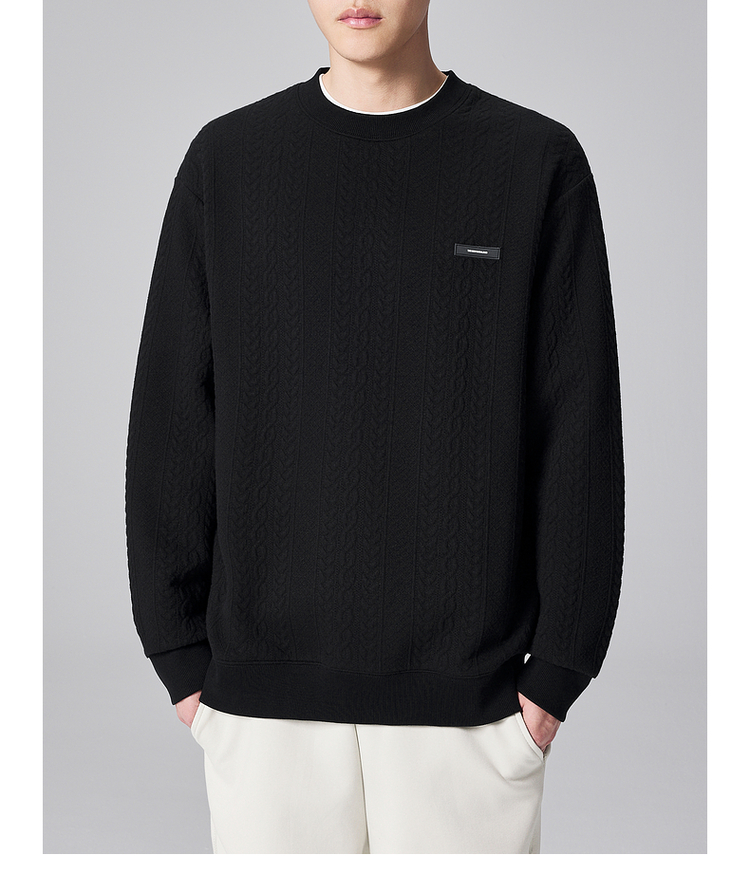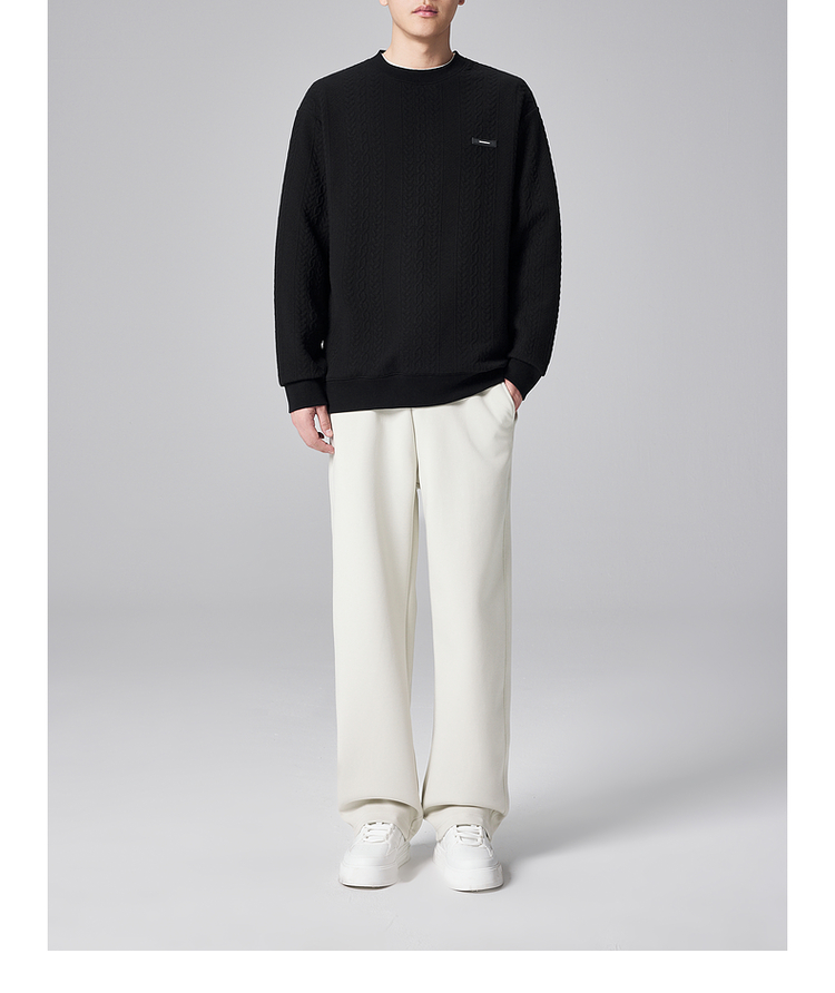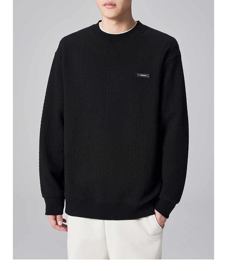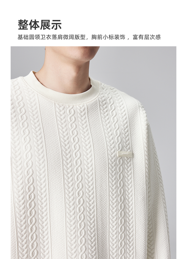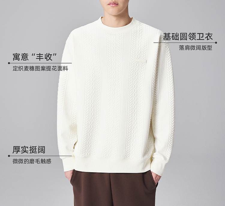 墨麦客男装麦穗提花男士休闲圆领卫衣2024秋季新款宽松微阔外套男