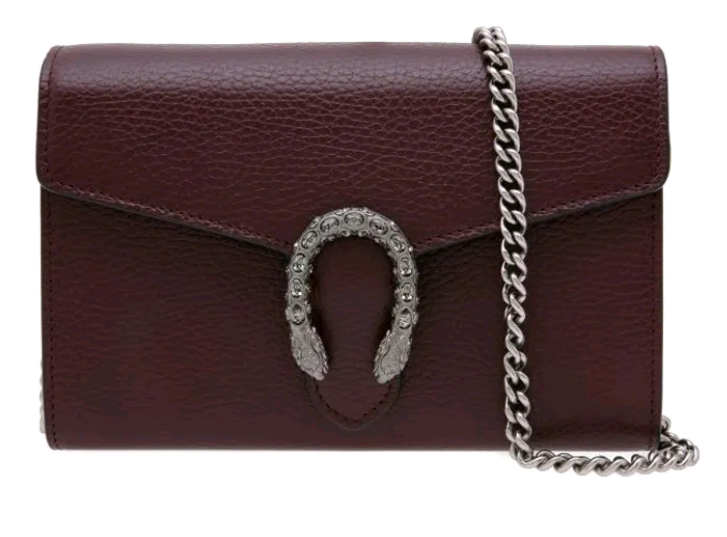 GUCCI古驰 Dionysus 酒神 虎头扣链条 皮革 钱包斜挎单肩包 迷你 女款深酒红色