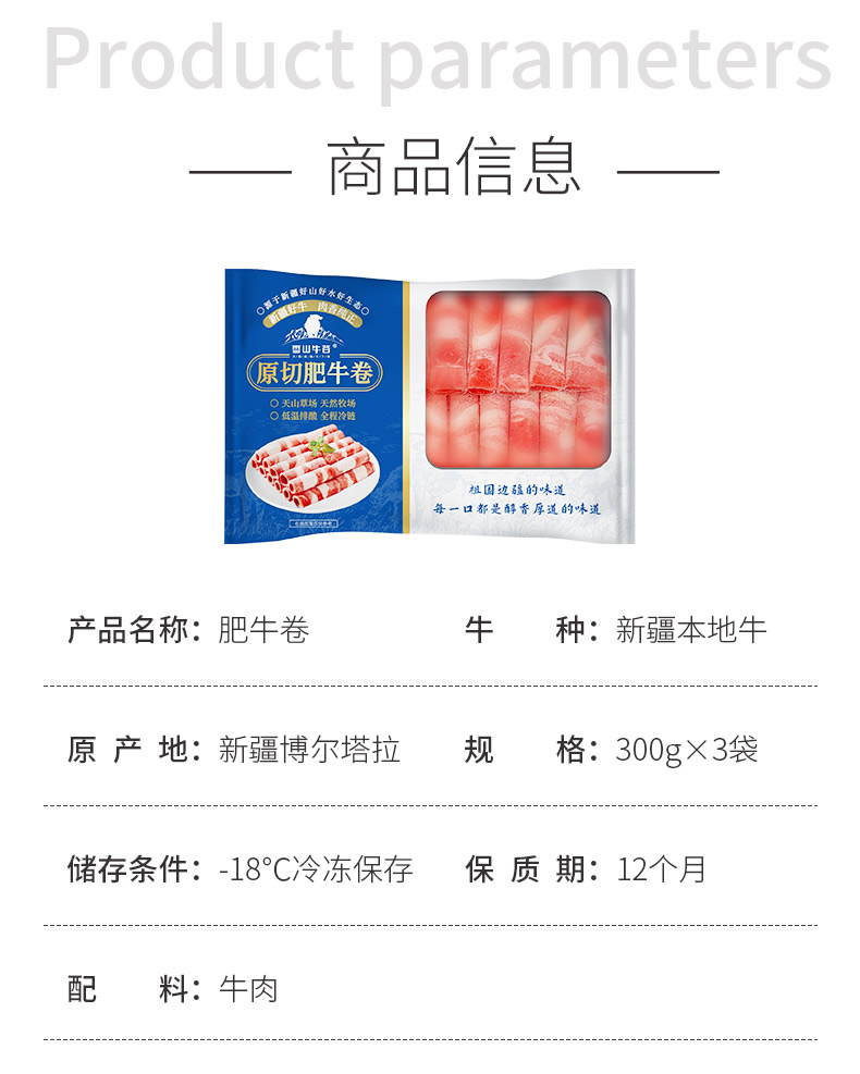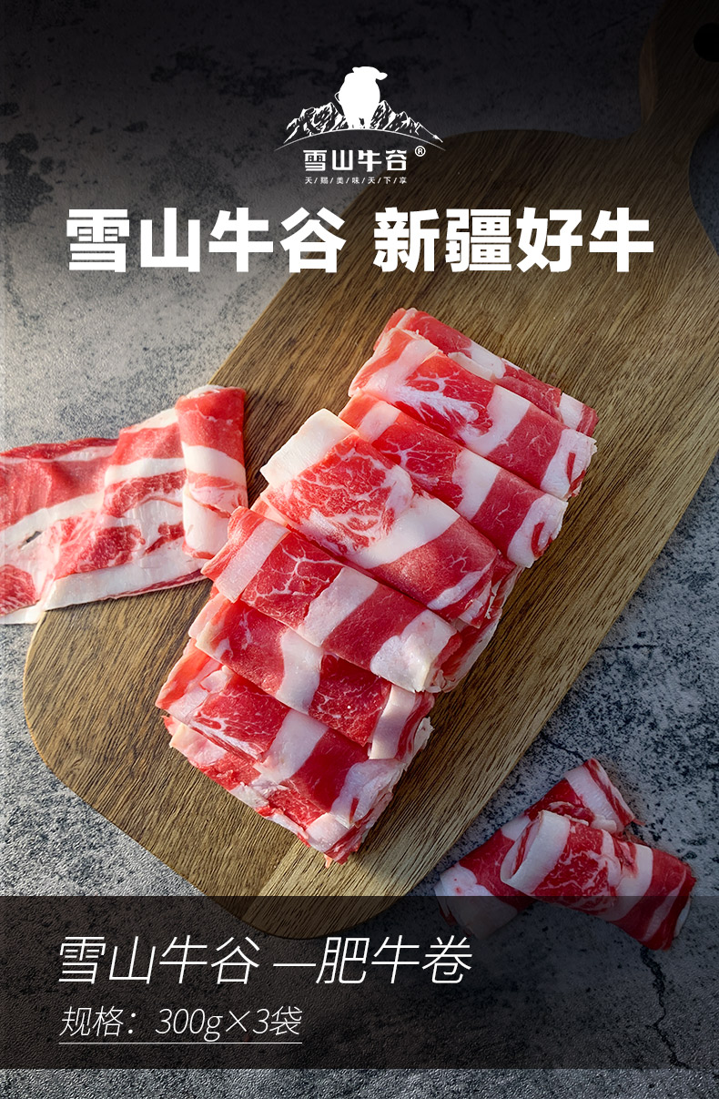 【雪山牛谷】国产新疆原切肥牛卷300g*3袋火锅好食材