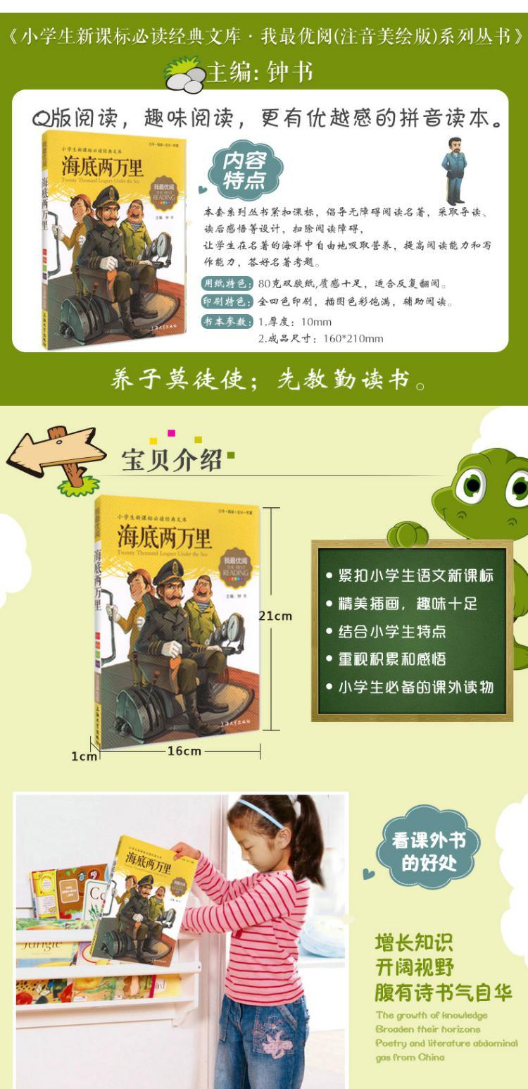 1-3年级适用 注音美绘版-海底两万里 钟书正版少儿读物我优阅系列拼音彩图版海底两万里 儿童文学课外读物小学生作文阅读写作能力