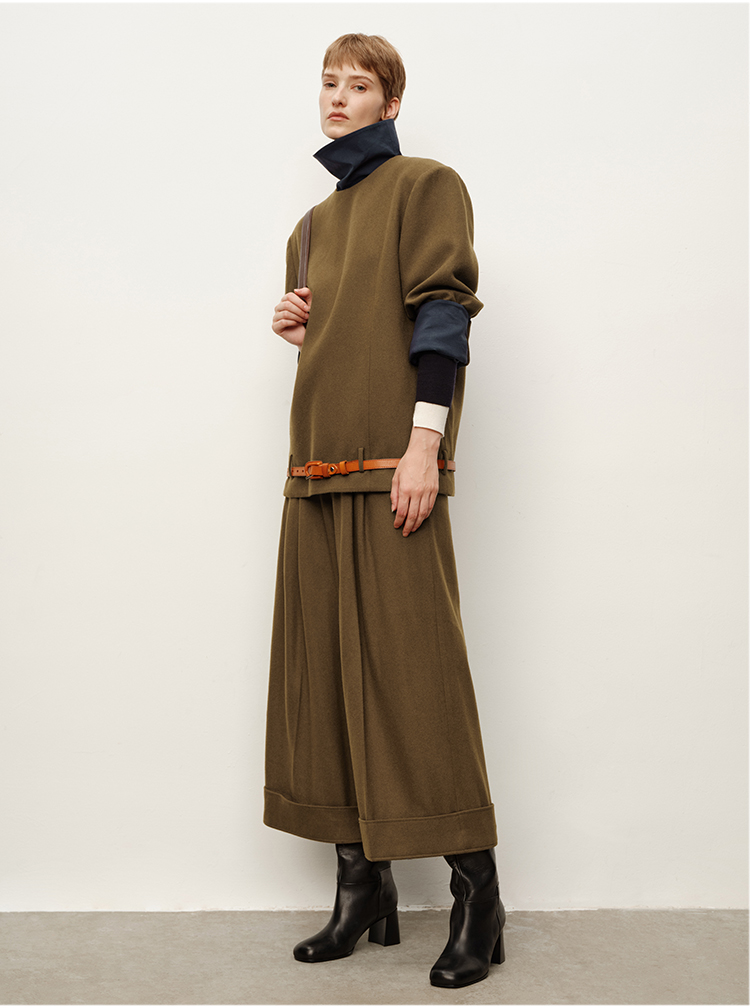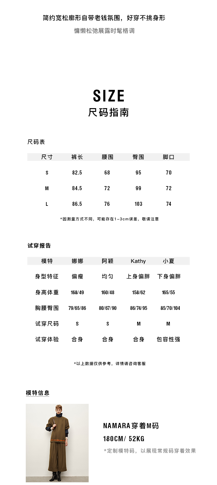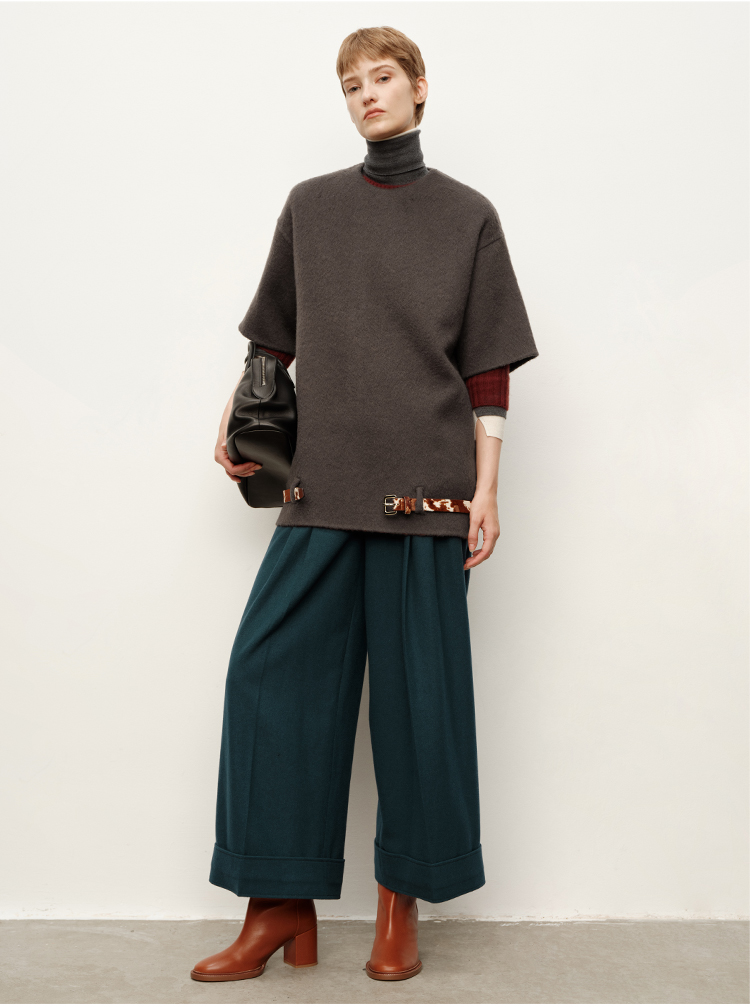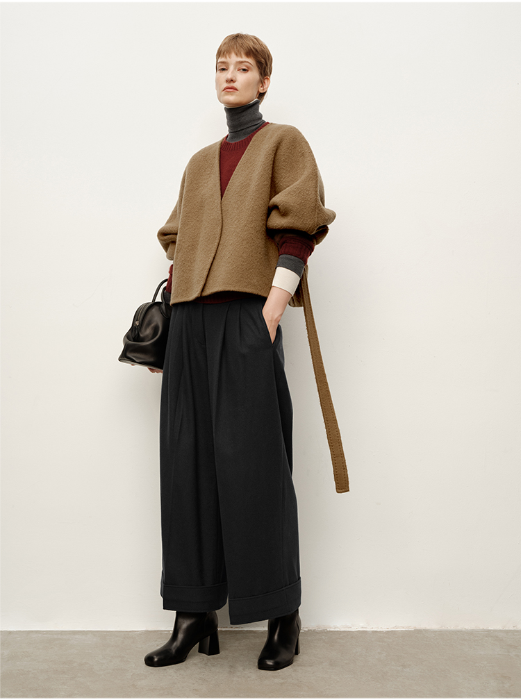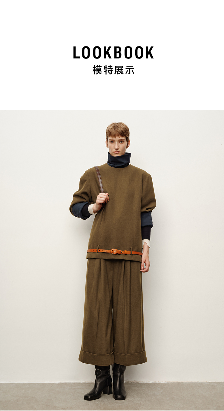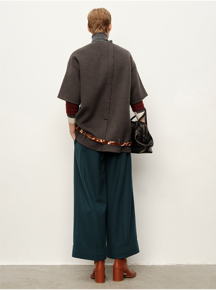 HIDEMI 进口绵羊毛宽边卷边加厚阔腿九分裤靴裤 宝石蓝