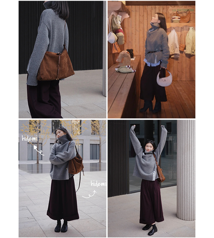 HIDEMI 纸片人超显瘦针织套装 高领背心/喇叭裤