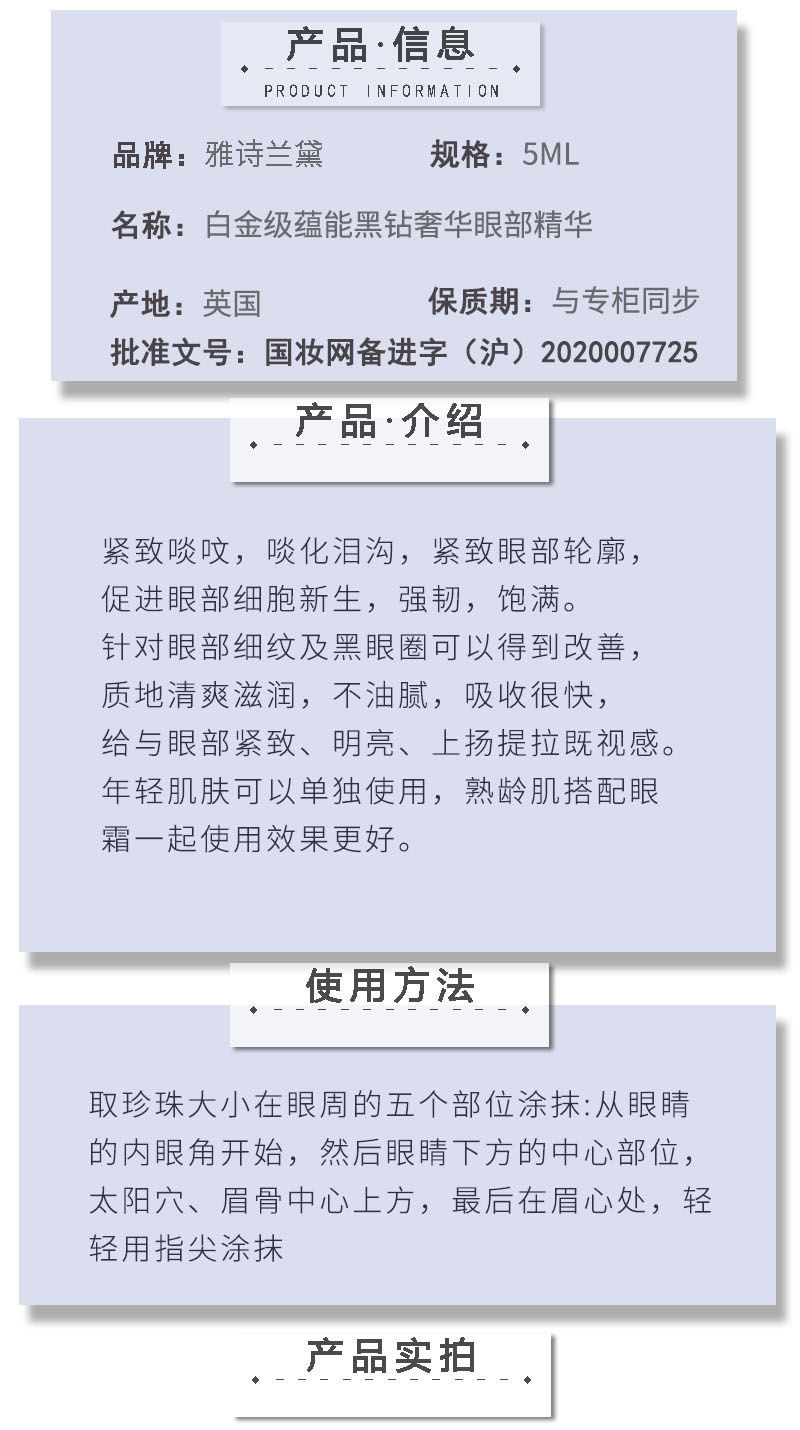 【爆款超低价预售 急单慎拍】雅诗兰黛白金级蕴能黑钻奢华眼部精华5ml 小样0.5ml眼部淡化细纹