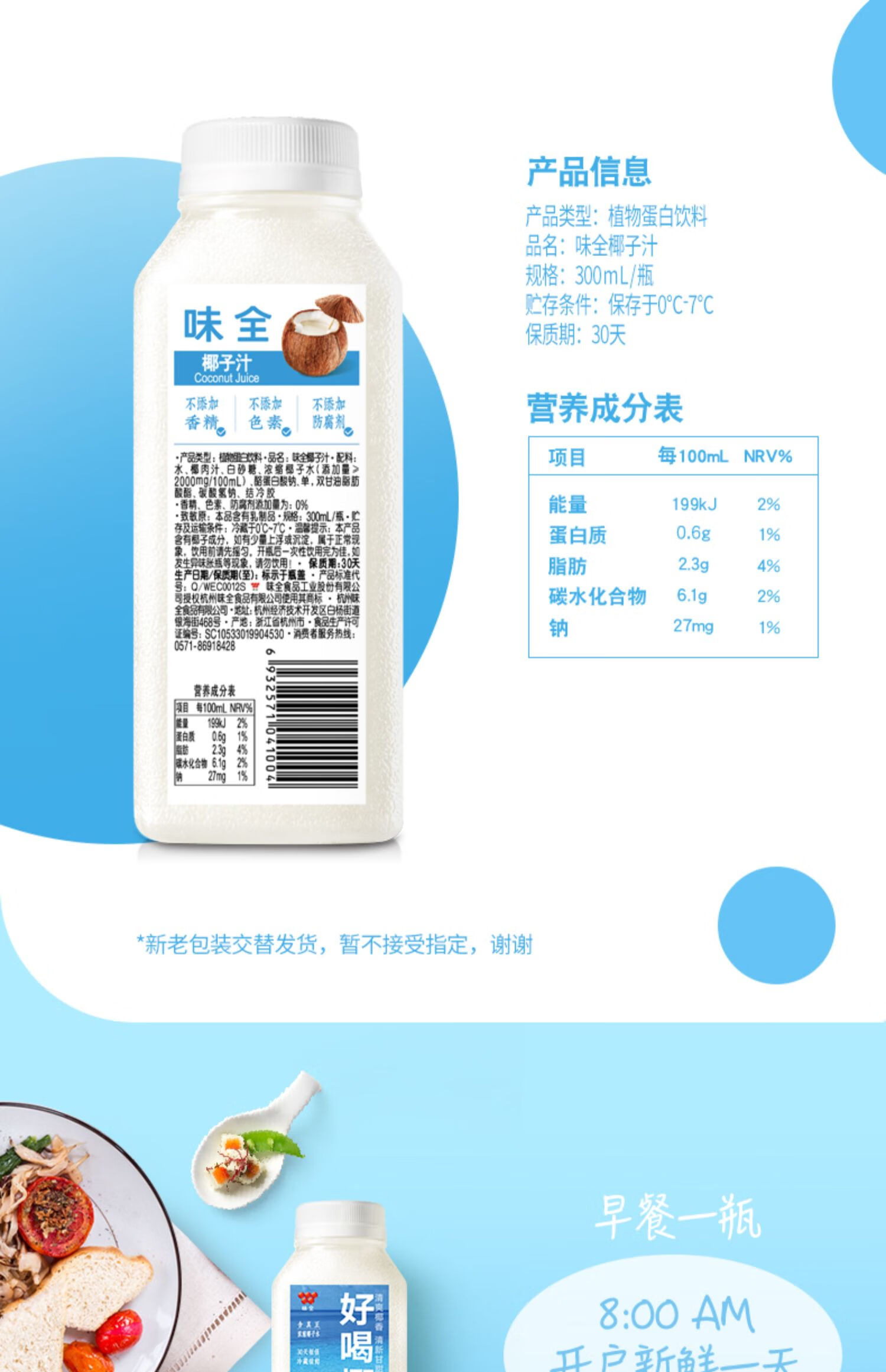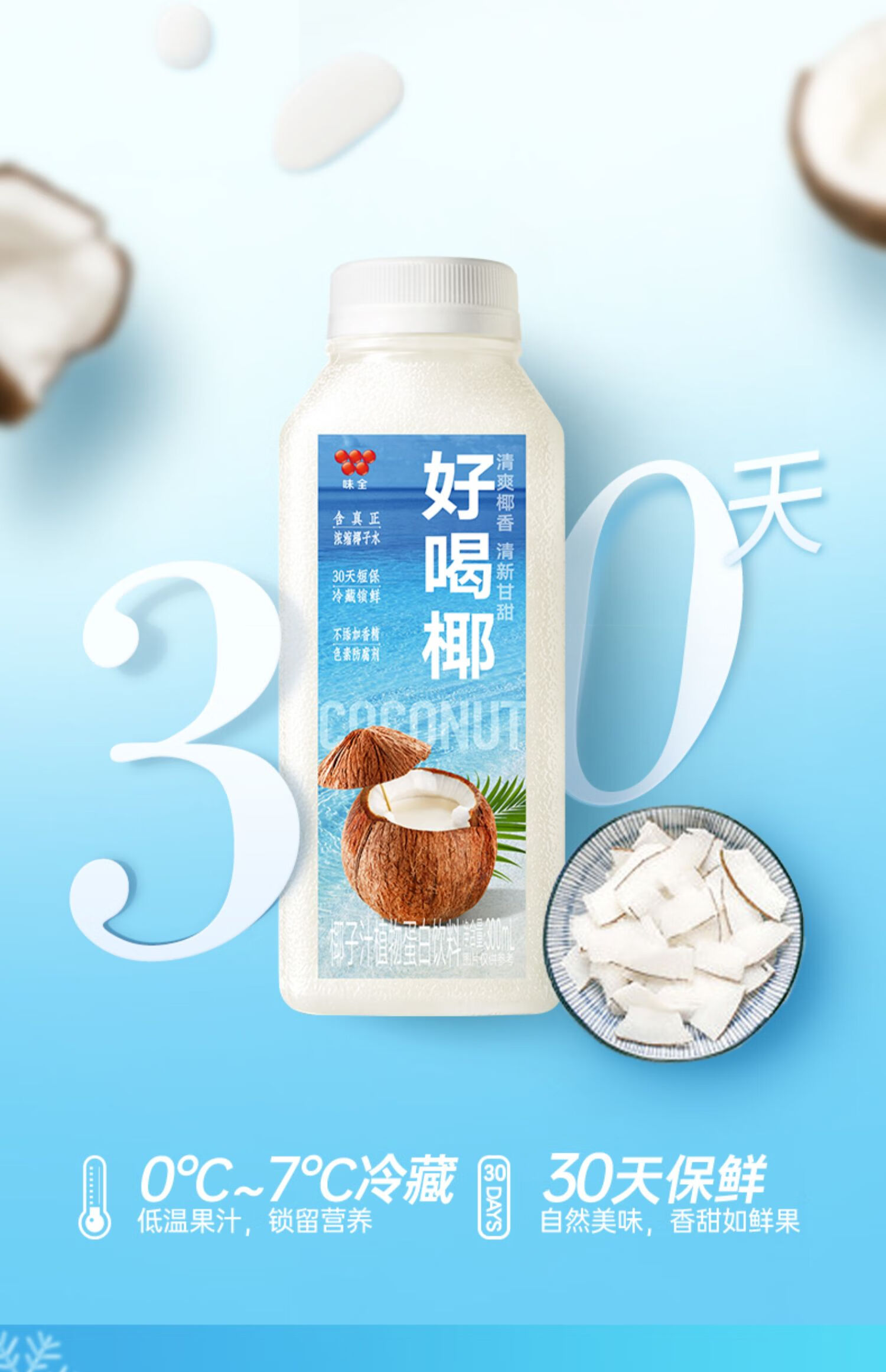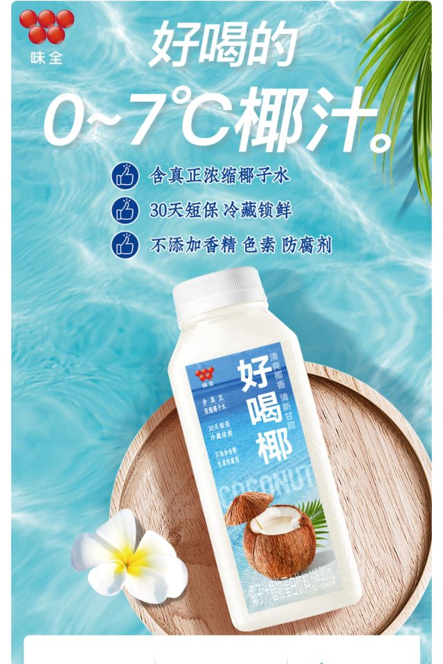 味全 好喝椰 椰子汁 冷藏植物蛋白饮料 300ml/瓶
