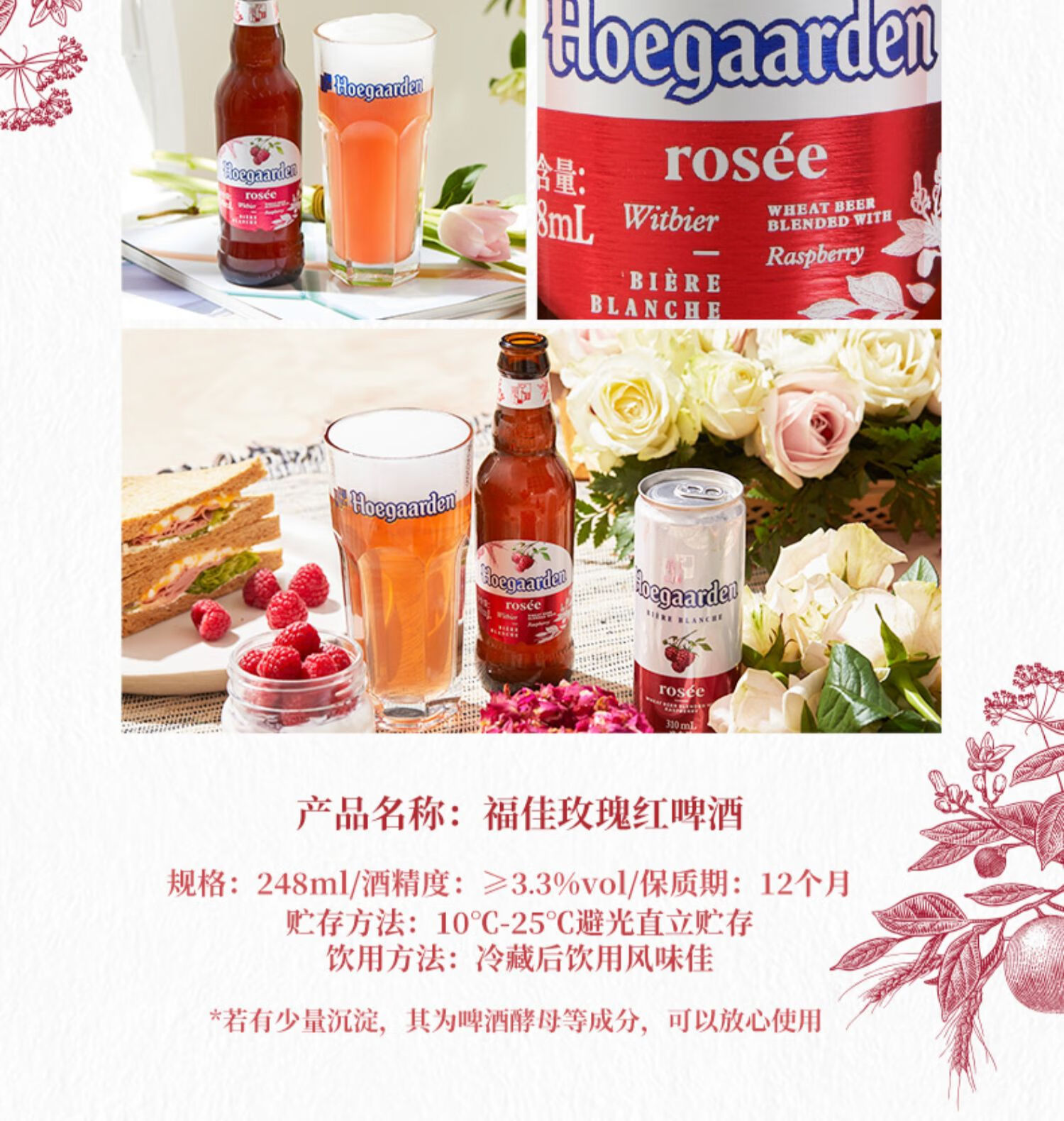 福佳玫瑰红啤酒10°P(国产)瓶装248ml 1瓶 比利时风味