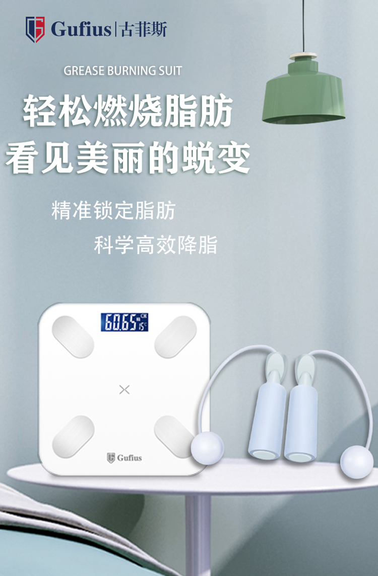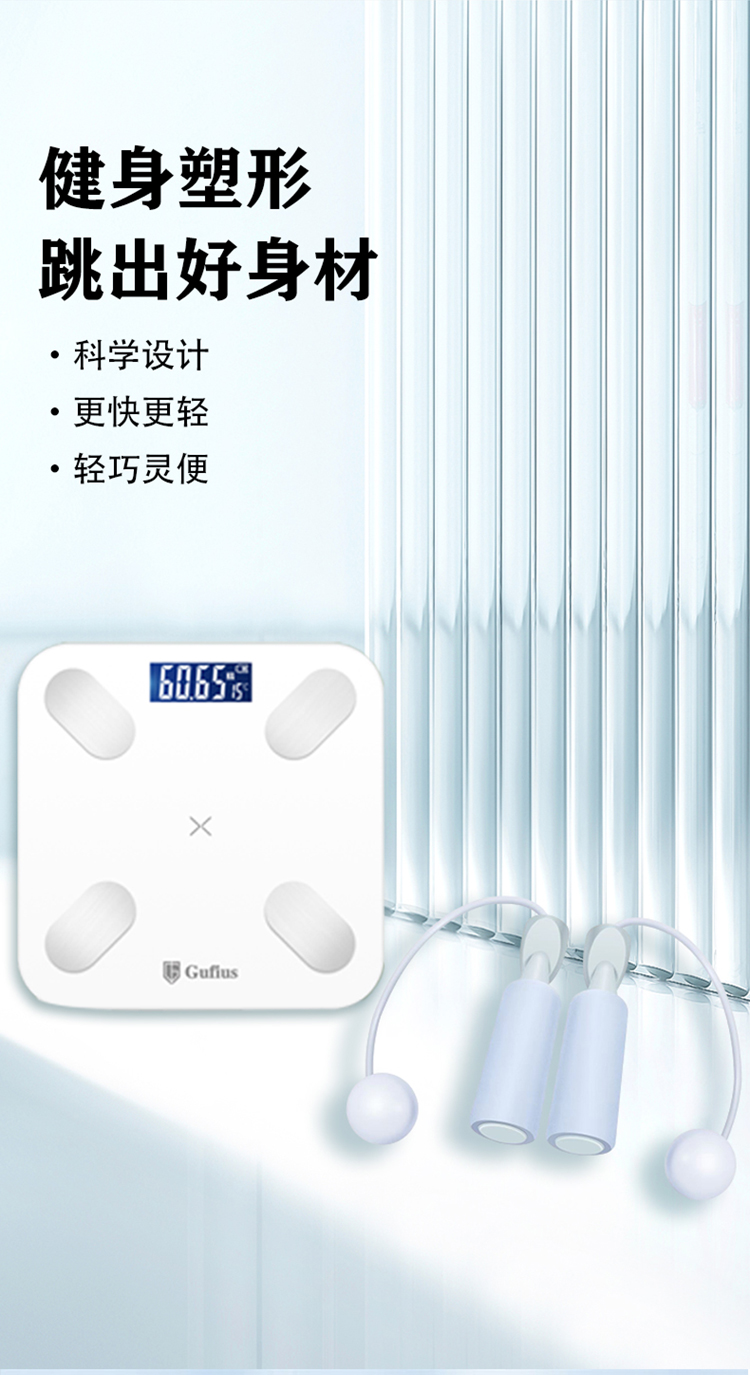 古菲斯(GUFIUS)智能体脂秤家用电子秤+跳绳健身燃脂S1套装