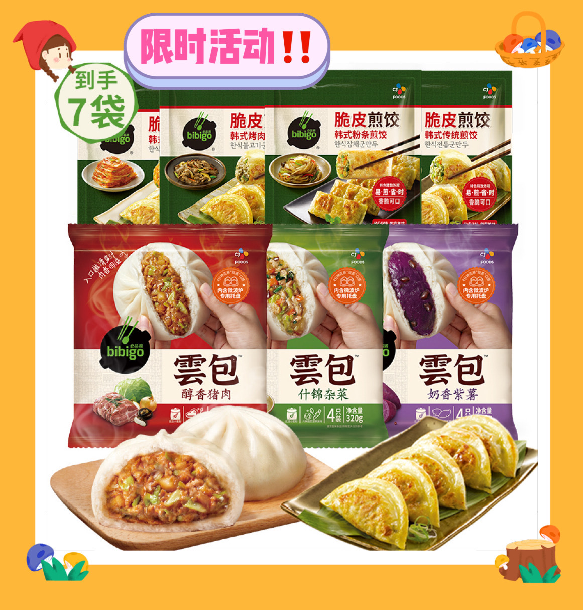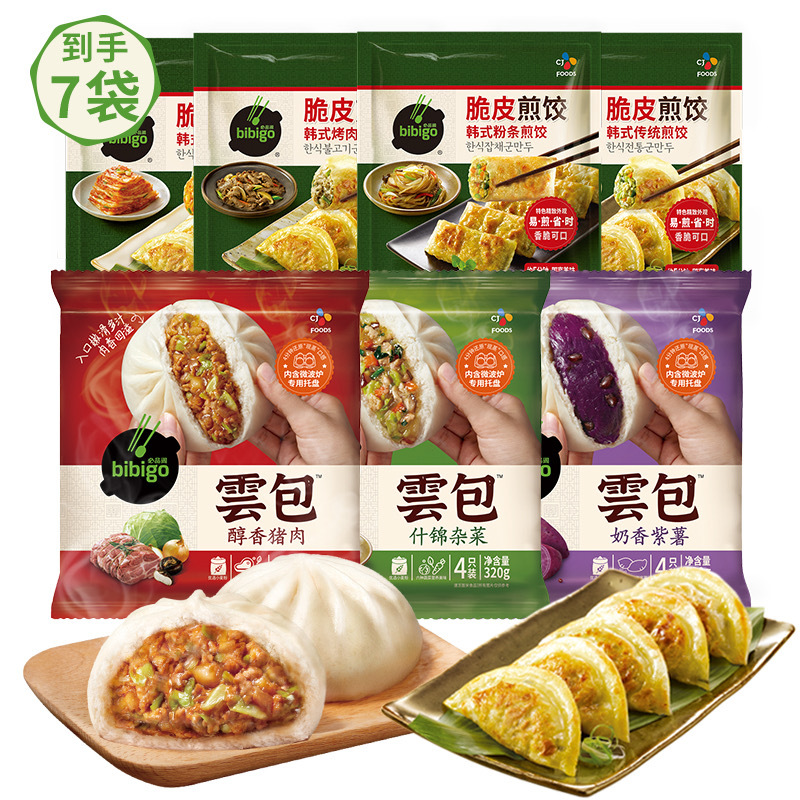 早餐只需3分钟,可蒸可烤可微波🥟 6送1🉐️7袋👉必品阁/bibigo🆕新品上市☁雲包+🔥爆款煎饺🥟限时多送1⃣️袋250g煎饺🥟