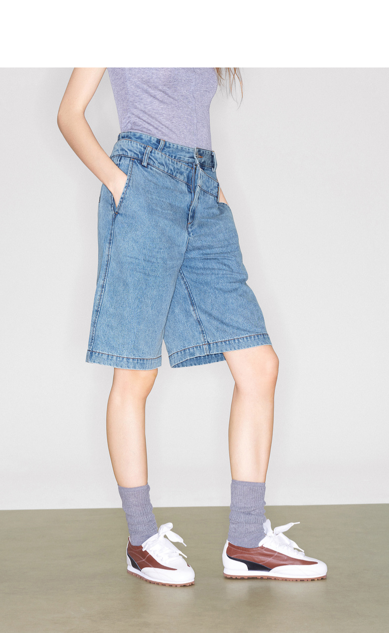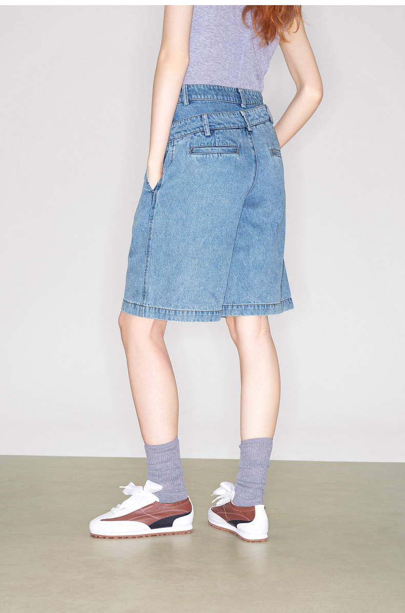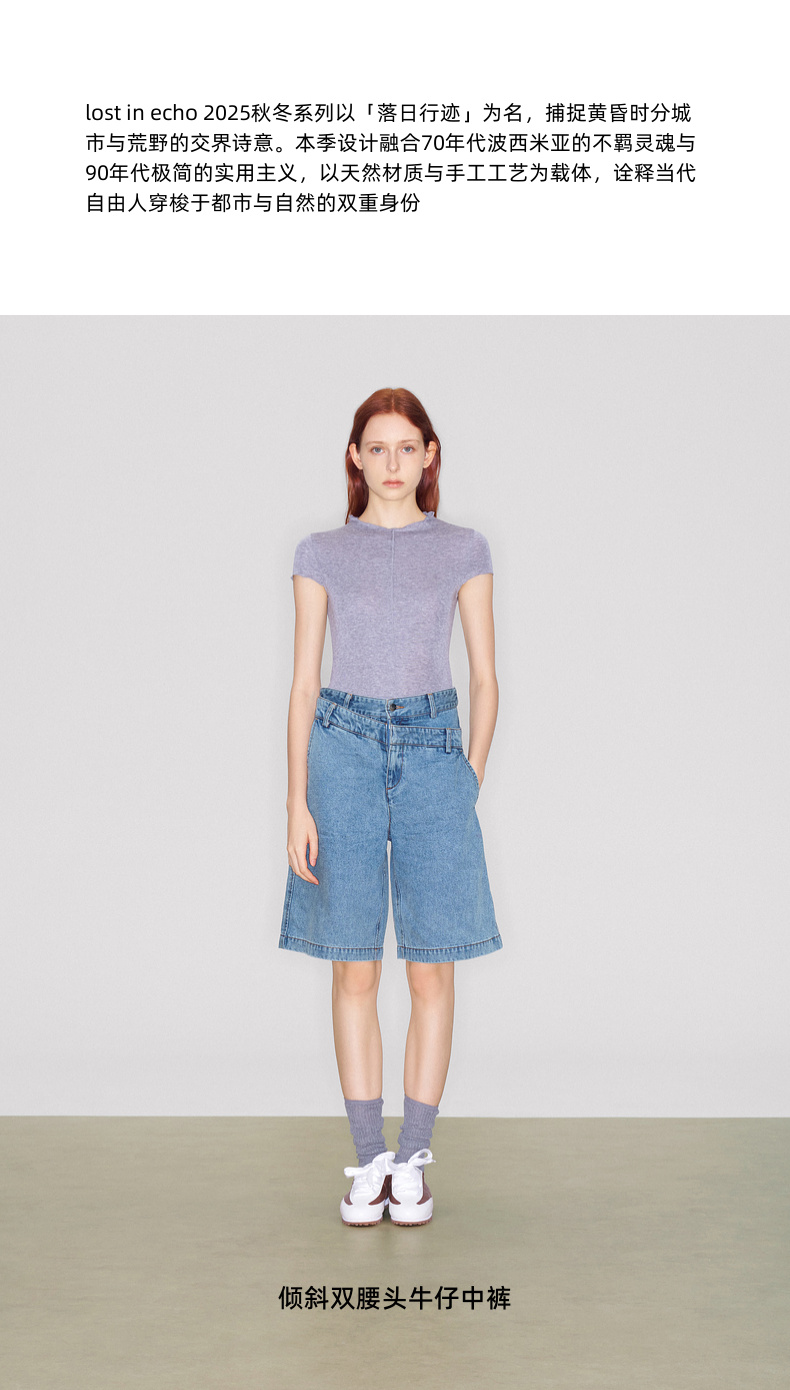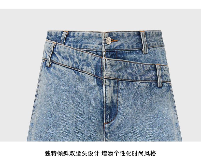 lost in echo2025秋冬新款宽松直筒个性双腰头百搭牛仔阔腿中裤女