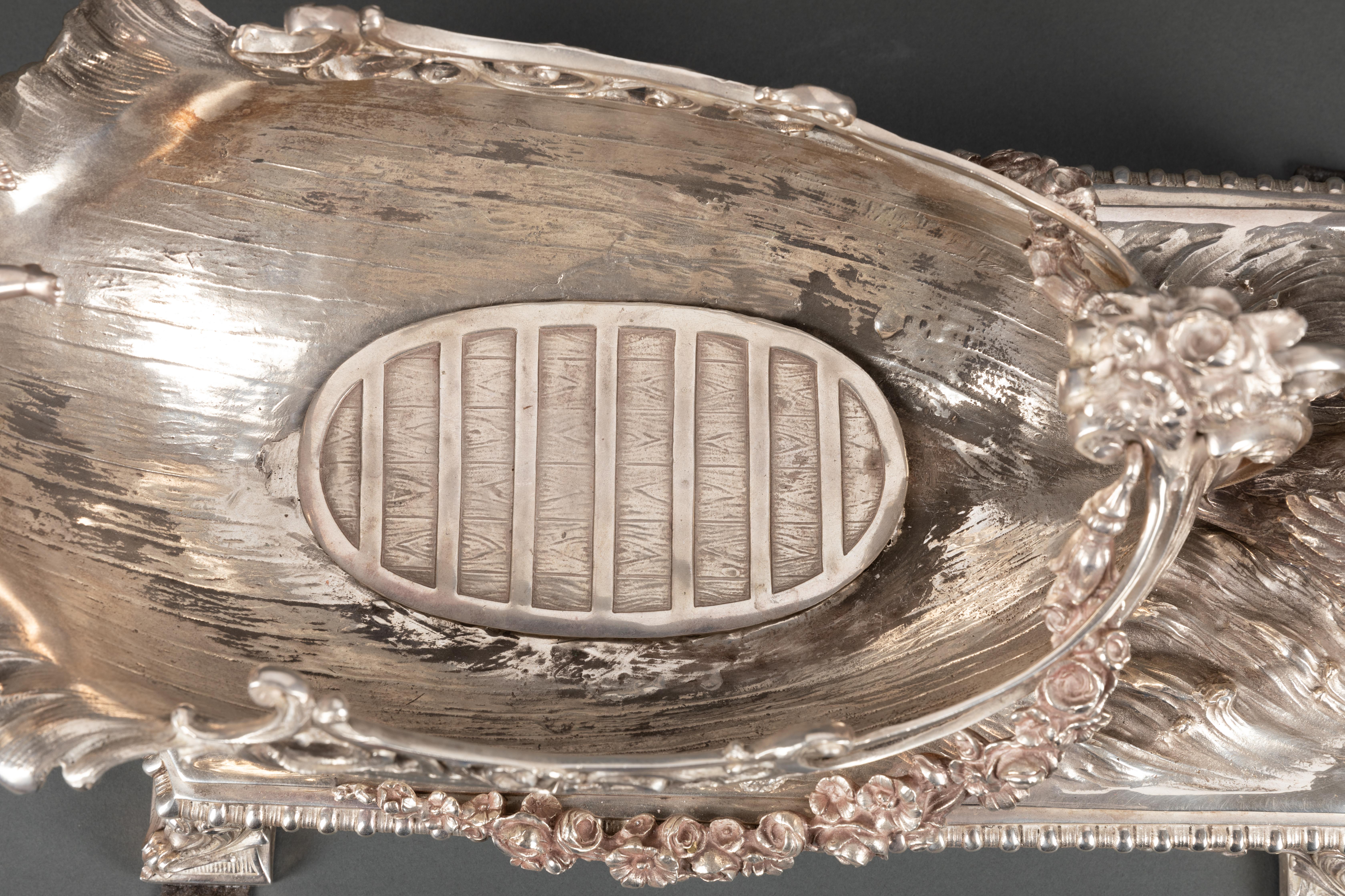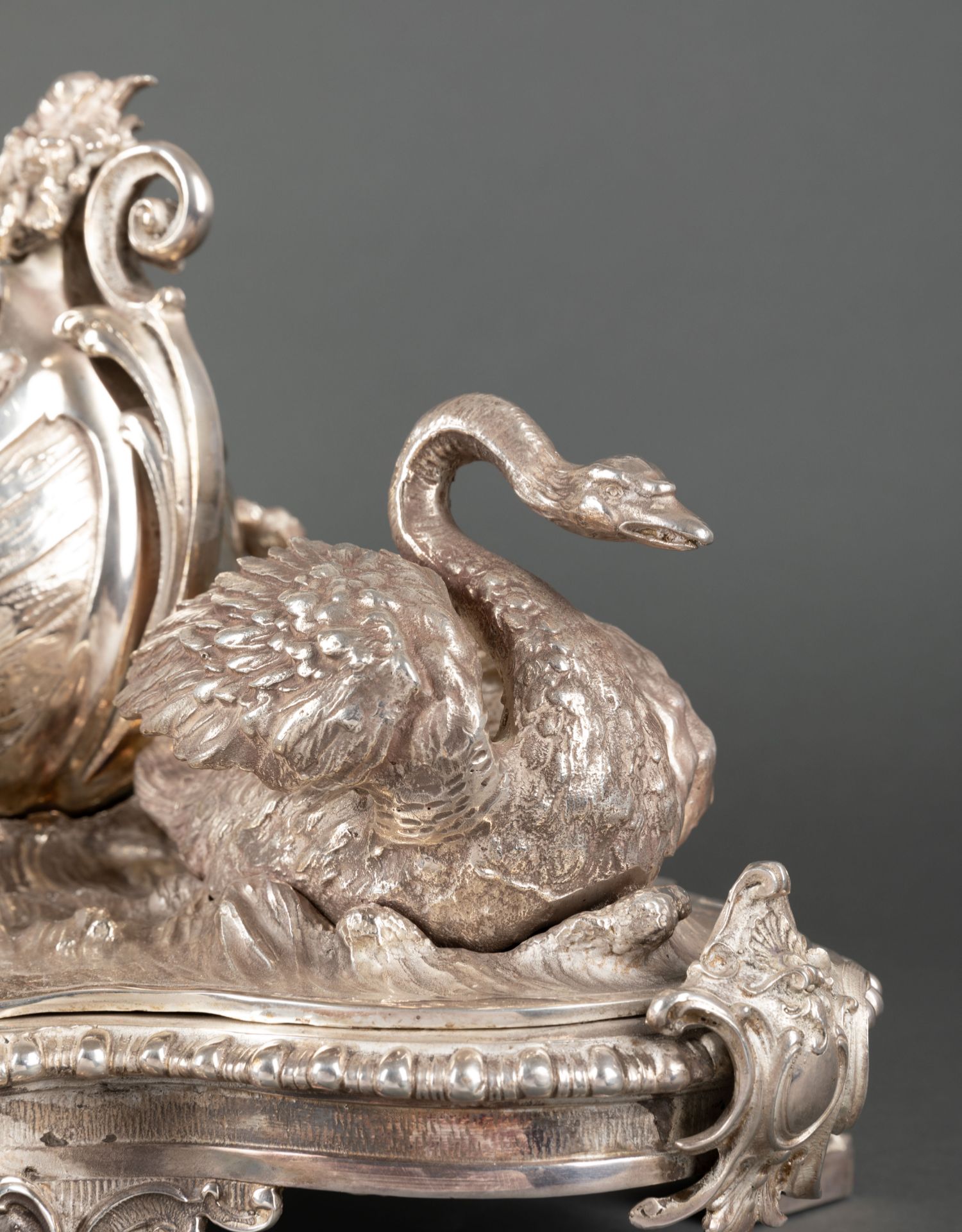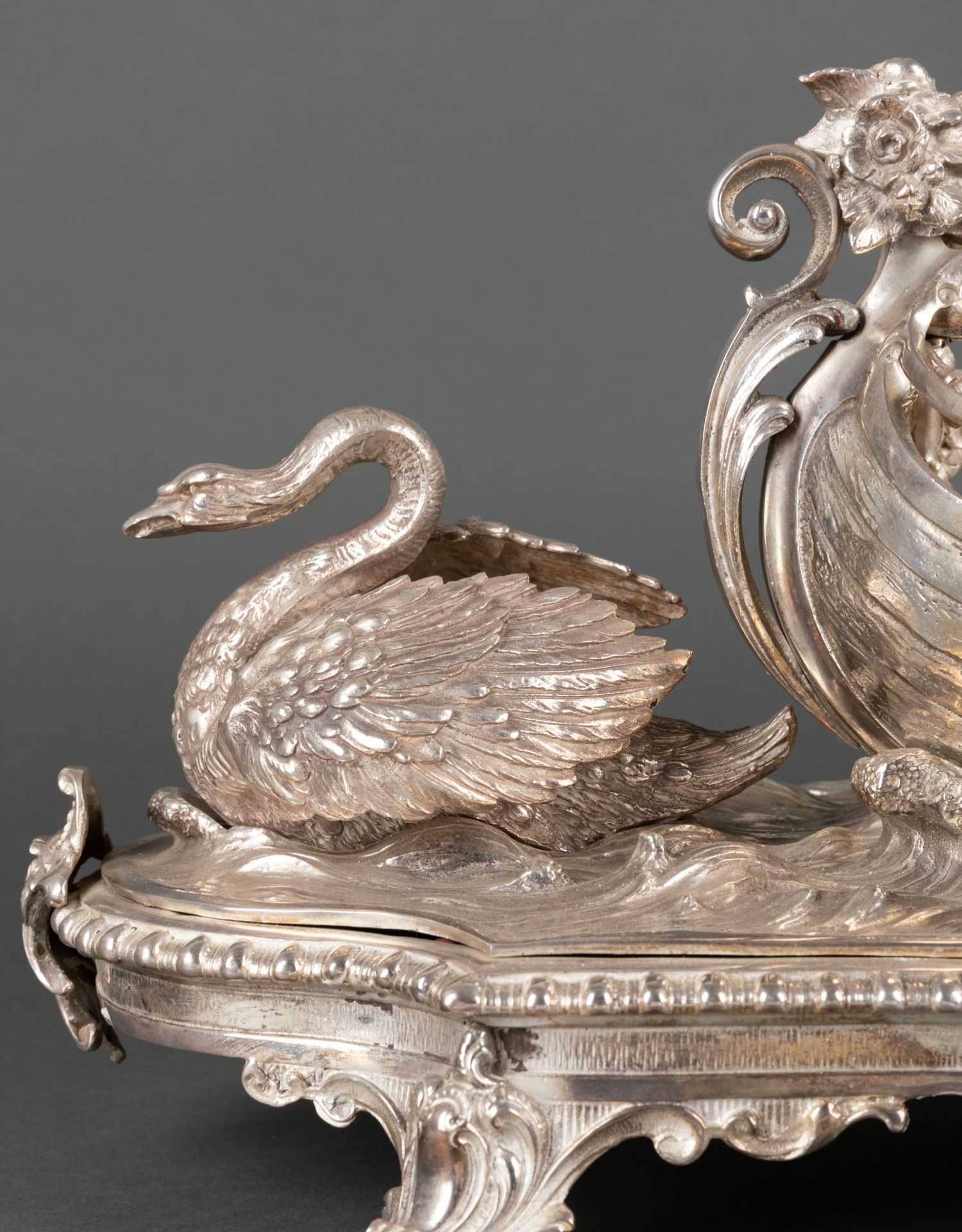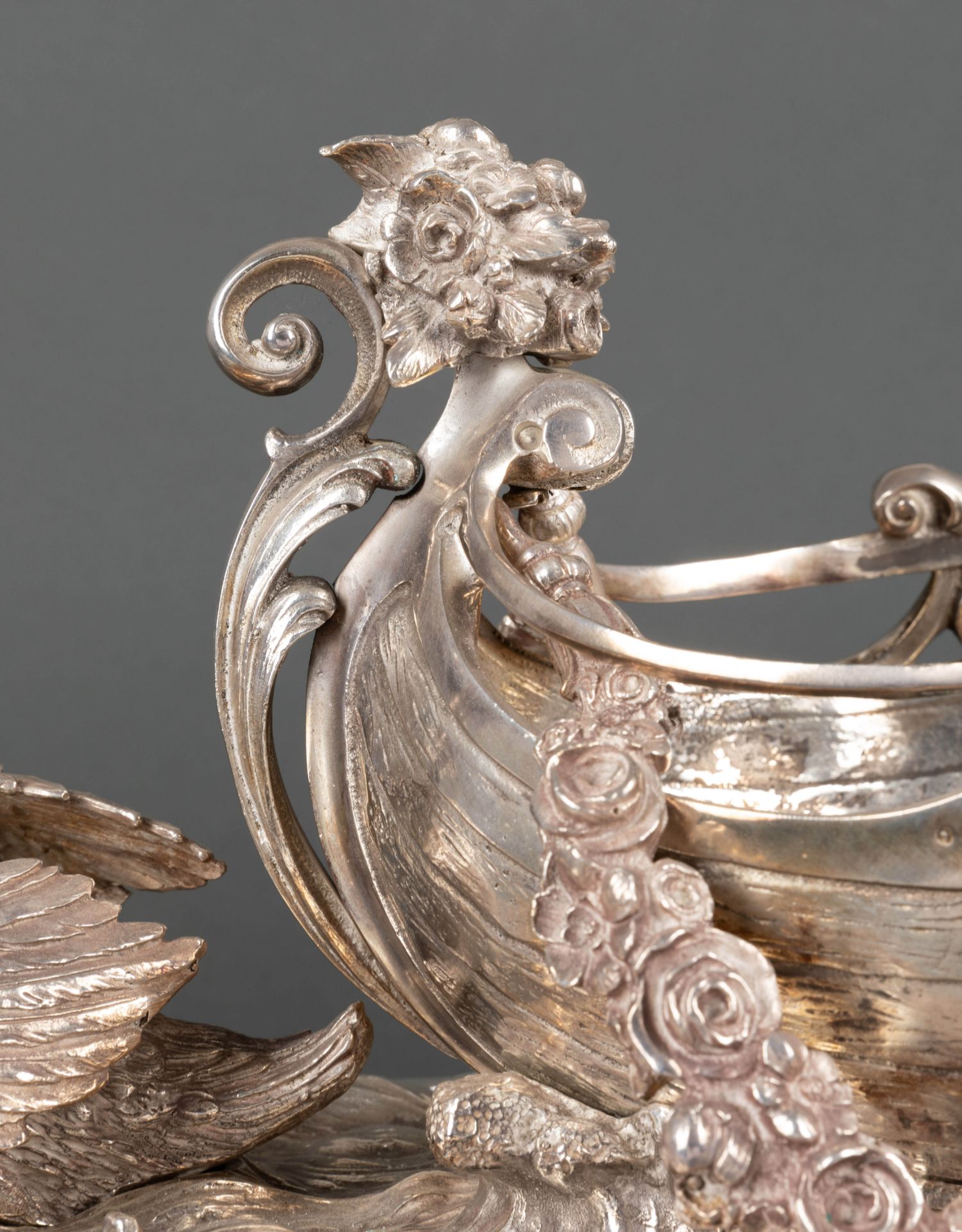 独角鹿西洋古董银器摆件19世纪法国出品天鹅游船主题铜镀银酒瓶架