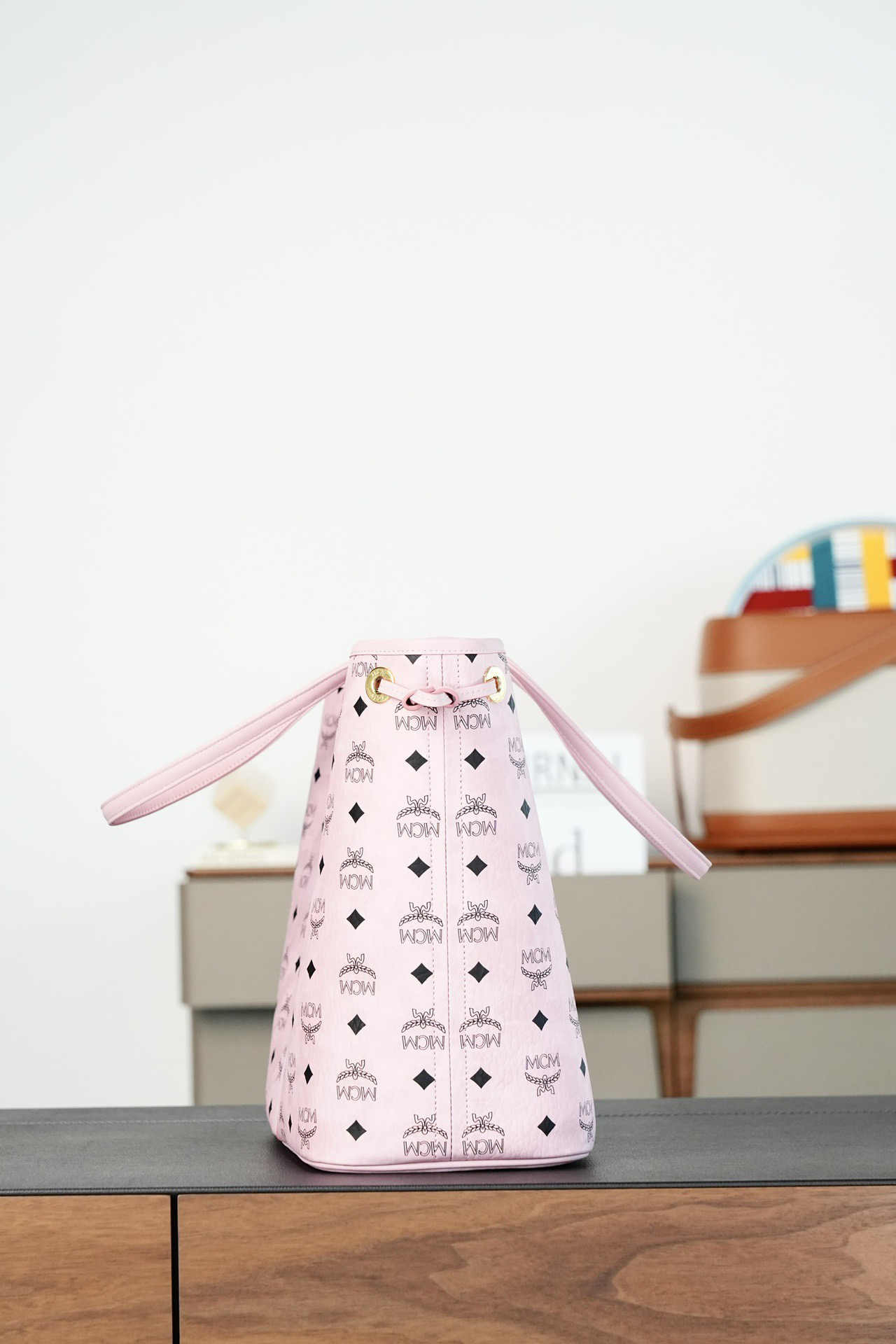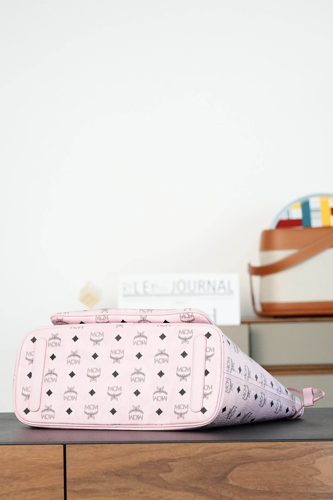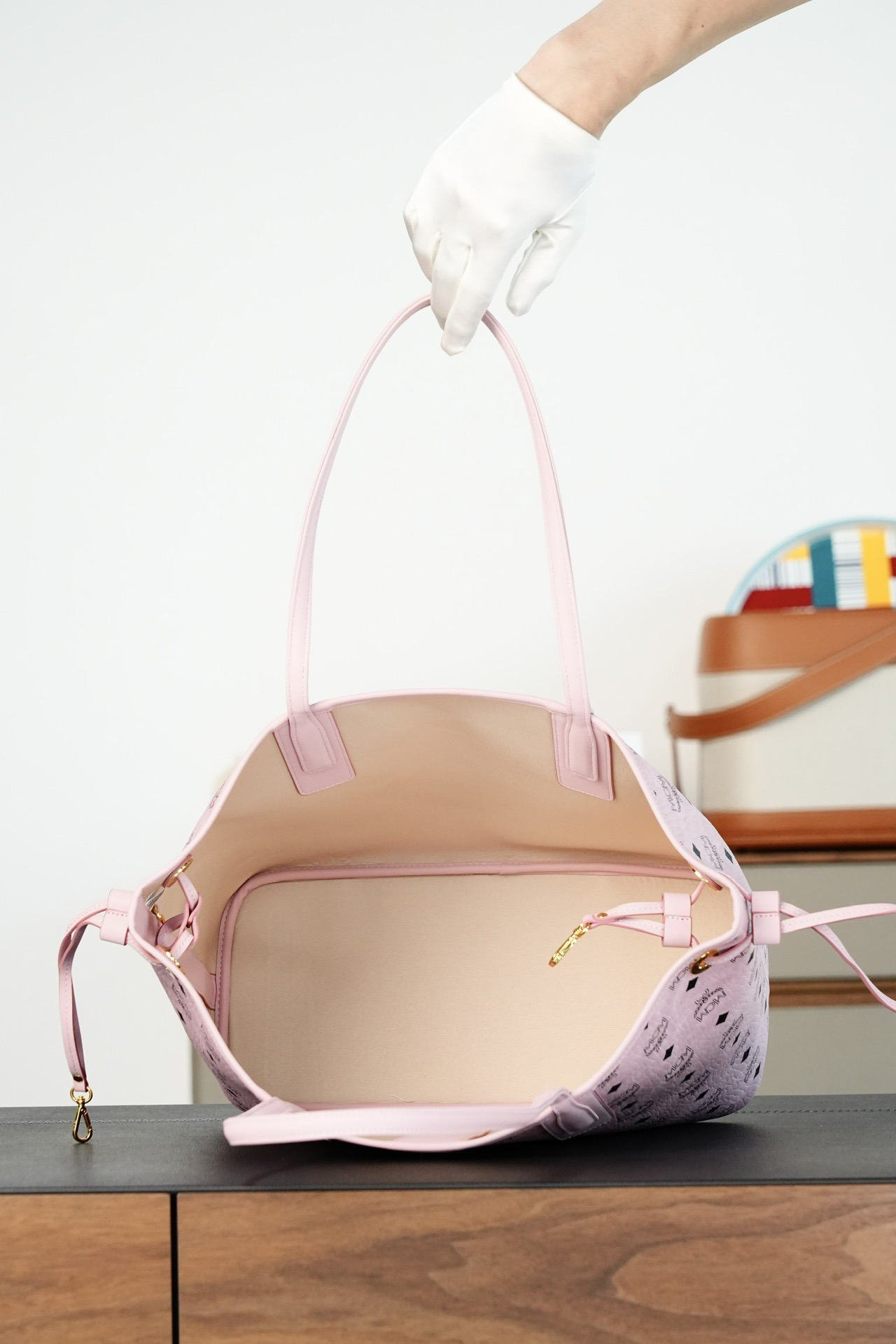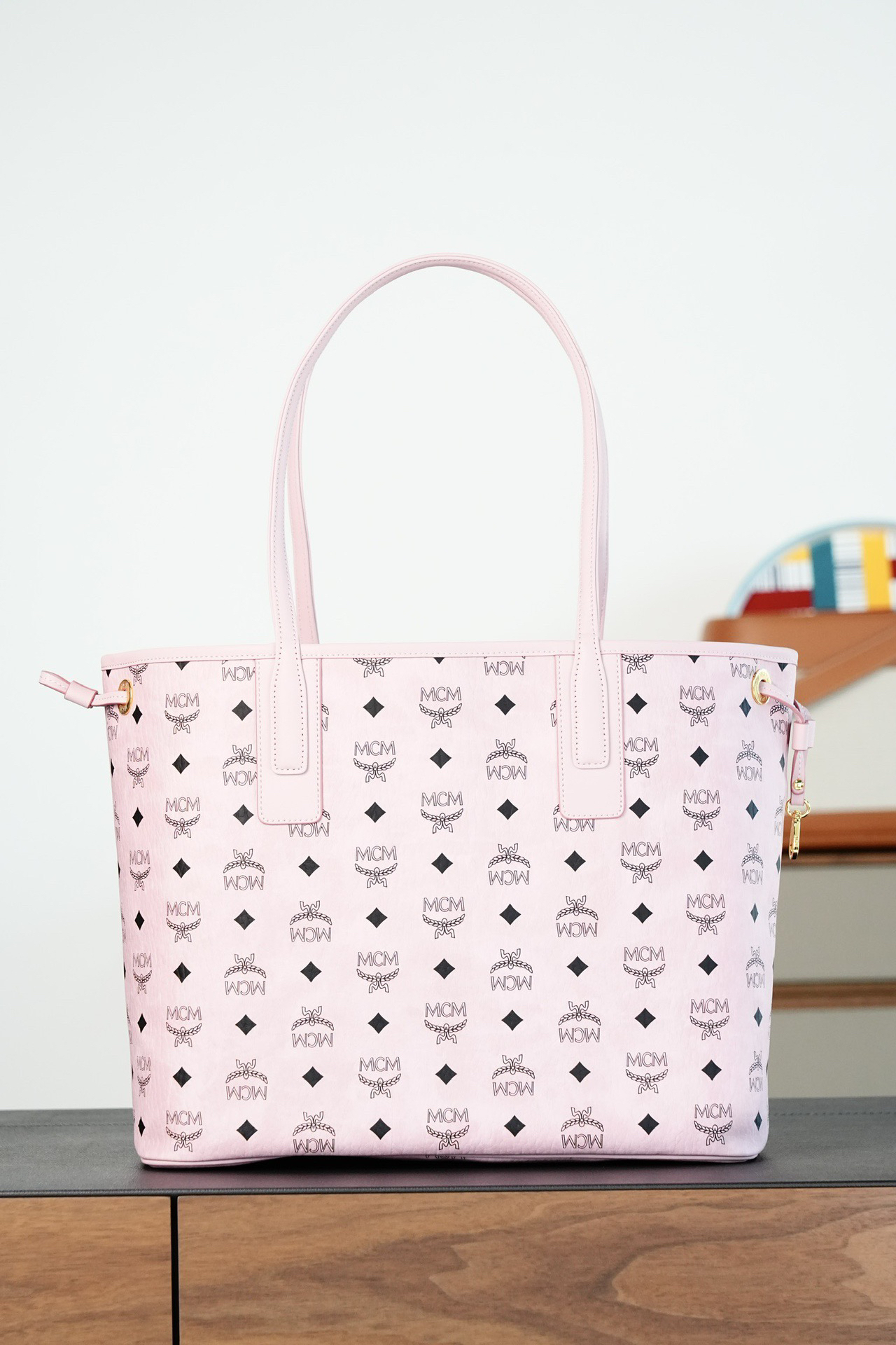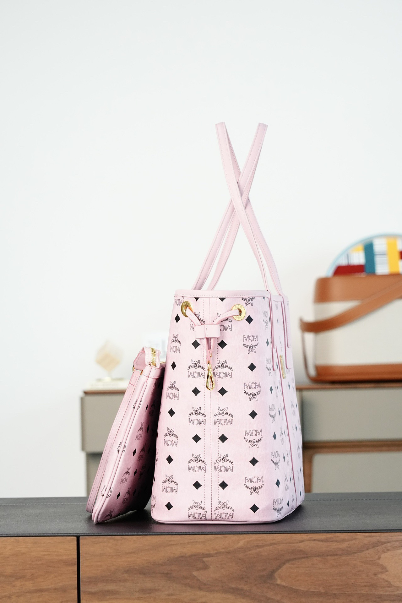 秋冬特惠💰900 原单MCM 原厂皮 轻雾粉中号 双面购物袋子母包MWPFSLR03PZ 轻雾粉