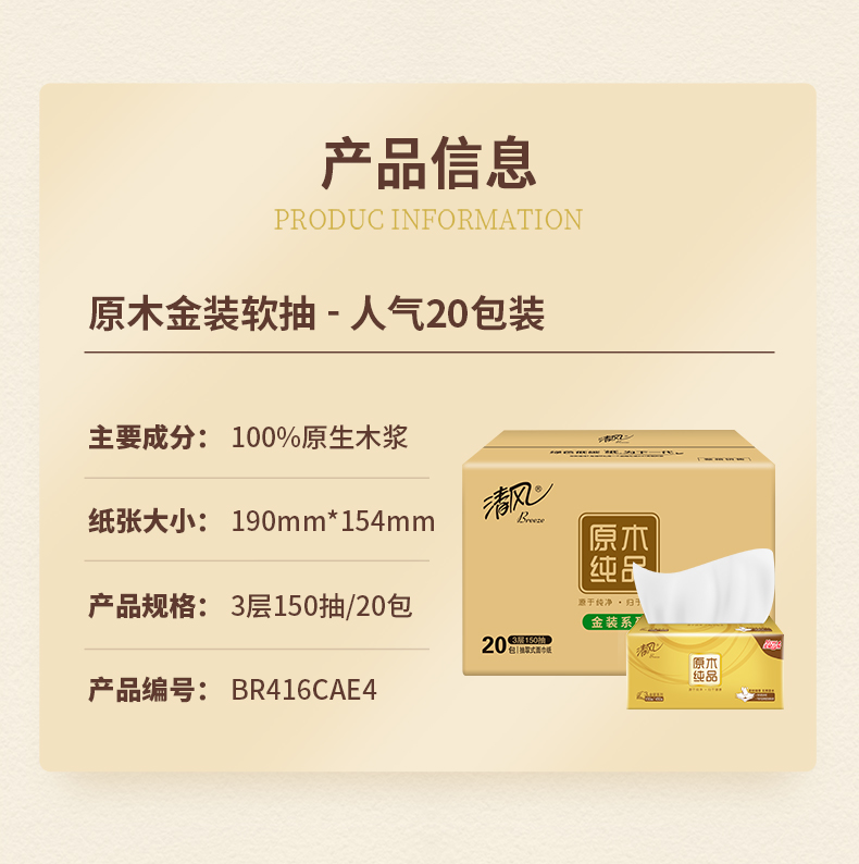 【员工福利】清风金装3层150抽20包中规格M码抽纸
