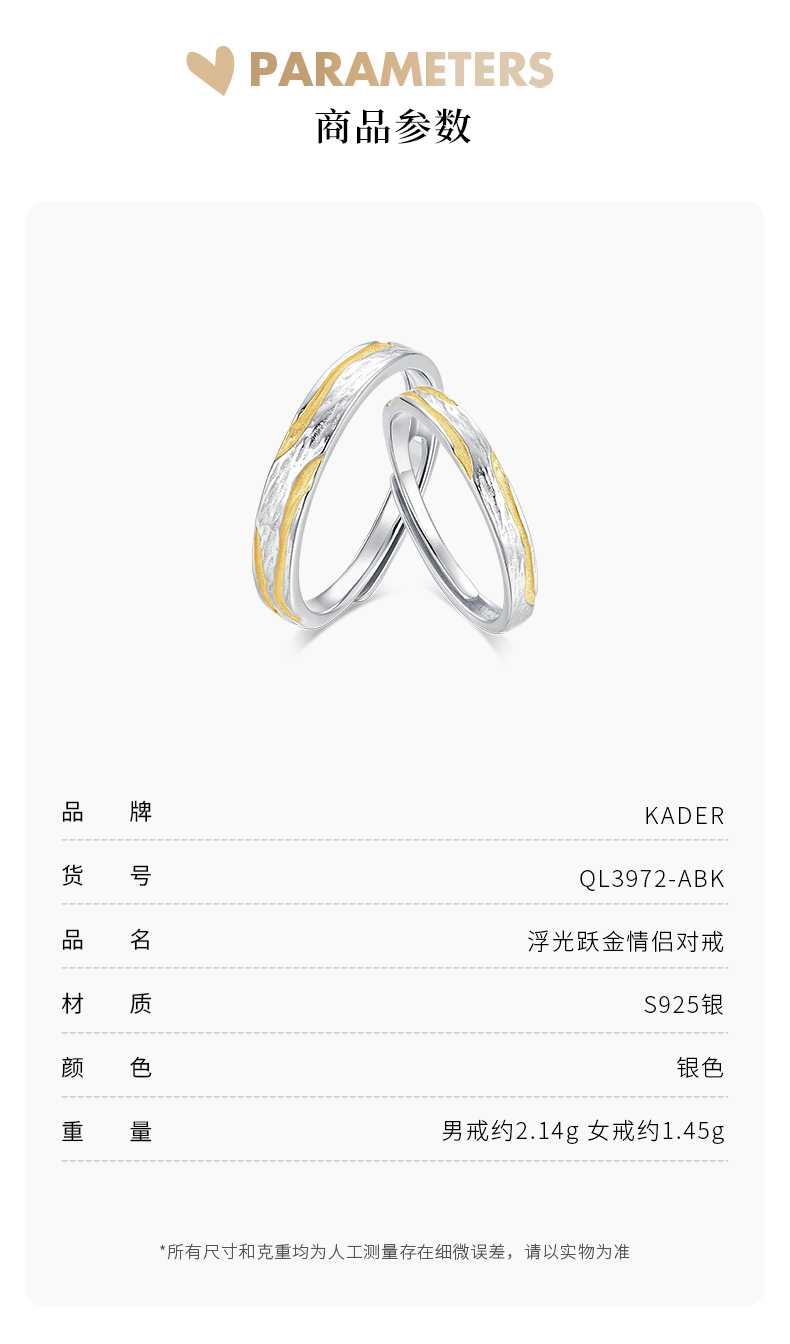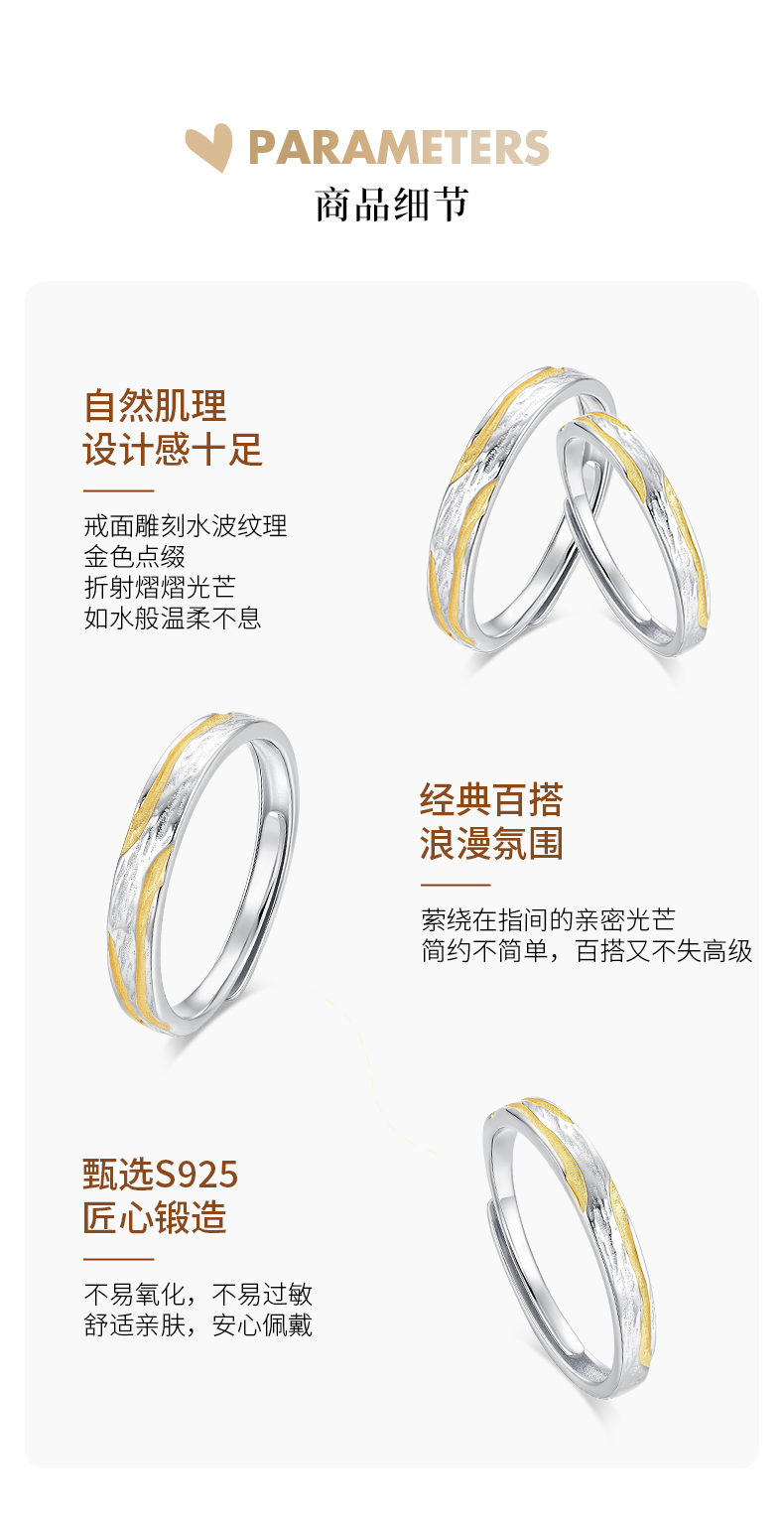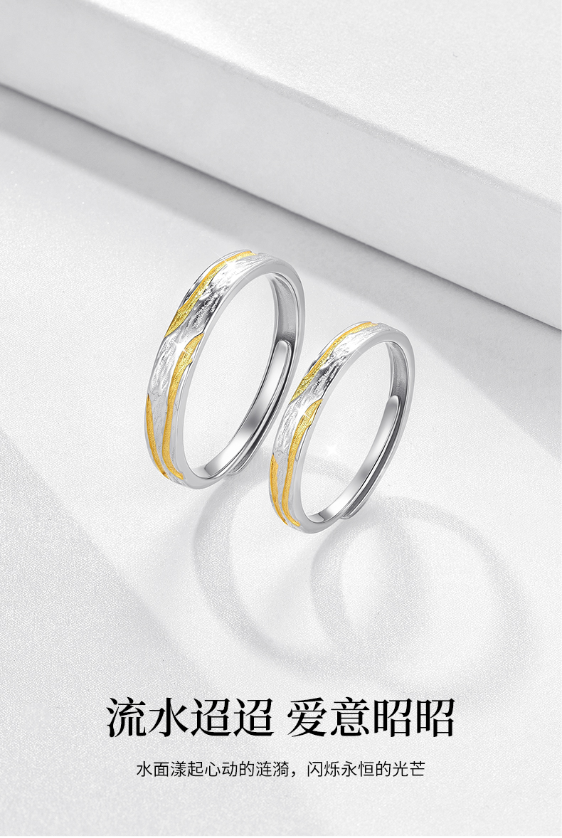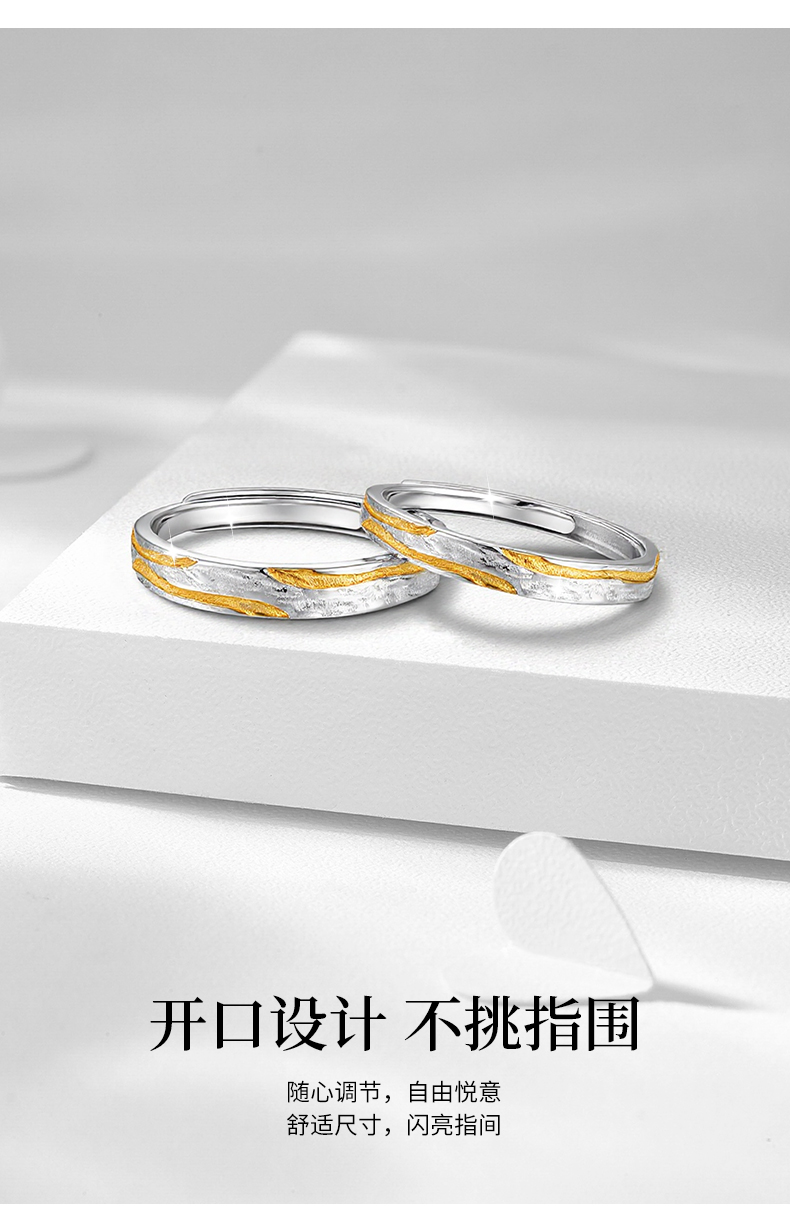 卡蒂罗KADER 浮光跃金情侣对戒 925银不规则丁达尔肌理感莫比乌斯素圈对戒一对 小众设计开口时尚高级感