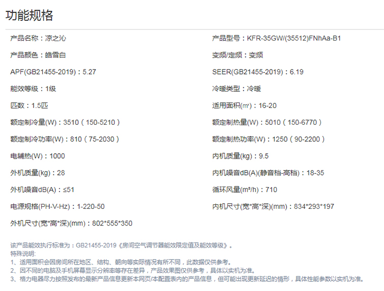格力·凉之沁新国标一级节能正1.5匹挂式空调 KFR-35GW/(35512)FNhAa-B1