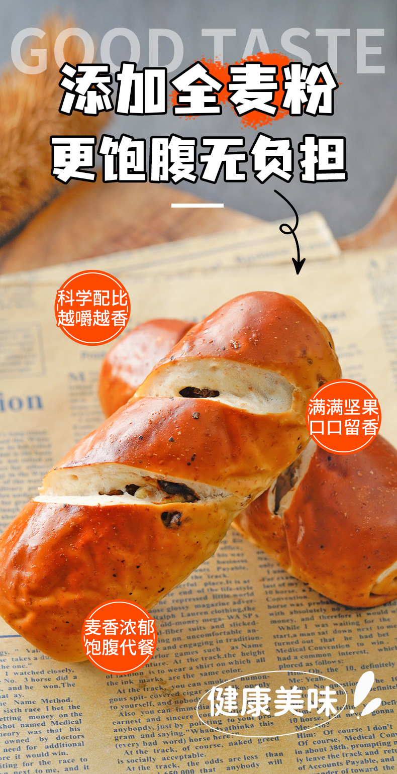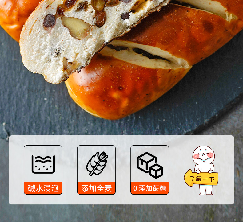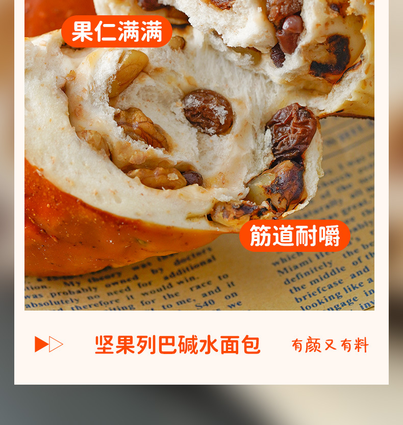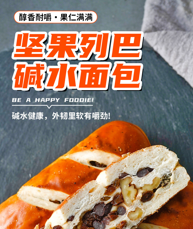 【不单独添加蔗糖!坚果列巴碱水面包】碱水浸泡烘烤,把健康“碱回来”满满核桃仁,层次饱满,早餐代餐下午茶零食