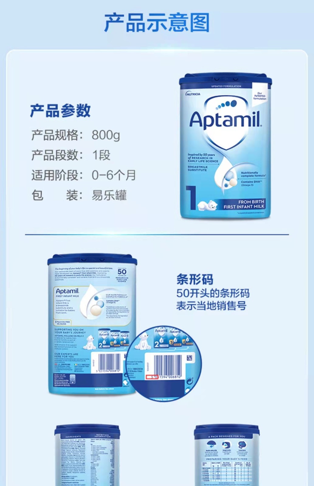【保税】英国爱他美aptamil奶粉1段(新老包装随机发货)