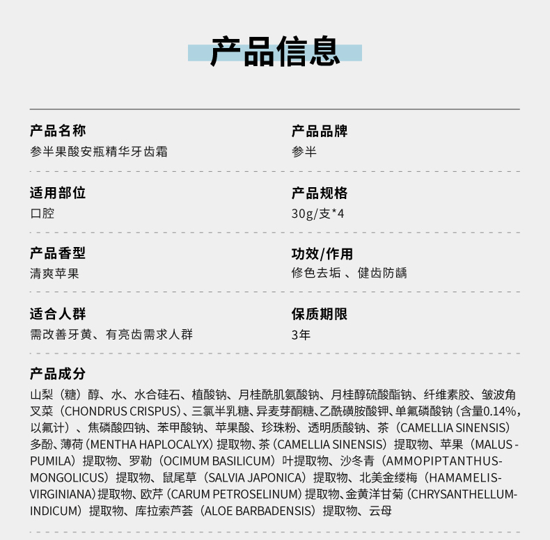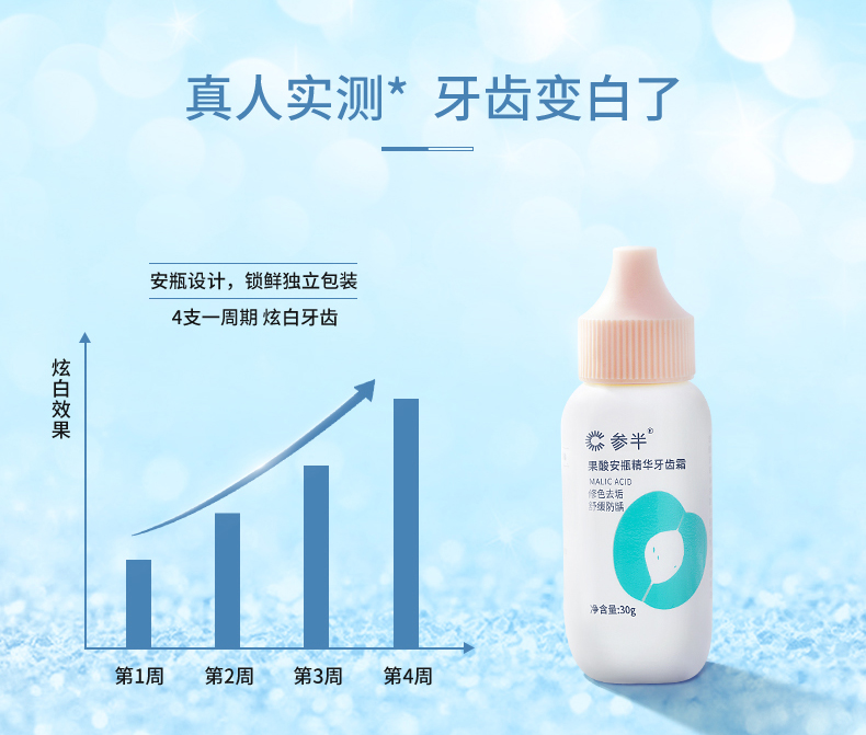 参半果酸清新安瓶牙齿霜牙膏修色安瓶牙膏30g*4