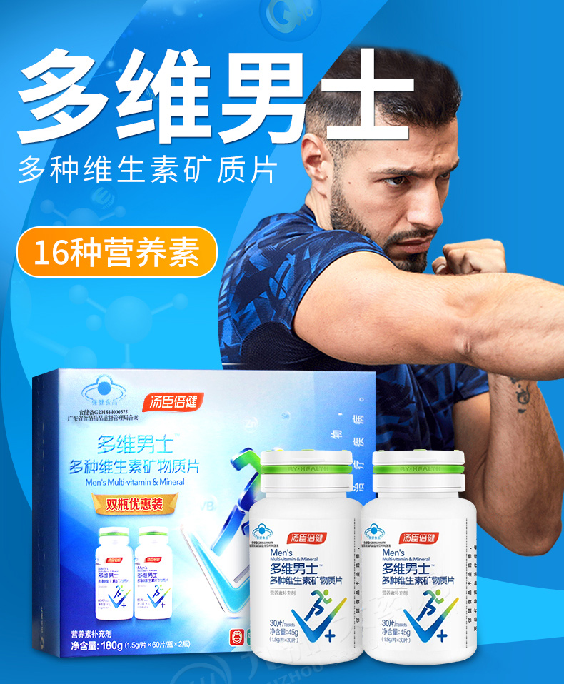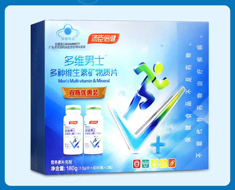 【官方正品】汤臣倍健维A男士多种维生素矿物质e片男士60粒*2优惠装