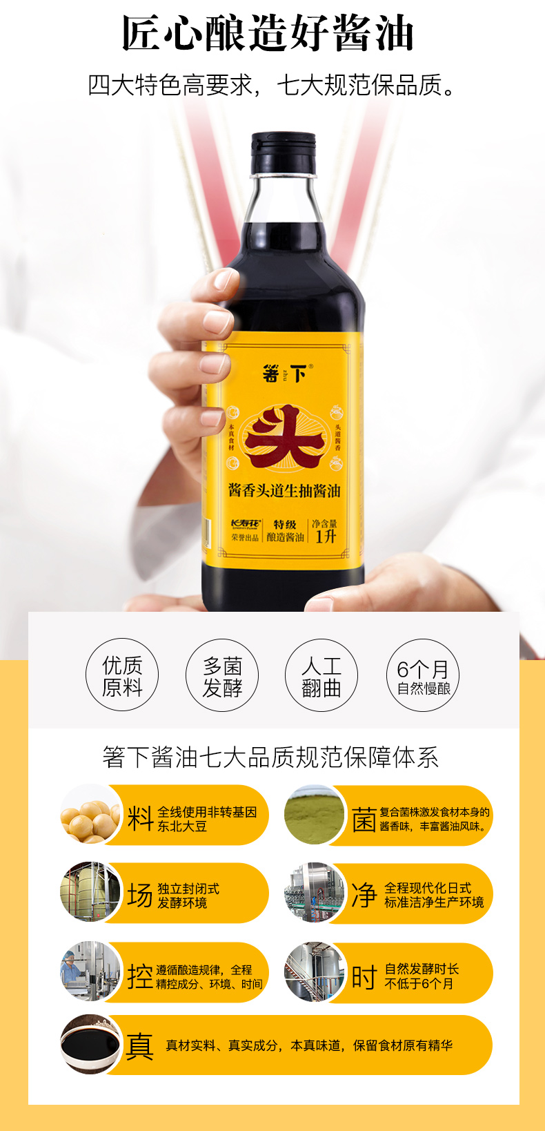 【特价品】长寿花箸下酱油 特级头道生抽酿造酱油1L 厨房炒菜调味凉拌饺子蘸料