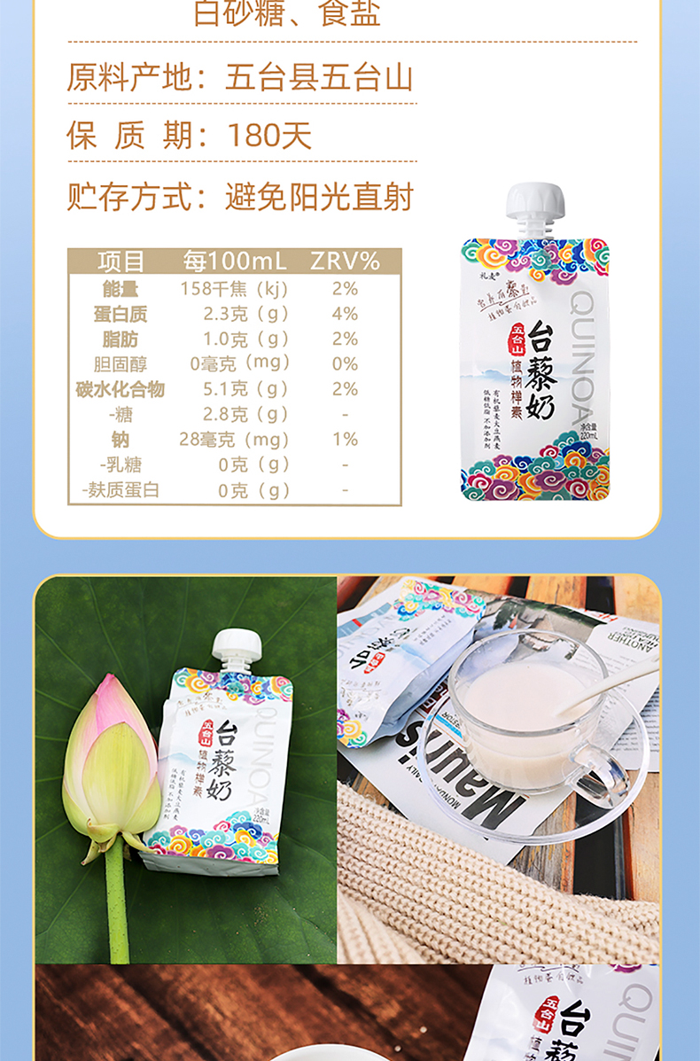 五台山台藜奶燕麦奶学生代餐素食植物蛋白饮品220ml*10袋